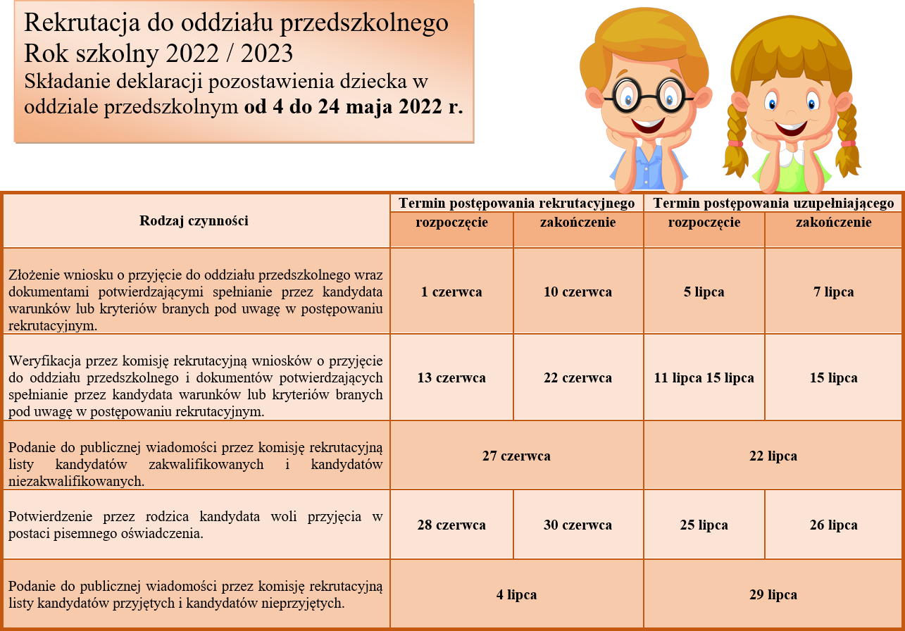 Terminy przeprowadzania postępowania rekrutacyjnego oraz postępowania uzupełniającego do oddziału przedszkolnego na rok szkolny 2022/2023