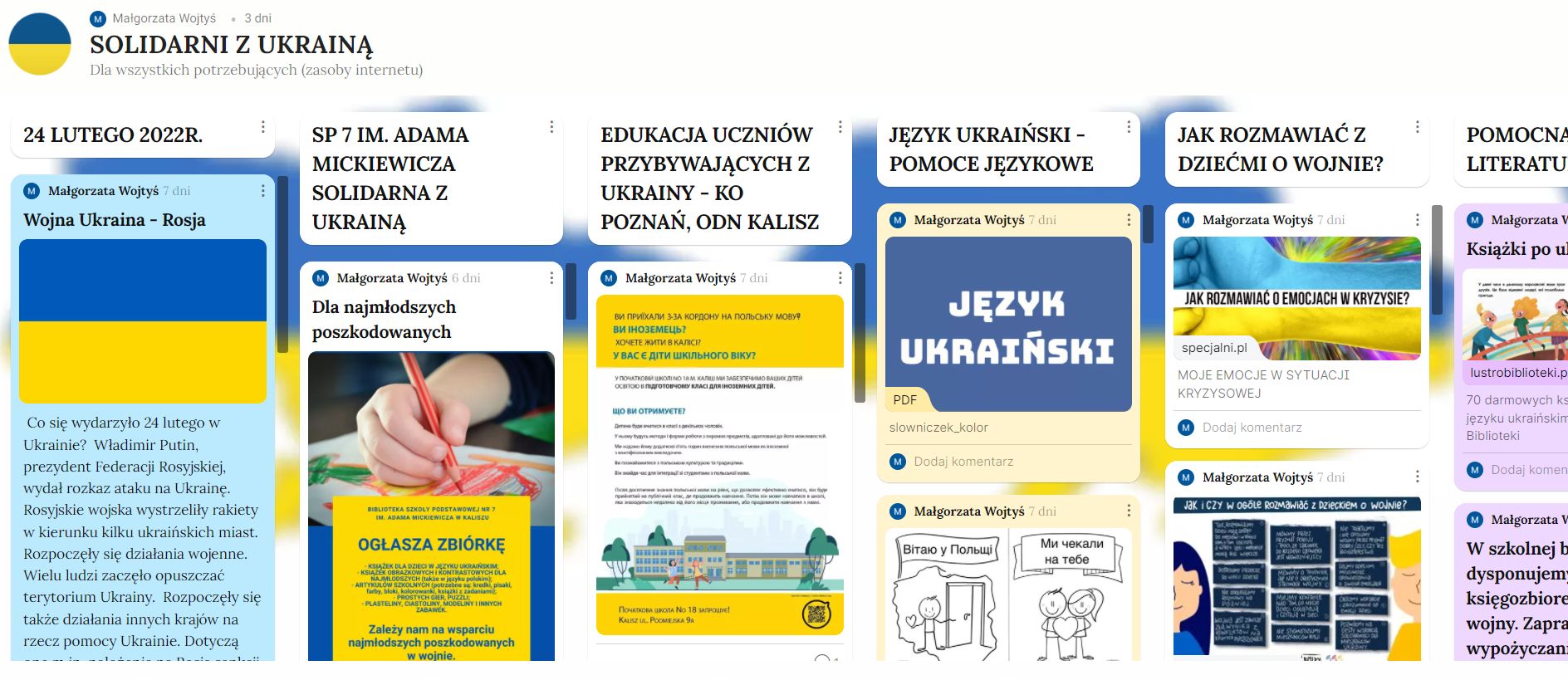 Ponieżej prezentujemy padlet, w którym można znaleźć materiały potrzebne w bieżącej pracy z uczniami z Ukrainy