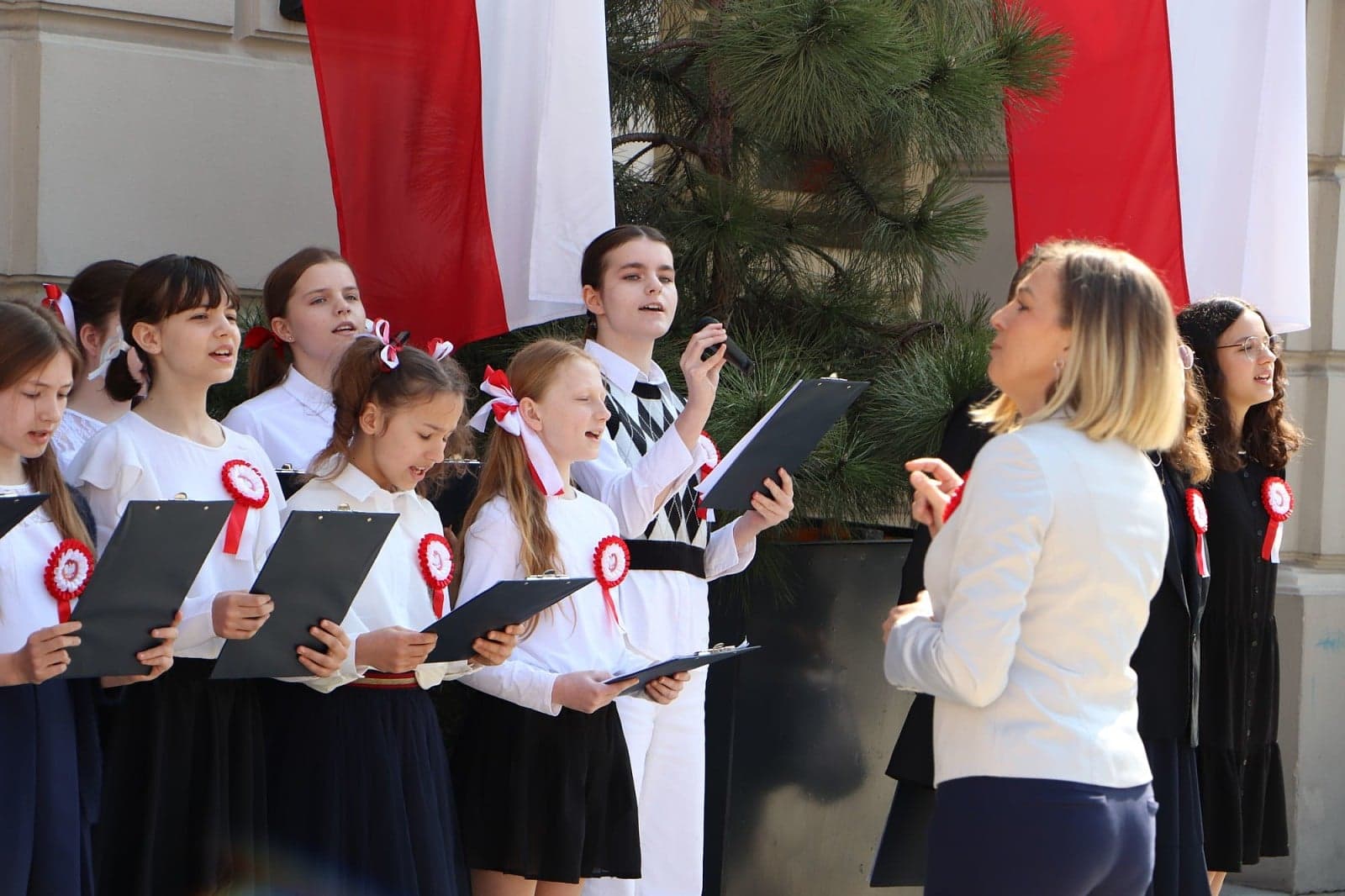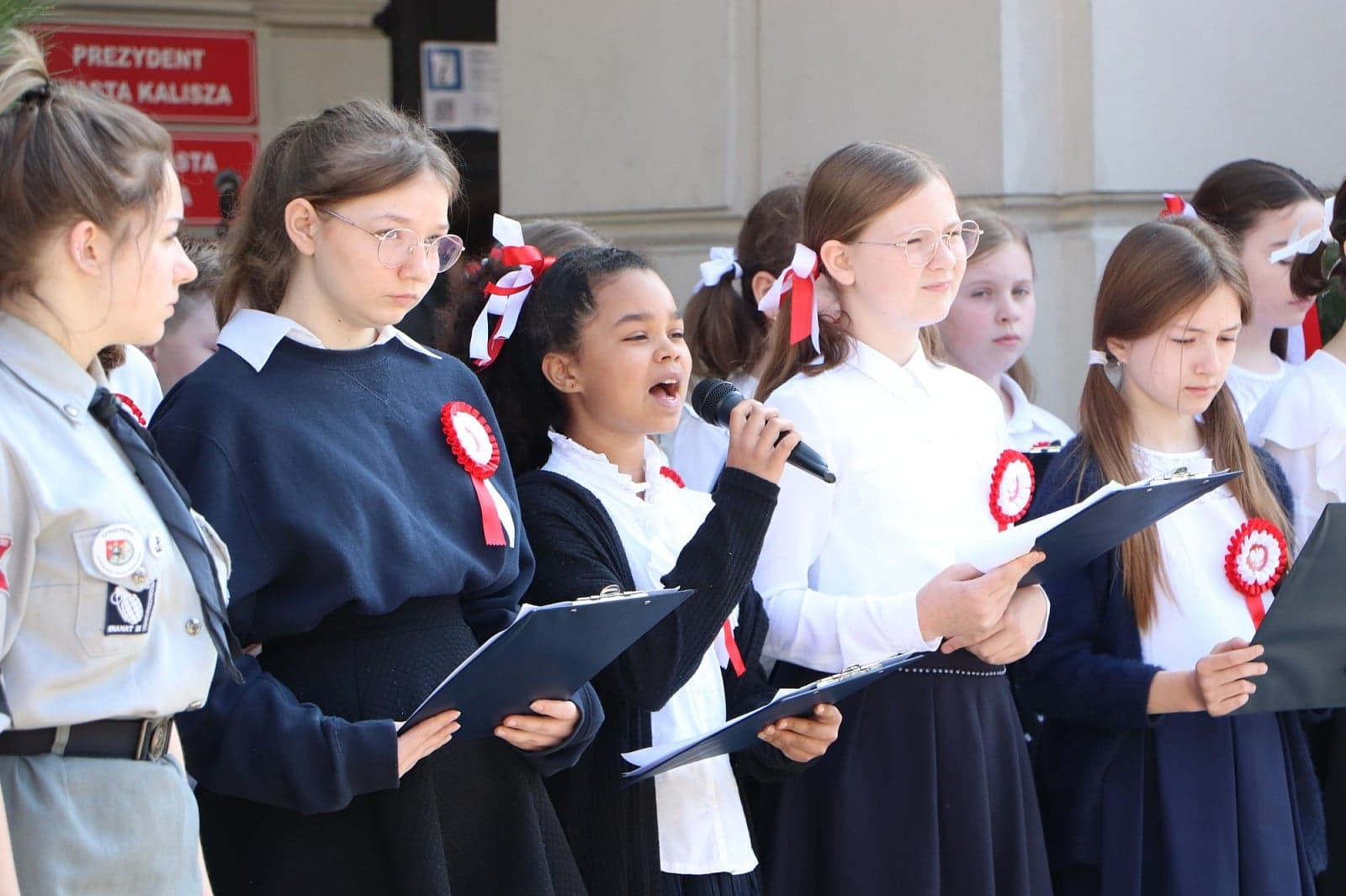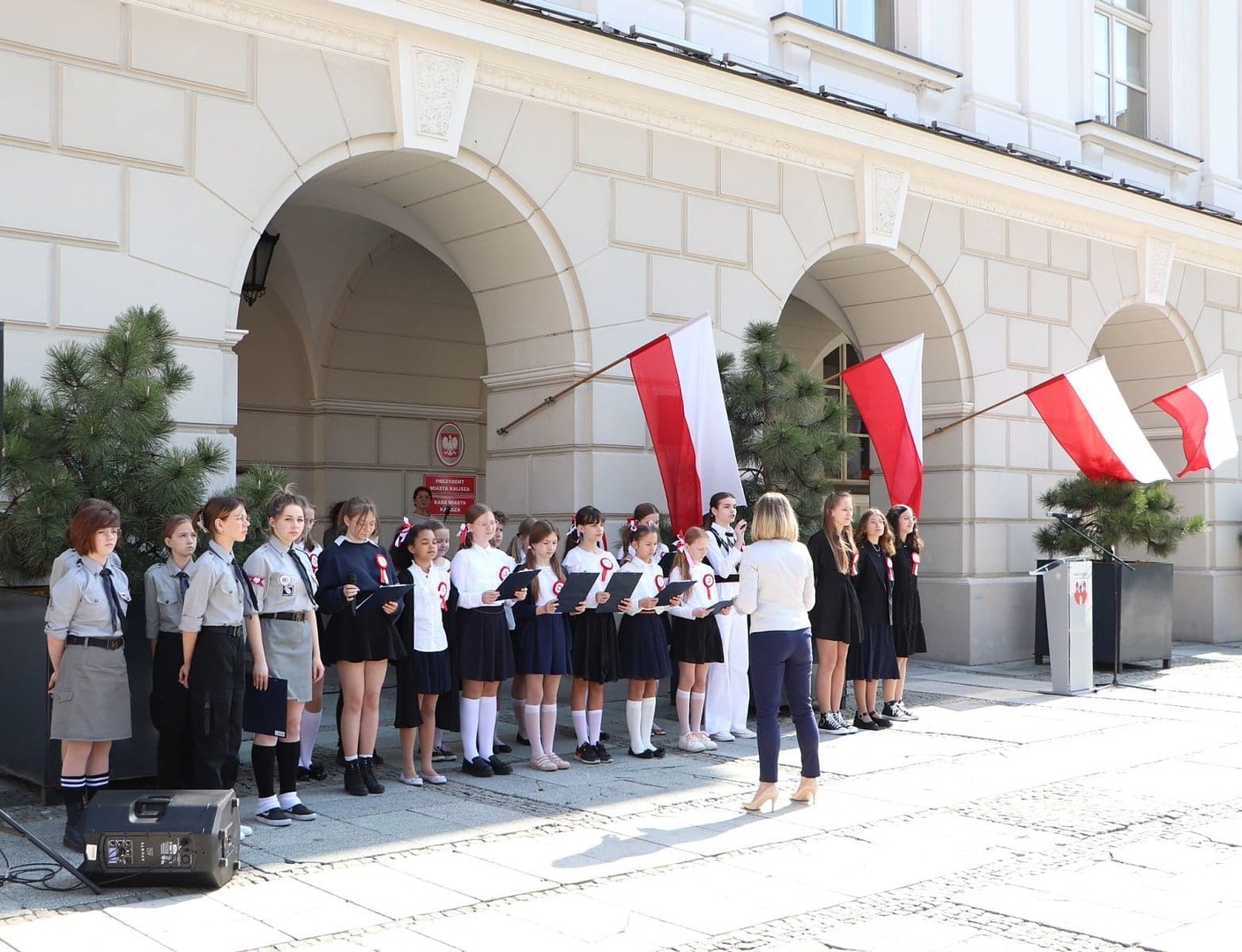 Na Głównym Rynku w Kaliszu w dniu 3 maja o godz 10.00 uczniowe naszej szkoły przedstawili program artystyczny "Biel i Czerwień" mieszkańcom Kalisza: