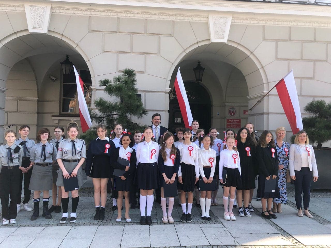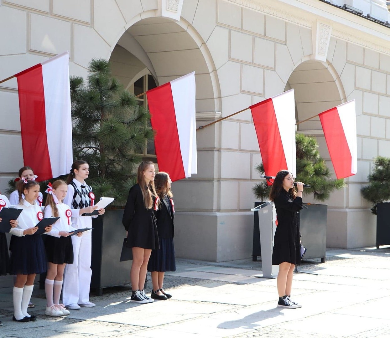 Uczniowie z kl 7b ,7d , 2b oraz chór szkolny zaprezentowali montaż słowno - muzyczny "Biel i Czerwień" przygotowany przez p. Edytę Srangret - Nowak , p. Dorotę Wójcicką i p. Arletę Wawrzyniak.