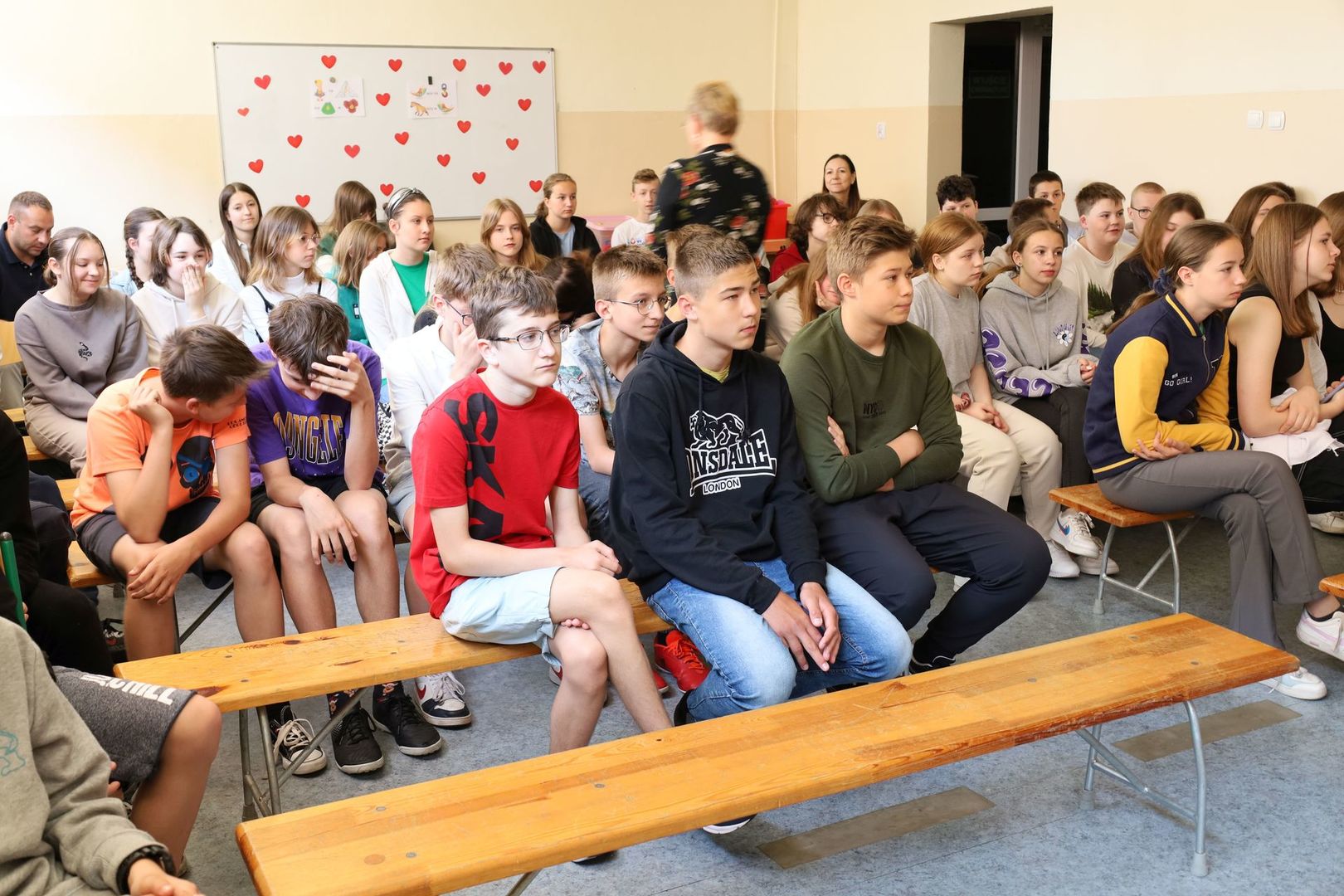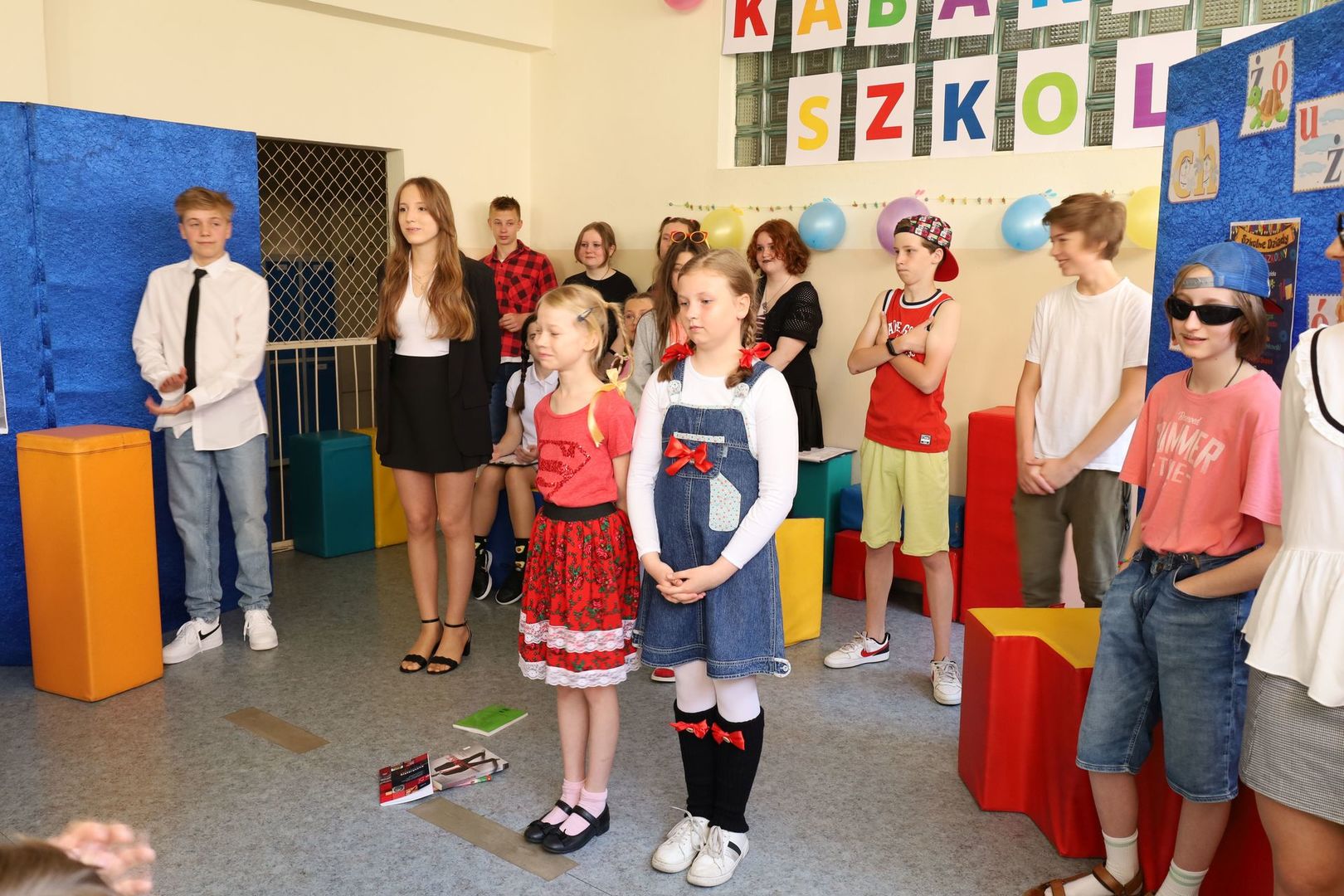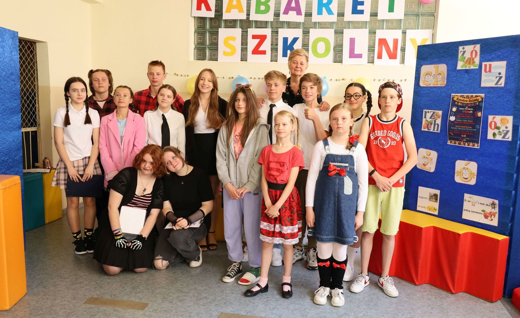 „Pały wszędzie, lufy wszędzie – co to będzie, co to będzie” – tak rozpoczął się szkolny kabaret w wykonaniu klas 7d, 7b i 4c Uczniowie pod kierunkiem polonistki Doroty Wójcickiej przygotowali szkolną parodię Dziadów cz. II Adama Mickiewicza.