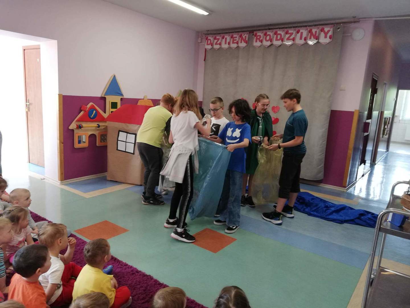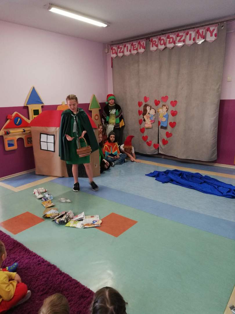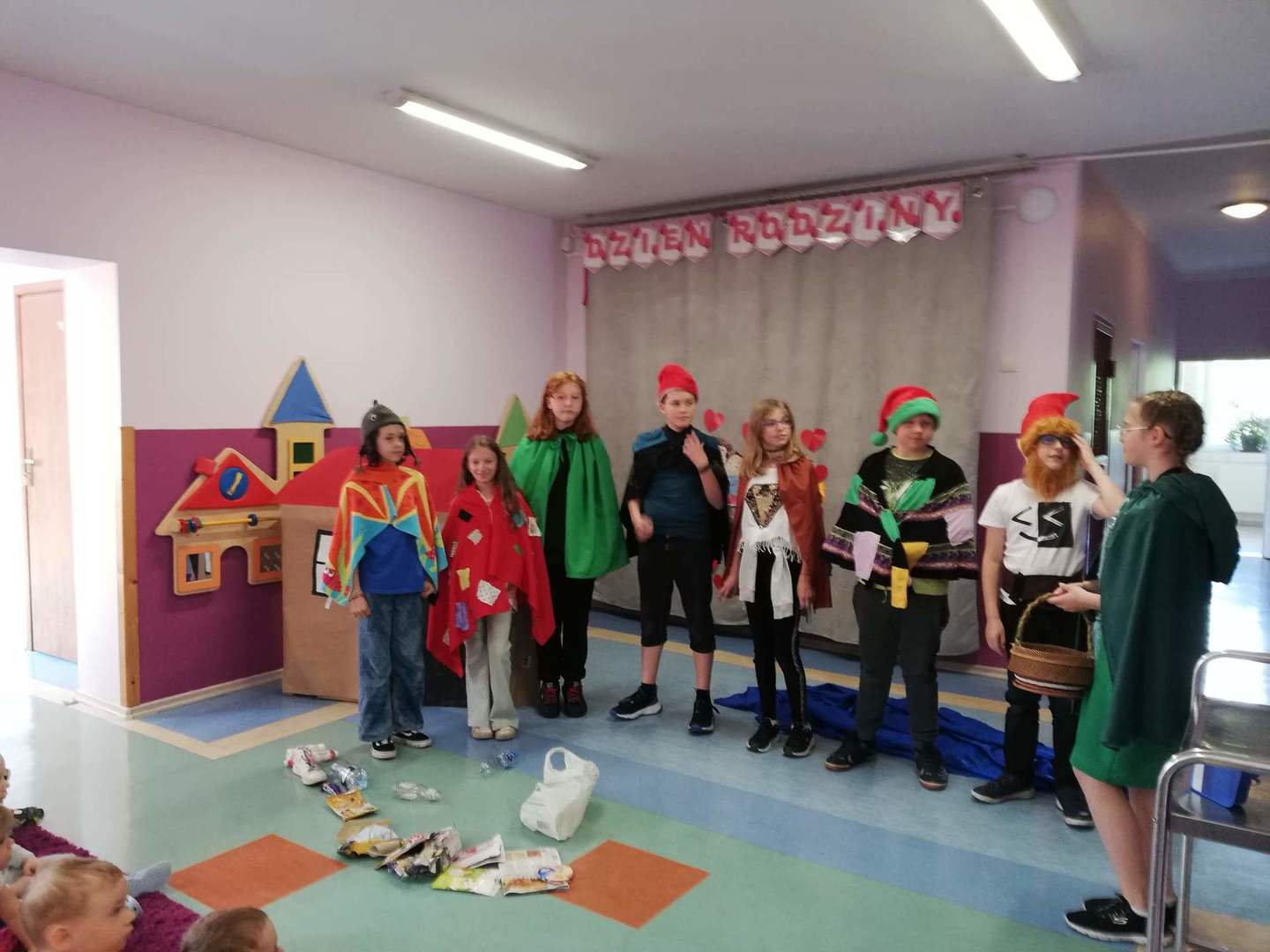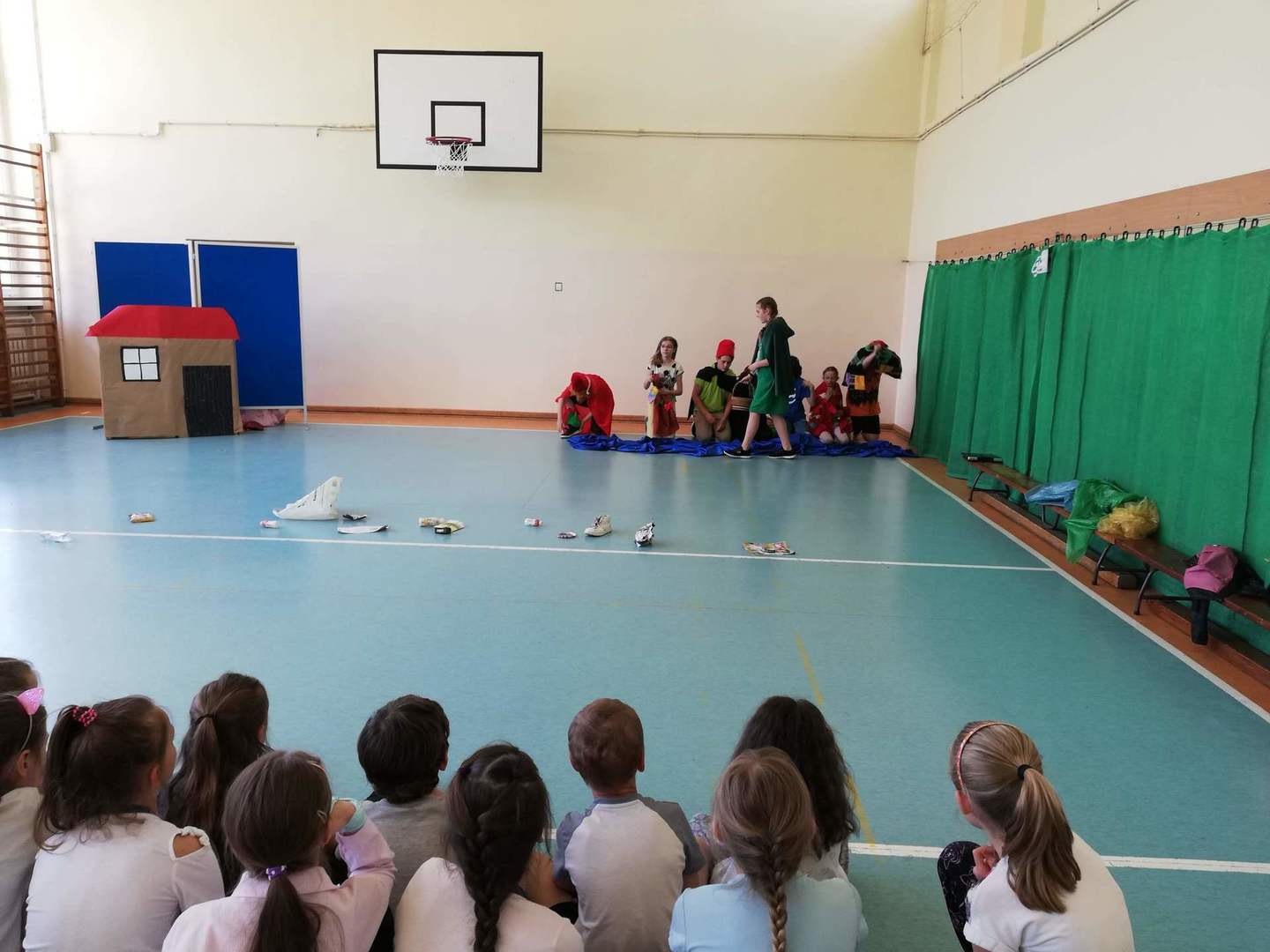 Uczniowie klasy 5a zaprezentowali występ „Zielony Kapturek i siedmiu krasnoludków” w przedszkolu „Pluszowy Miś”. A do szkoły zostały zaproszone dzieci z przedszkola „Szczęśliwa Trzynastka”. Oba występy bardzo się podobały najmłodszym widzom.