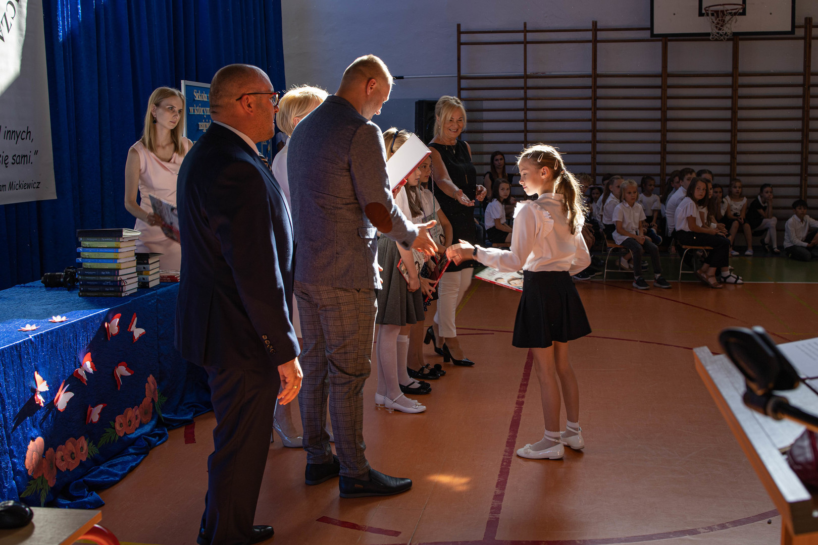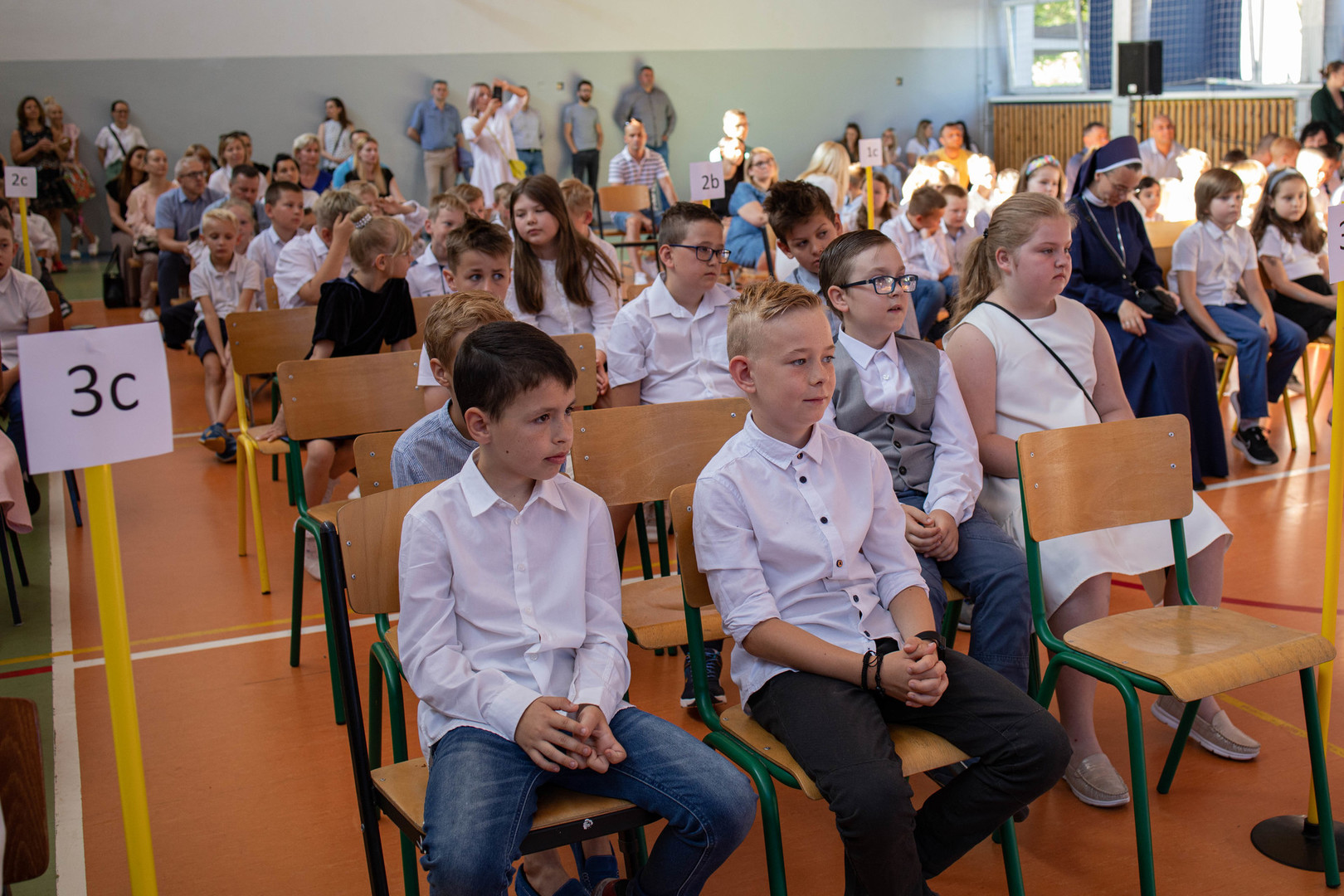 Na początku nagrody i świadectwa odebrali uczniowie klas 1-3. Swój czas miały też dzieci z oddziału przedszkolnego, które od września rozpoczynają nowy etap edukacyjny – I klasę. z kolegami na chwilę pożegnali się także uczniowie klas 4-7.