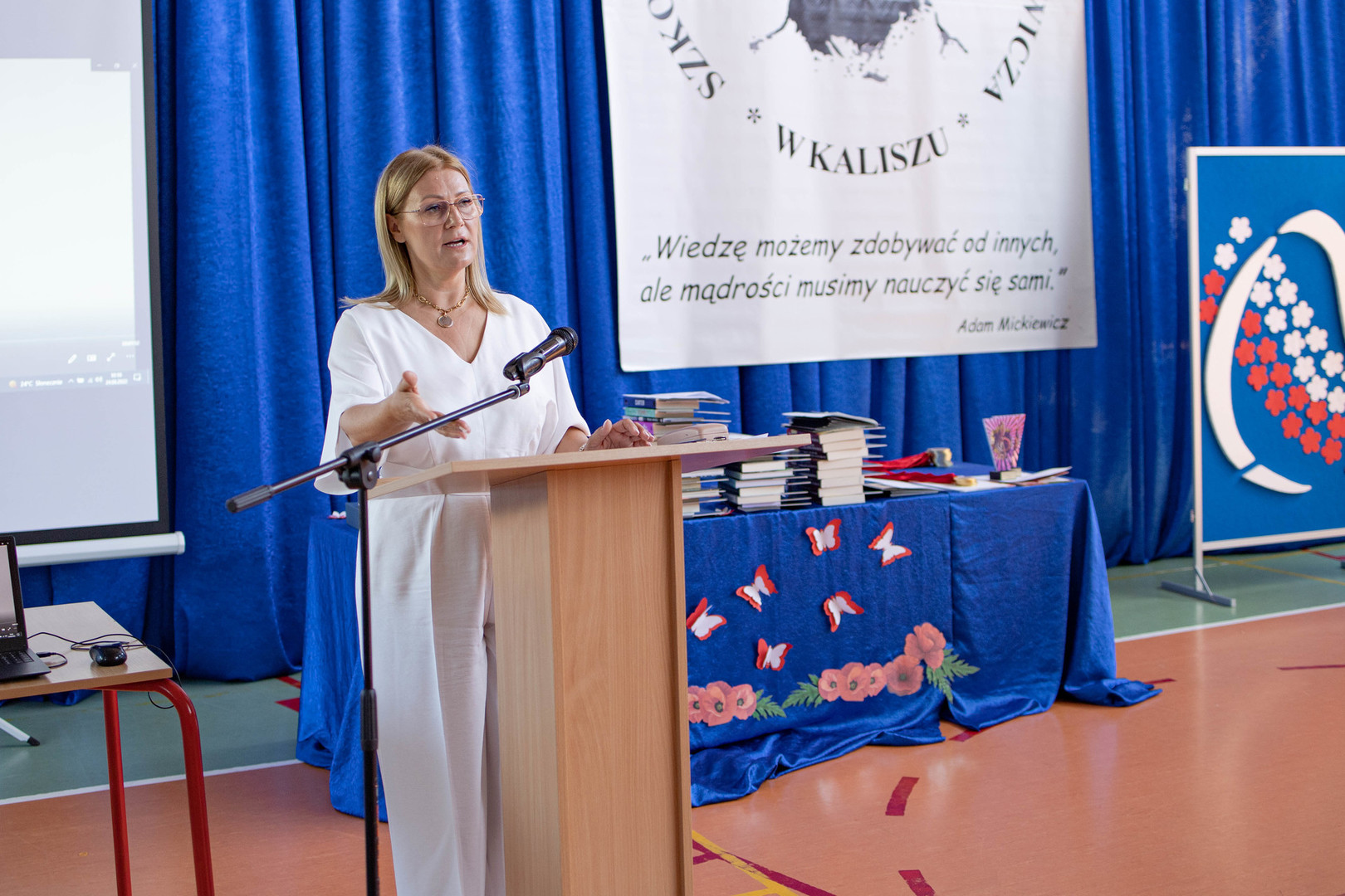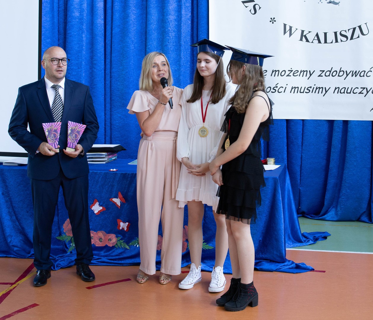 Uroczystość dla absolwentów rozpoczęła się od wystąpienia dyrektora szkoły – Małgorzaty Waszczyńskiej. Głos zabrał także obecny na zakończeniu Prezydent Kalisza – Krystian Kinastowski, a także Arkadiusz Grala, przewodniczący Rady Rodziców.