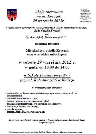 Akcja zdrowotna finansowana jest z Budżetu Miasta Kalisza – miasta na prawach powiatu