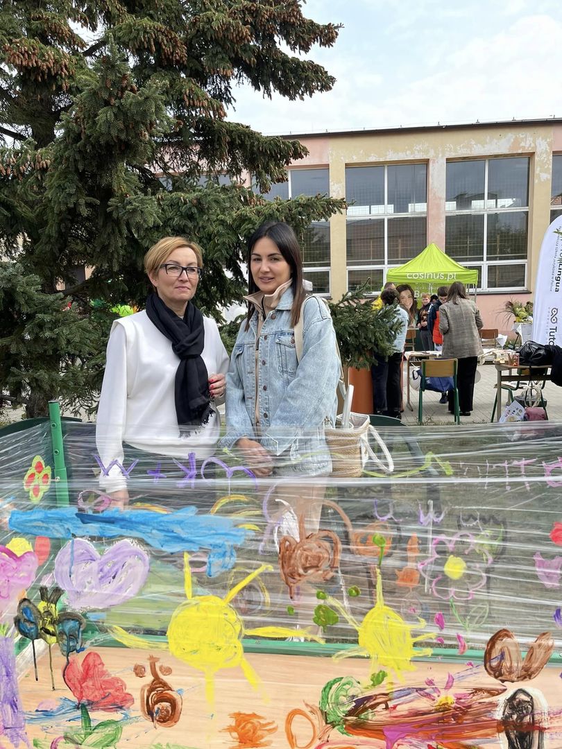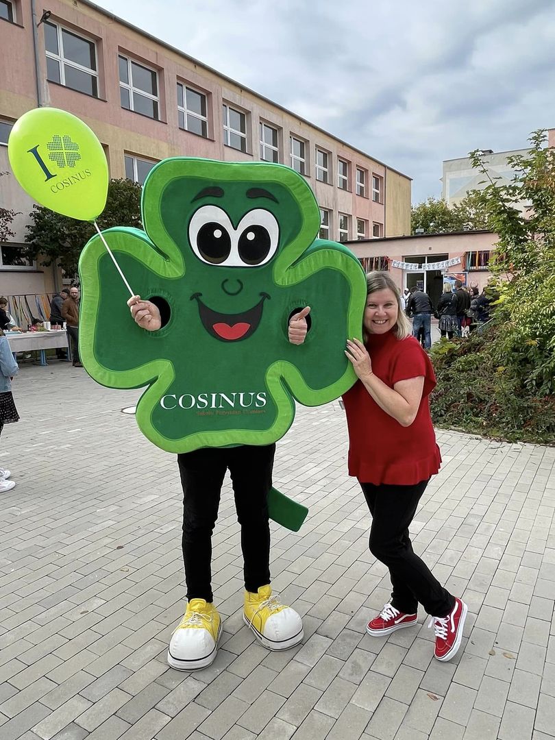 Piknik odwiedziła także duża maskotka szczęśliwej Koniczyny "Cosinus", która m.in. pozowała do zdjęć z jej uczestnikami i spacerowała alejkami po szkolnym dzidzińcu.