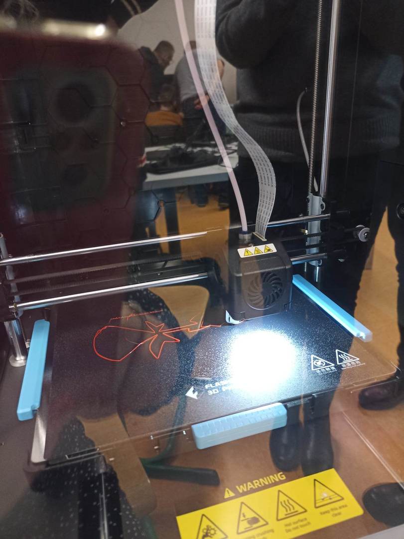 Uczestnicy zostali zapoznani, m.in. z podstawowymi pojęciami: drukarka 3D, rodzaje drukarek i ich budowa, obsługa, proces przygotowania do drukowania, stosowane materiały (filamenty).