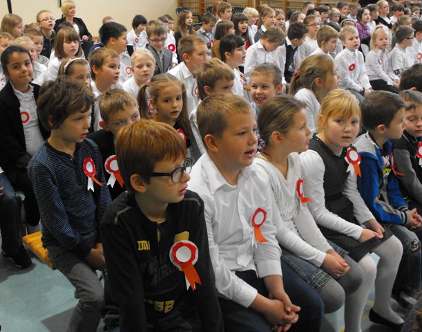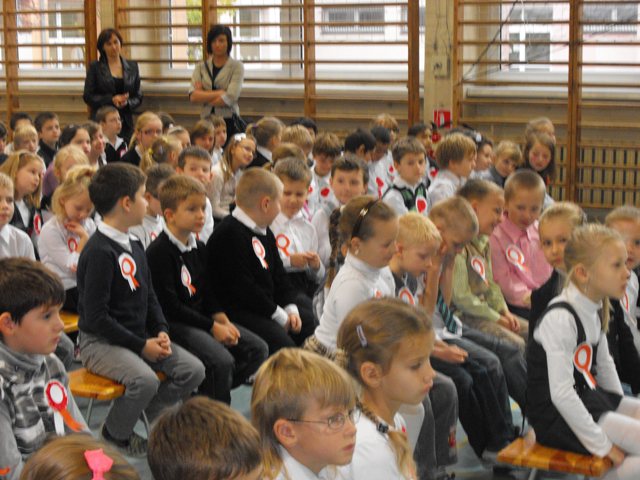 Z okazji Święta Niepodległości w klasach I-III zostały przeprowadzone „lekcje patriotyzmu”. Uczniowie wykonali biało - czerwone kotyliony, które przypięli do ubrań. Podczas koncertu edukacyjnego „Pieśni i piosenki, których nie śpiewamy” (Utwory historyczne polskich kompozytorów) podkreślały radosny wymiar tego święta.