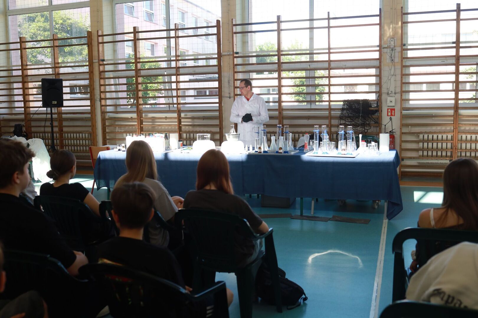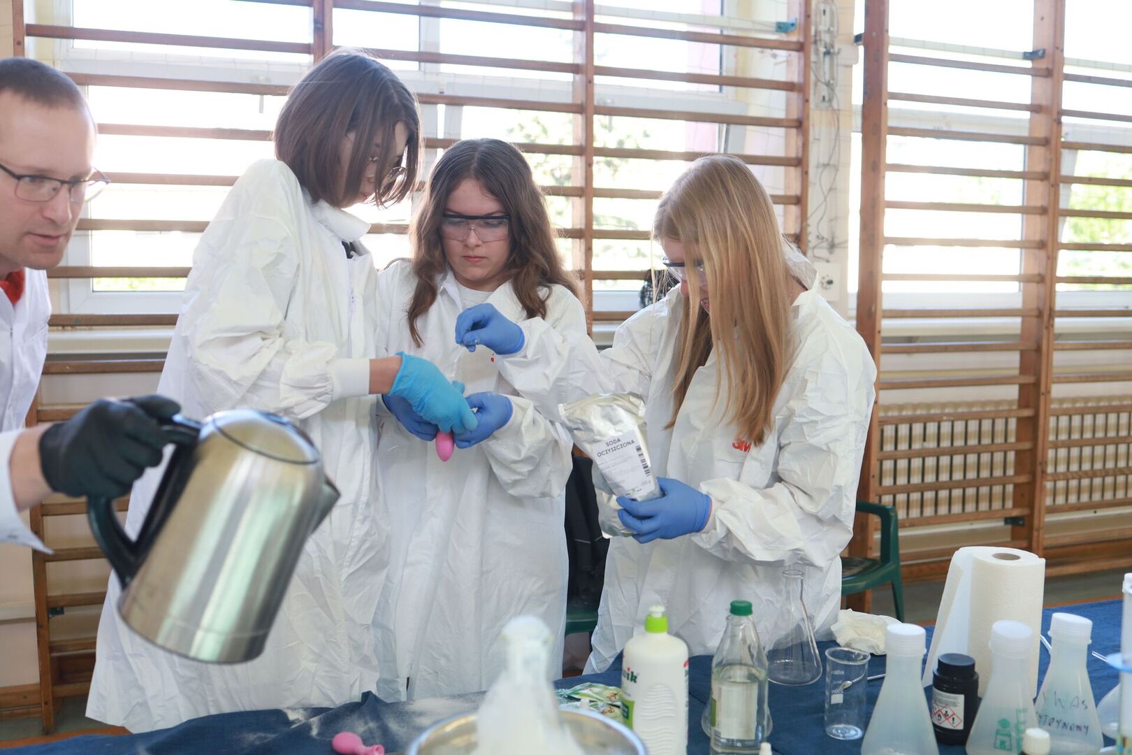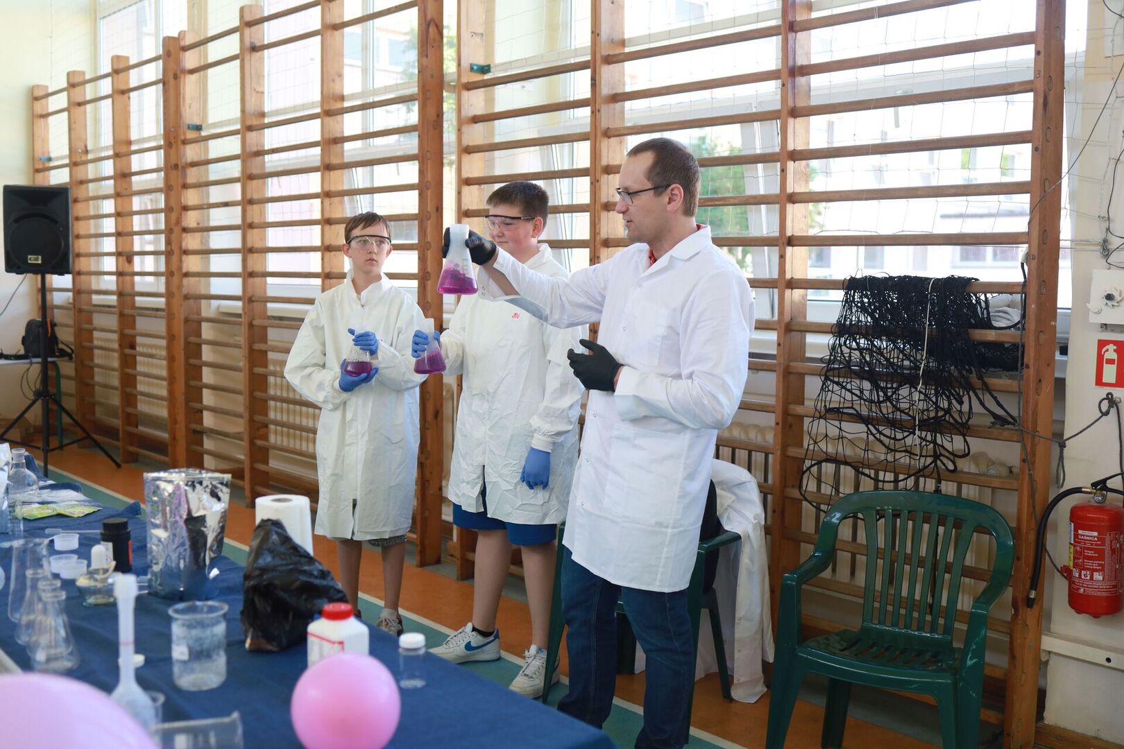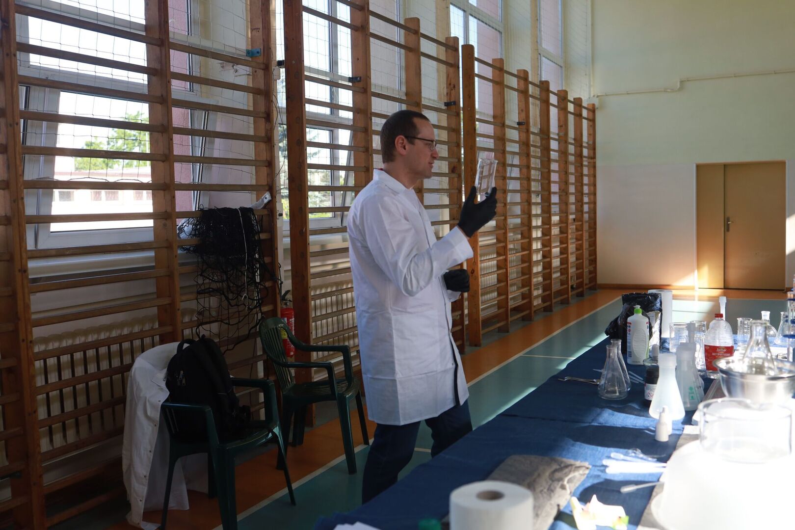 Zajęcia prowadził Piotr Kaczorowski, pasjonat, Pan od chemii, pracownik EC1 w Łodzi.