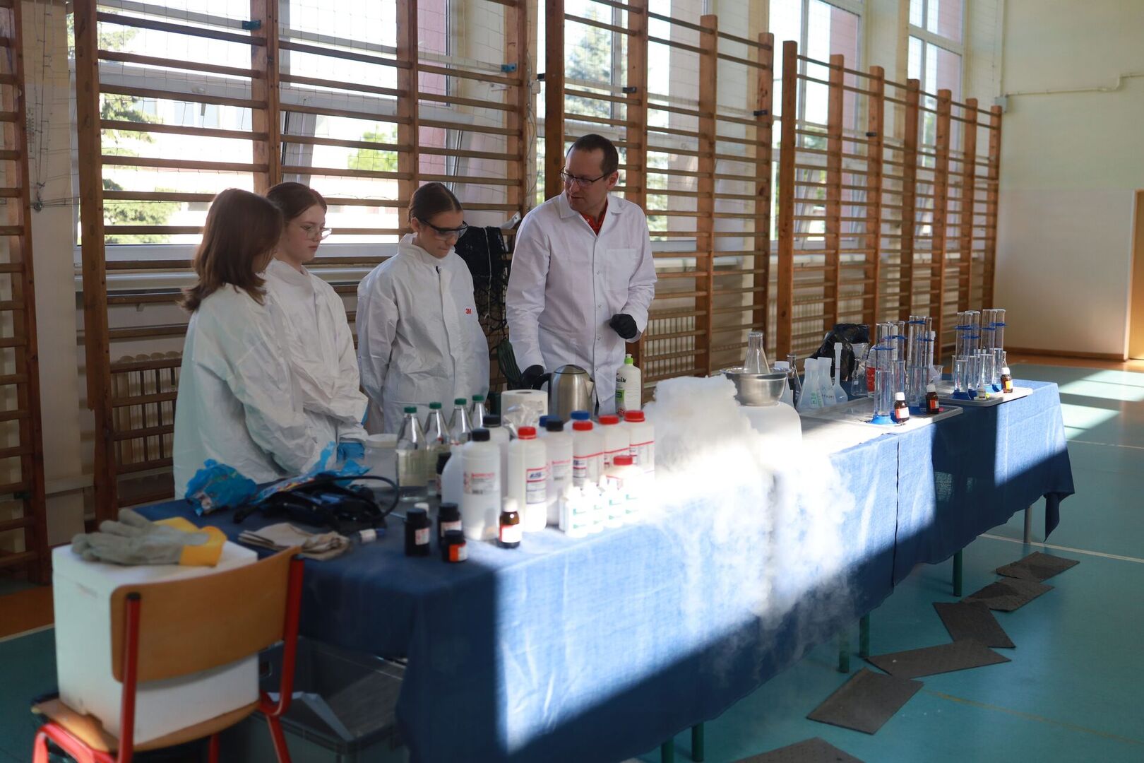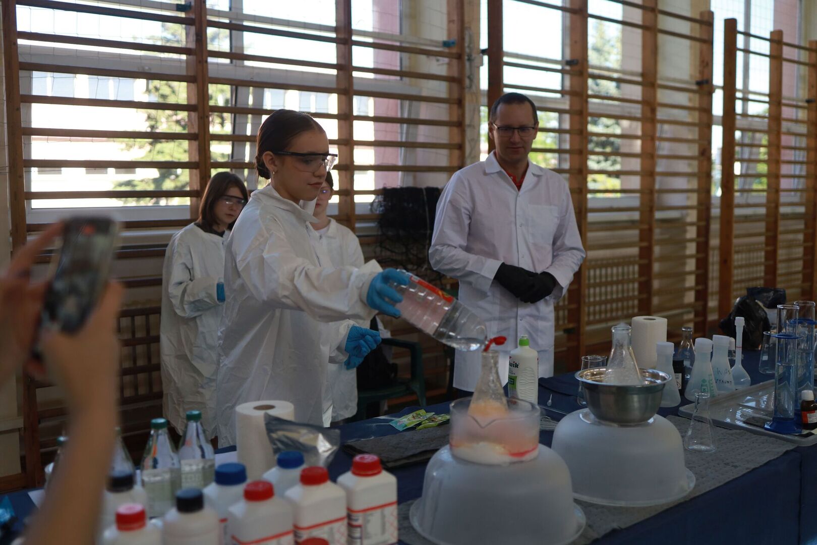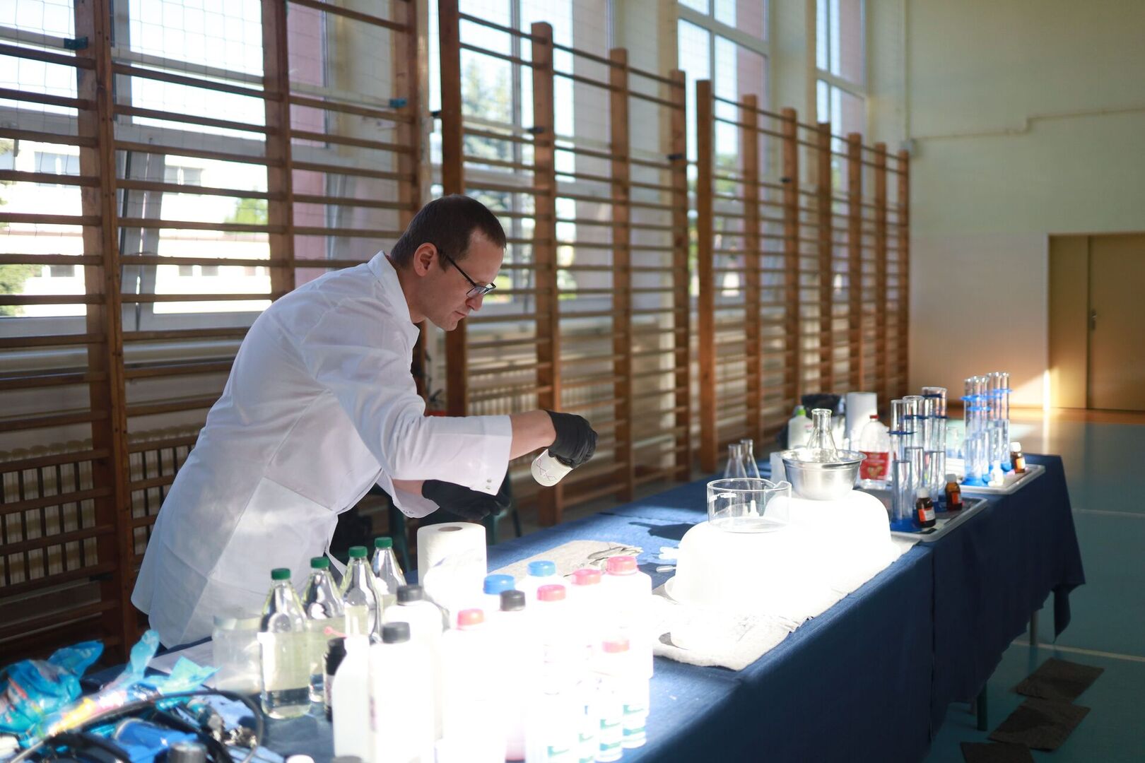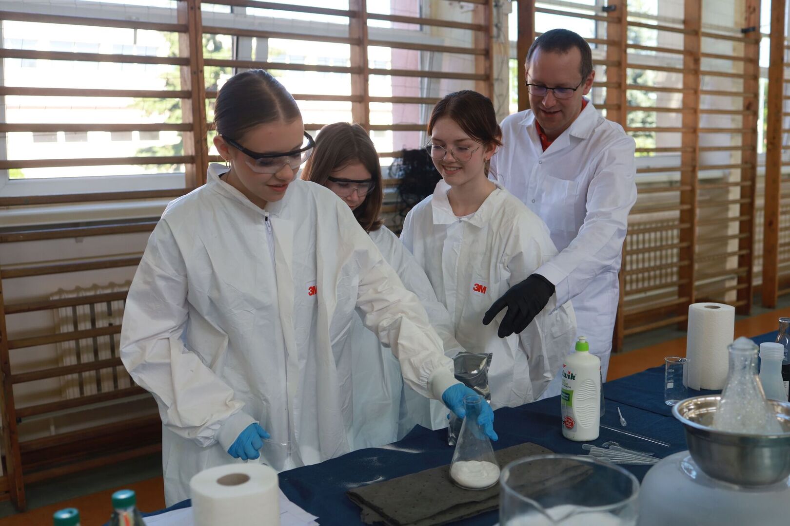 Zajęcia prowadził Piotr Kaczorowski, pasjonat, Pan od chemii, pracownik EC1 w Łodzi.