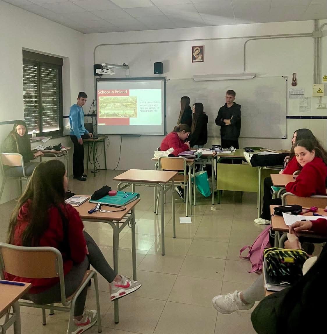 Wspólne lekcje z Hiszpanami w ramach wymiany Erasmus + to doskonała okazja do nauki, integracji i wymiany kulturowej. Zajęcia odbywały się w języku hiszpańskim lub w systemie mieszanym, czyli angielskim i hiszpańskim, co sprzyjało rozwijaniu kompetencji językowych oraz umiejętności pracy w zespole i pozwoliło na wymianę różnych poglądów, poznanie różnic między naszymi krajami. Braliśmy udział w takich zajęciach jak: matematyka, język hiszpański, język angielski, nauki science, zajęcia artystyczne, biologia, informatyka. Wymieniliśmy się z naszymi hiszpańskimi przyjaciółmi informacjami na temat naszych miast, szkół, tradycji, zwyczajów, świąt.