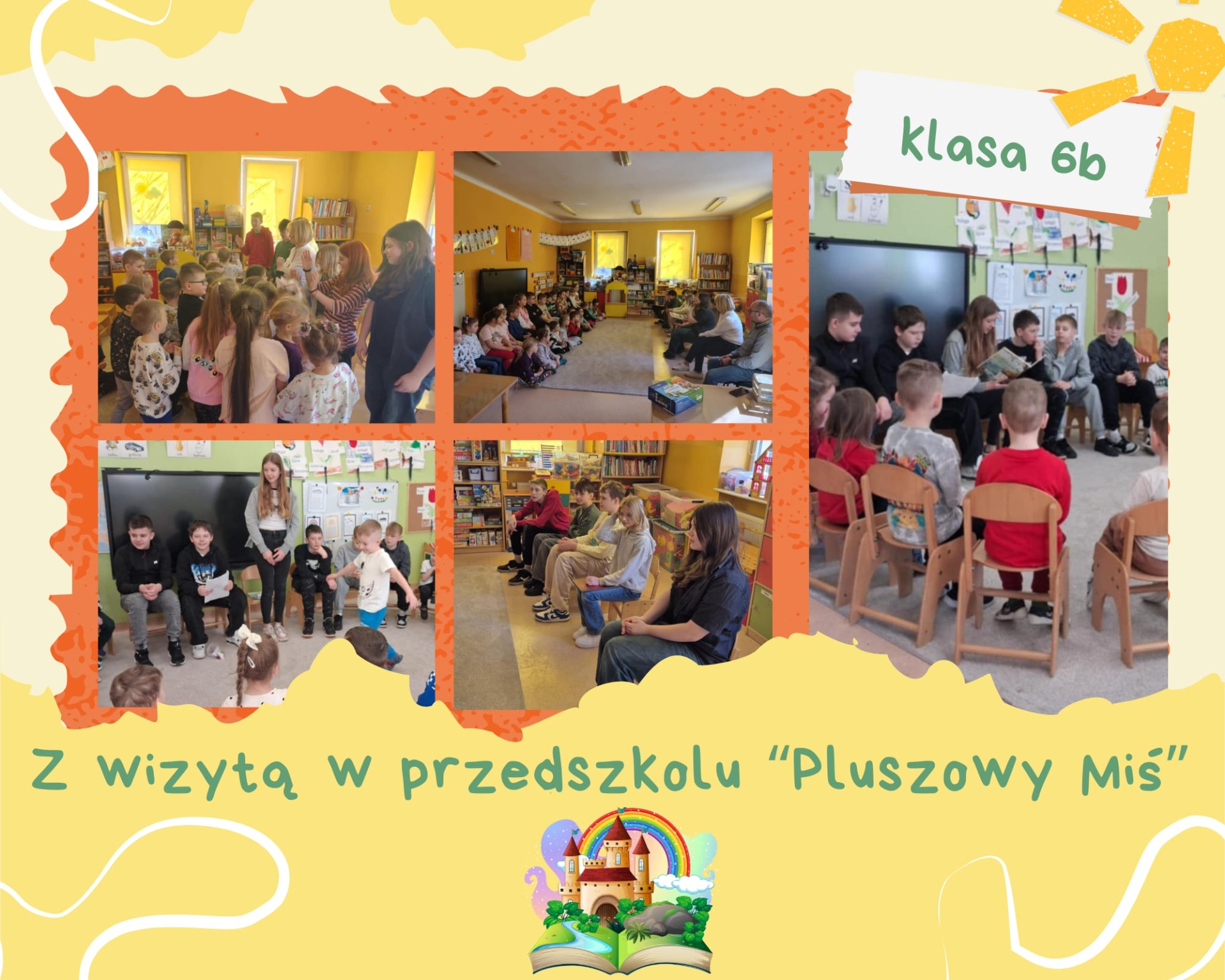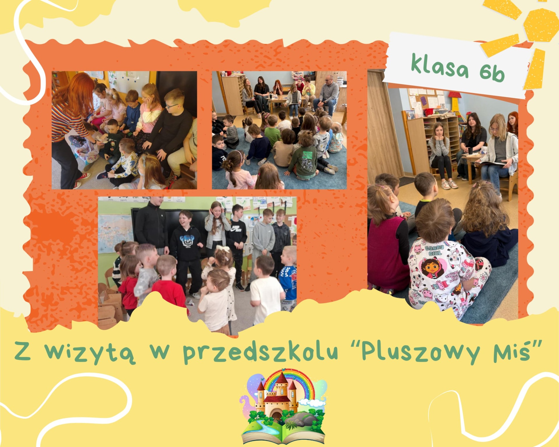 Dzisiaj uczniowie klasy 6b odwiedzili dzieci w Niepublicznym Przedszkolu "Pluszowy Miś" w Kaliszu. Czytali im bajki. Przygotowali ciekawe zabawy, zagadki oraz niespodzianki. Wszyscy bawiliśmy się świetnie!