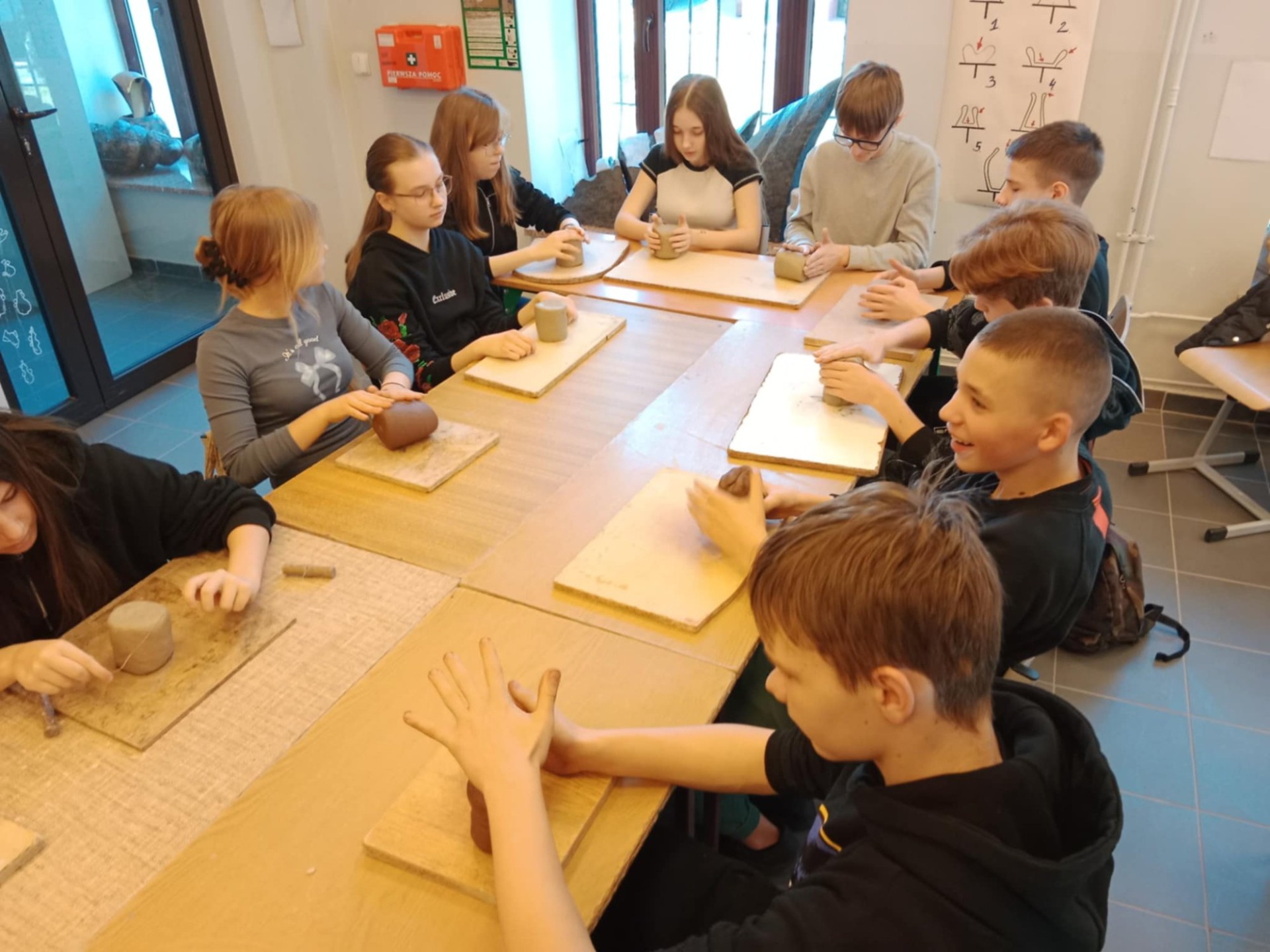 W kwietniu klasa 7c uczestniczyła w warsztatach ceramicznych w Liceum Plastycznym. Uczniowie przygotowywali kubeczki, które zostaną wypalone w piecu do wypalania ceramiki. Warsztaty okazały się świetną zabawą, relaksem i okazją do miłego spędzenia czasu.