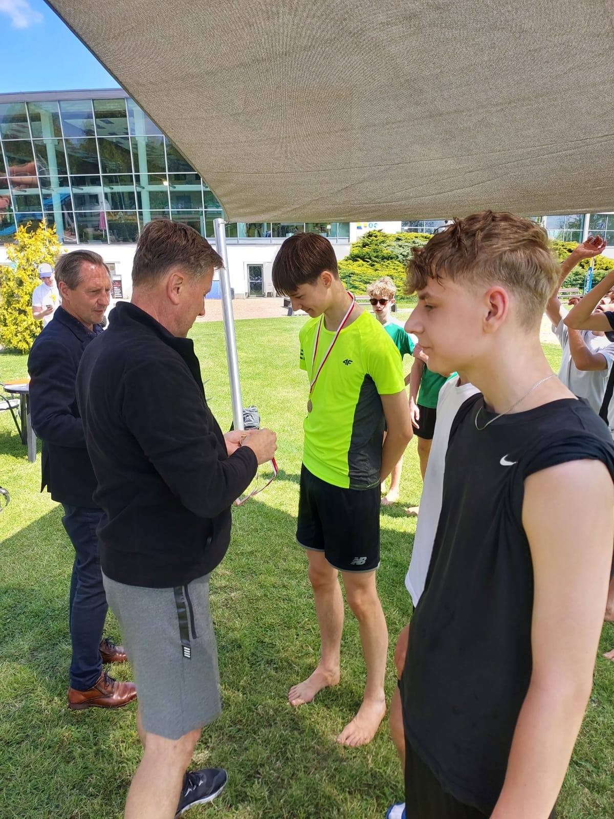20 maja 2025r. na boiskach do piłki plażowej w Aquaparku Kalisz odbyły się finały rejonu kaliskiego w piłce plażowej chłopców. Naszą szkołę reprezentowali: Nikodem Pawlak, Oskar Wojtyś oraz Ignacy Okoń. Uczniowie ostatecznie wywalczyli brązowy medal. Gratulujemy udanych zawodów.