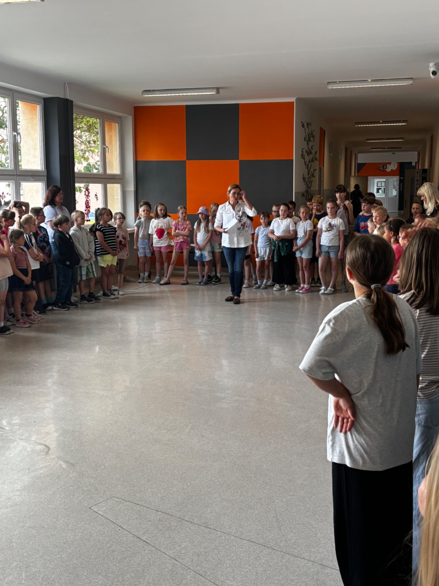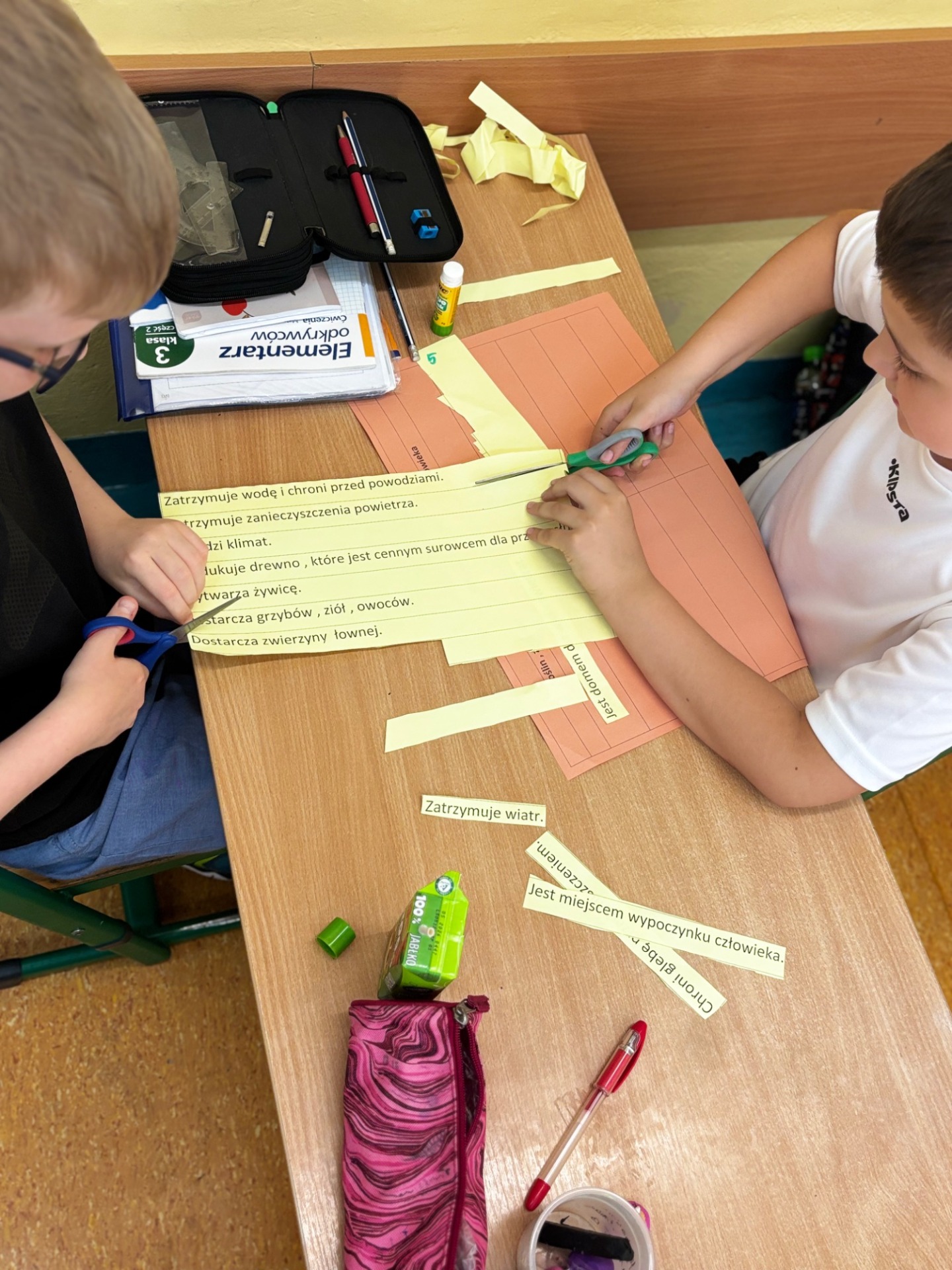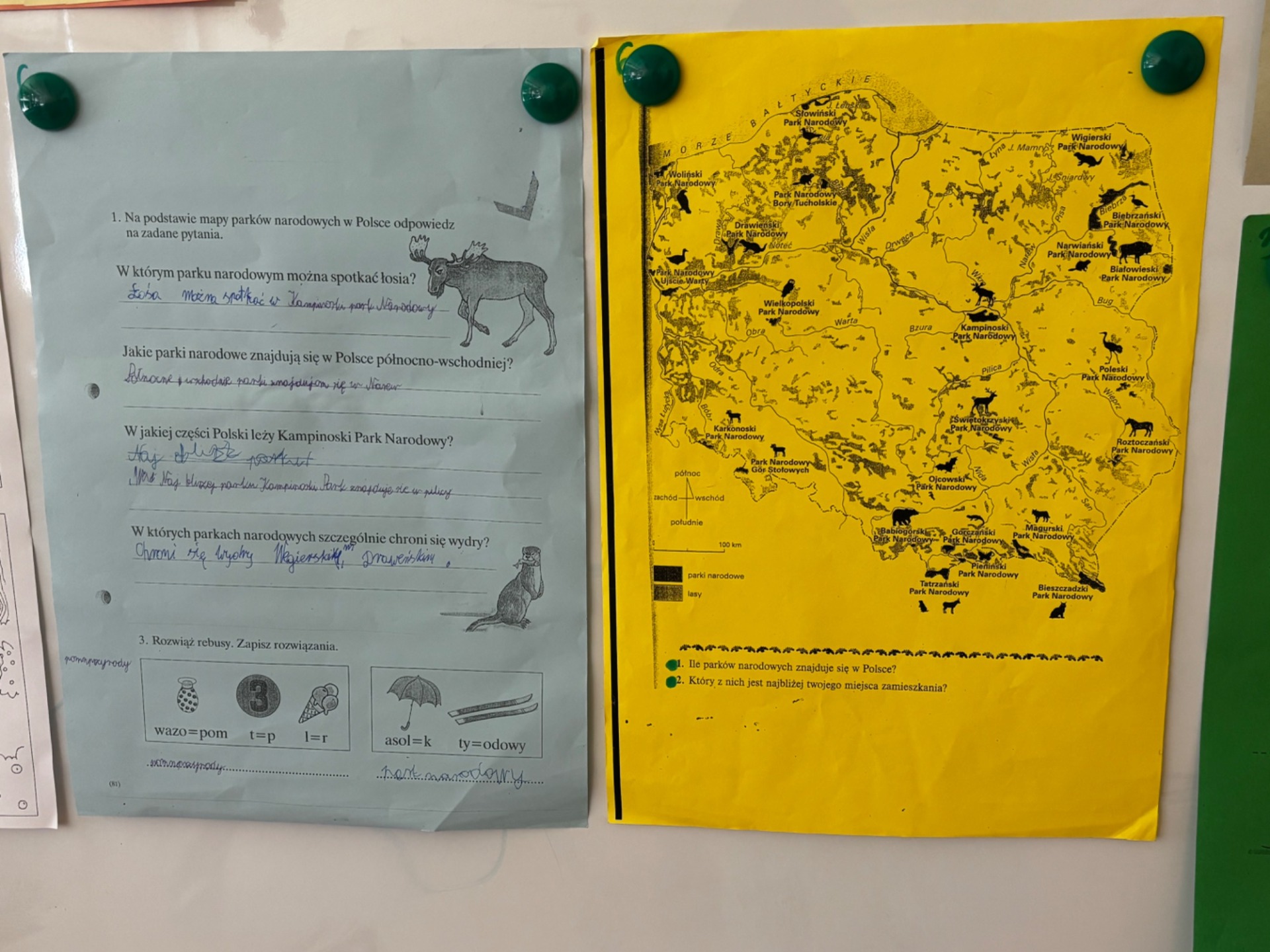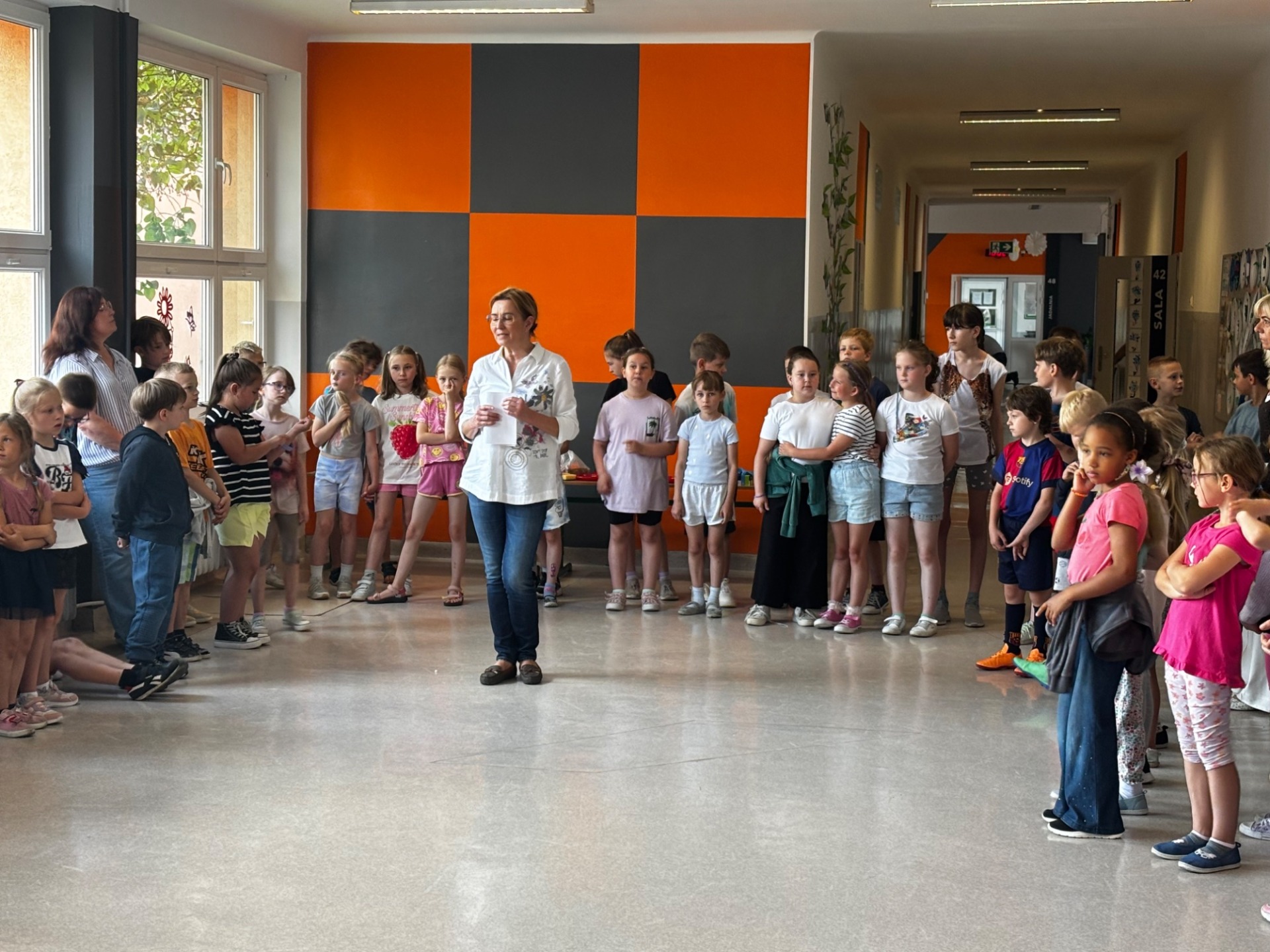 Aby przybliżyć uczniom klas I-III tematykę związaną z ochroną flory i fauny na całym świecie, zamiast tradycyjnego apelu czy przedstawienia, uczniowie otrzymali zadania do wykonania w grupach. I tak rozwiązywali szyfrowanki matematyczne z hasłem, krzyżówki, rebusy, uzupełniali tabele i schematy, a także tworzyli prace plastyczne. Elementem łączącym wszystkich małych ekologów, było odbicie swojej dłoni pod deklaracją „Przyjaciela Przyrody”.