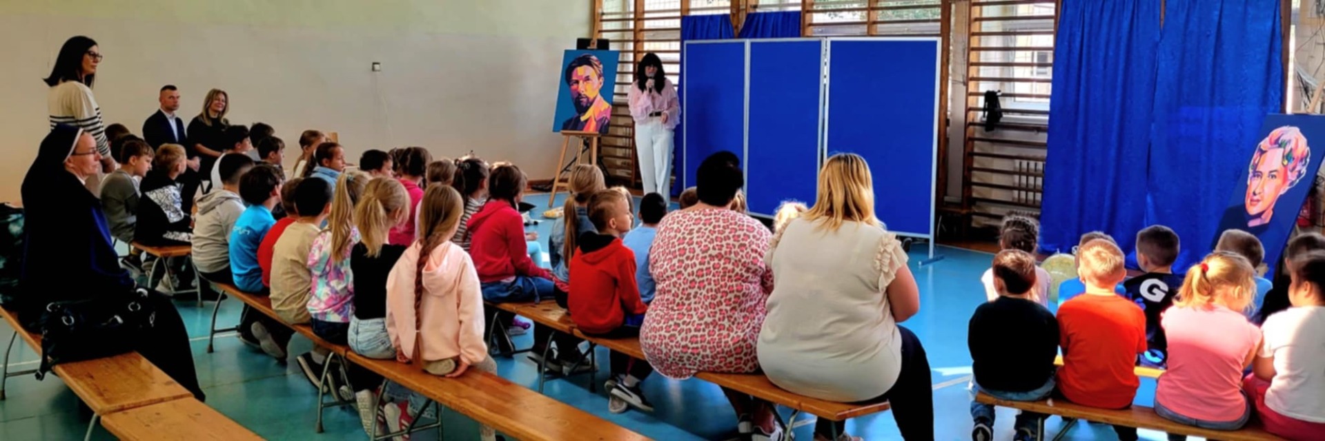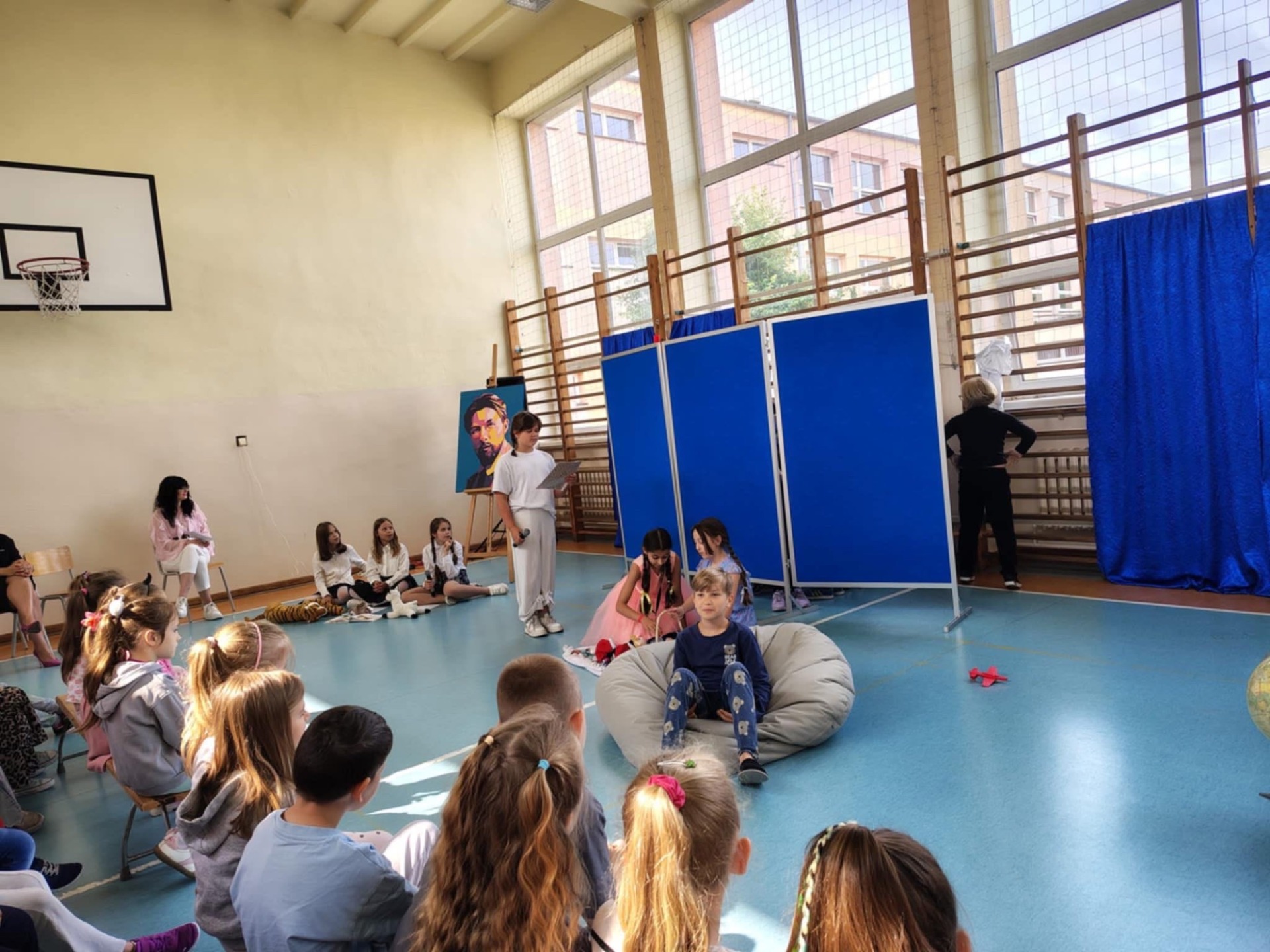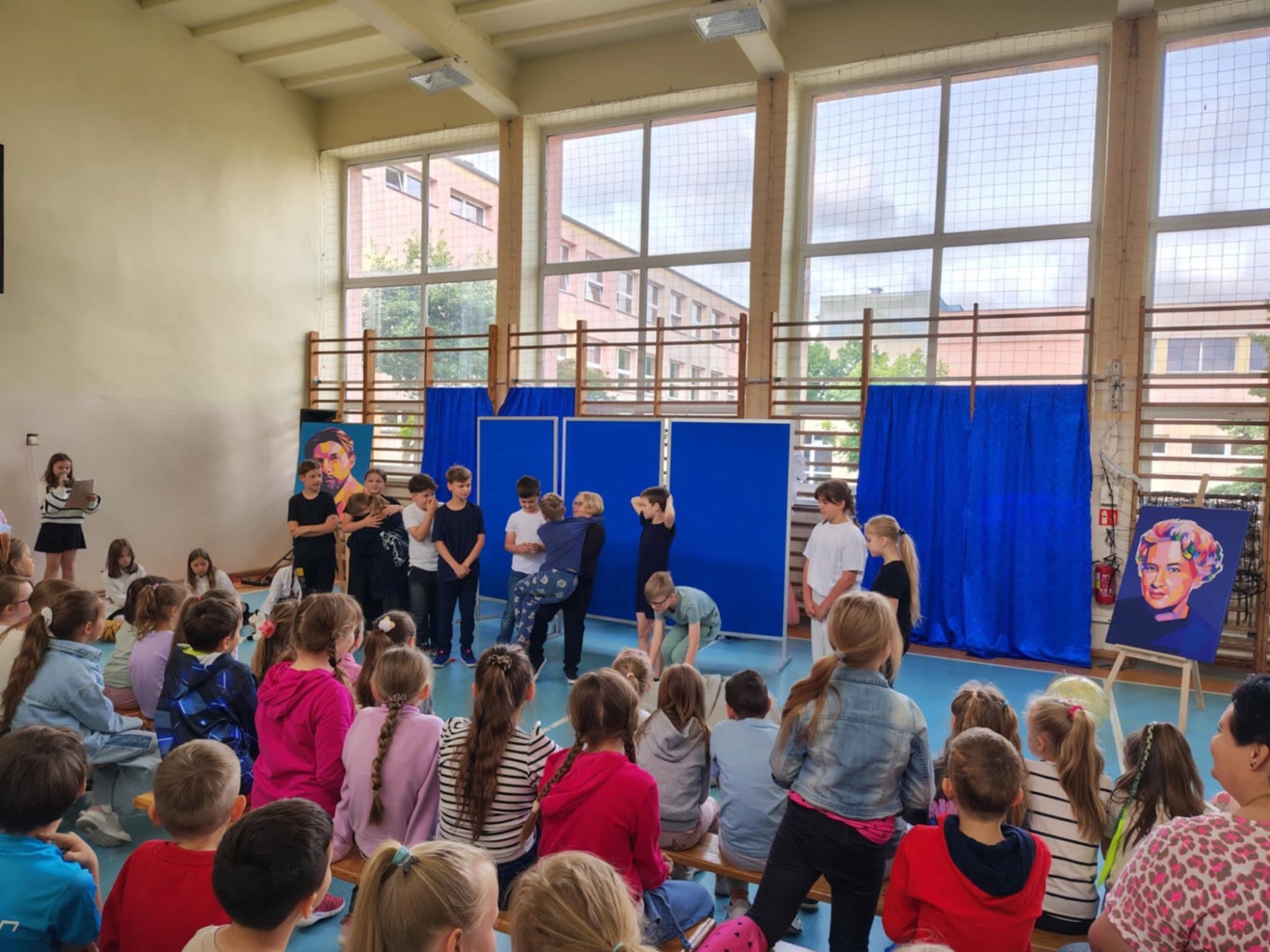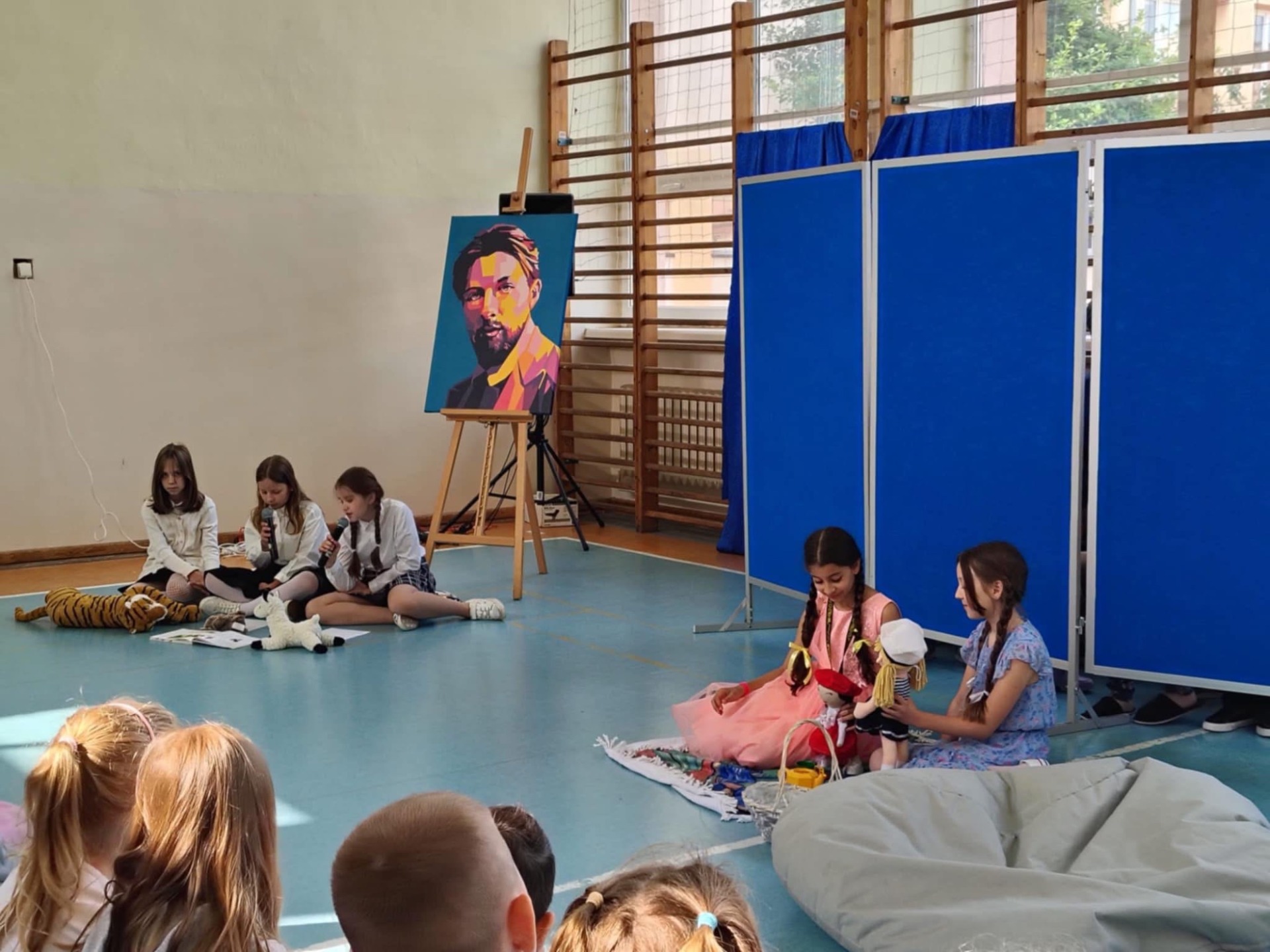 Wśród sportretowanych przez pana Jakuba Multana wielkich pasjonatów, znalazł się Marian Falski. Któż z nas go nie kojarzy? To wielki pedagog i autor najbardziej znanego „Elementarza”. A skoro o pasji mowa, to właśnie dzięki niej powstał scenariusz przedstawienia, którego wystawienia podjęli się uczniowie klasy 3b. Na scenie królowały postaci niczym wyjęte z „Elementarza”, które wraz z dwoma dziewczynkami, starały się przekonać sceptycznie nastawioną koleżankę do tego, że dawniej nauka też była ciekawa. Mimo braku wielu podręczników czy dostępu do Internetu, tamtejsi uczniowie, którzy są dziś rodzicami i dziadkami naszych wychowanków, w szkole bawili się doskonale. Bo jak można zapomnieć bzyczący samolot Lucka, Olę i Alę idące z Lolą i Tolą odwiedzić koleżankę Agatkę, chłopców ze szkolnej ławy szukających na globusie Wysp Bergamuta, lenia, któremu wydaje się, że tyle zrobił i abecadła, które rozsypało się po katach, a przyglądał się temu As - cudowna psina. Tego nie da się zapomnieć. Na całe szczęście! I takie właśnie było też to przedstawienie. Zabawne i niezapomniane.