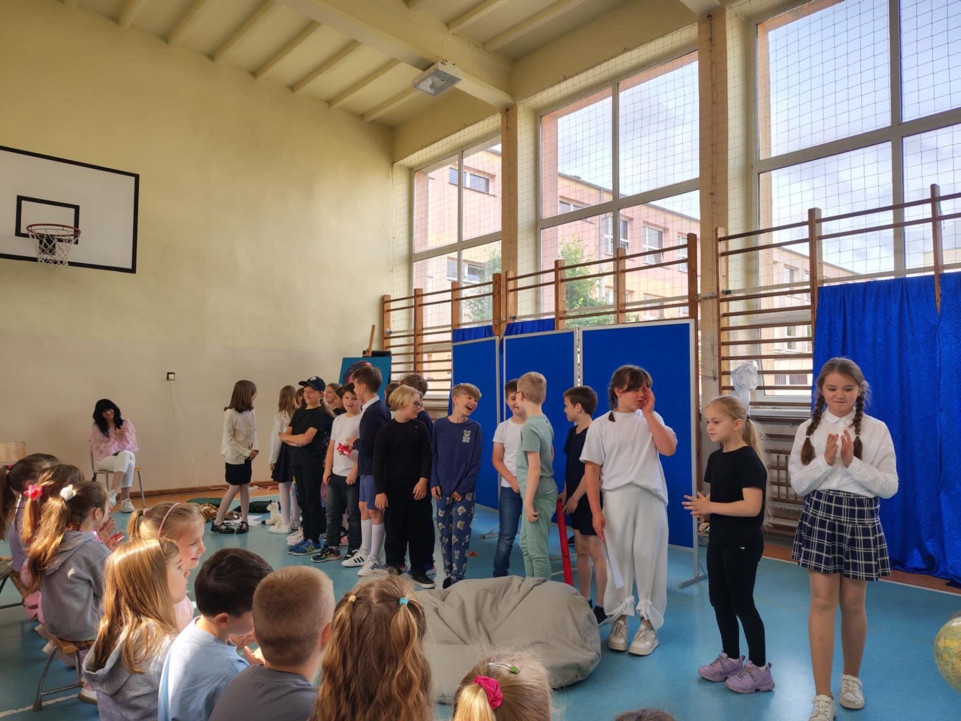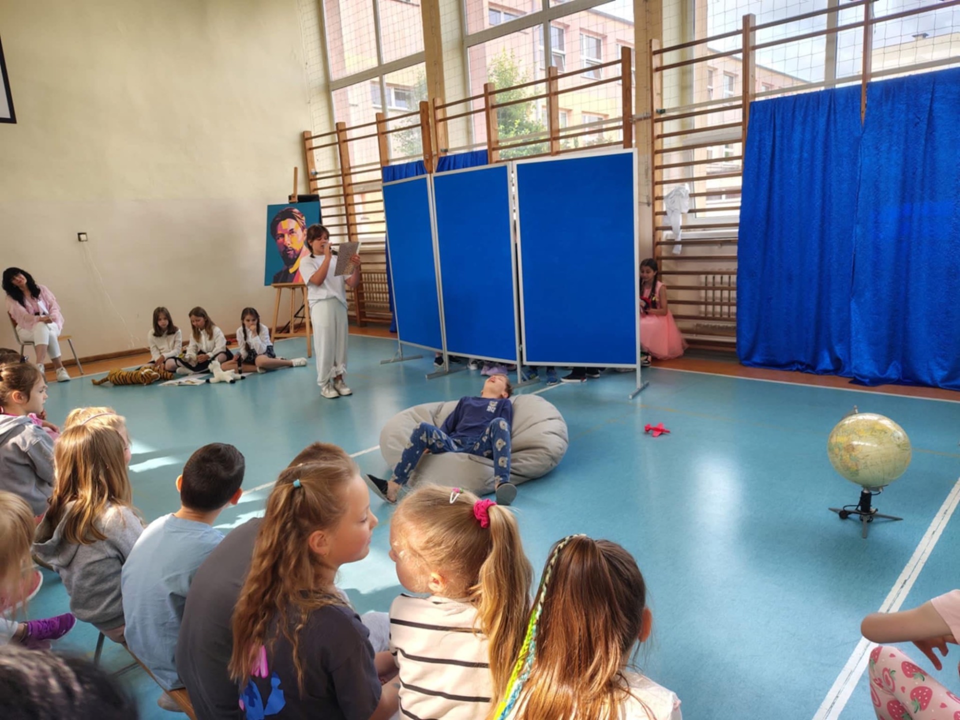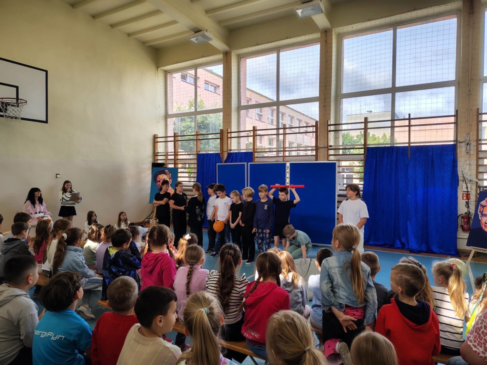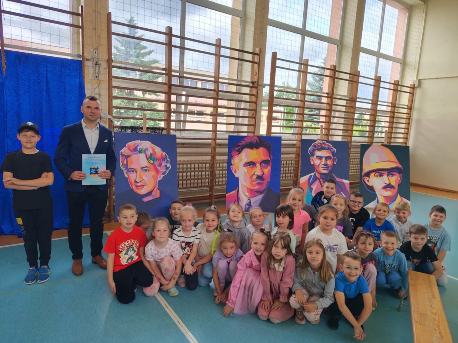 Wśród sportretowanych przez pana Jakuba Multana wielkich pasjonatów, znalazł się Marian Falski. Któż z nas go nie kojarzy? To wielki pedagog i autor najbardziej znanego „Elementarza”. A skoro o pasji mowa, to właśnie dzięki niej powstał scenariusz przedstawienia, którego wystawienia podjęli się uczniowie klasy 3b. Na scenie królowały postaci niczym wyjęte z „Elementarza”, które wraz z dwoma dziewczynkami, starały się przekonać sceptycznie nastawioną koleżankę do tego, że dawniej nauka też była ciekawa. Mimo braku wielu podręczników czy dostępu do Internetu, tamtejsi uczniowie, którzy są dziś rodzicami i dziadkami naszych wychowanków, w szkole bawili się doskonale. Bo jak można zapomnieć bzyczący samolot Lucka, Olę i Alę idące z Lolą i Tolą odwiedzić koleżankę Agatkę, chłopców ze szkolnej ławy szukających na globusie Wysp Bergamuta, lenia, któremu wydaje się, że tyle zrobił i abecadła, które rozsypało się po katach, a przyglądał się temu As - cudowna psina. Tego nie da się zapomnieć. Na całe szczęście! I takie właśnie było też to przedstawienie. Zabawne i niezapomniane.