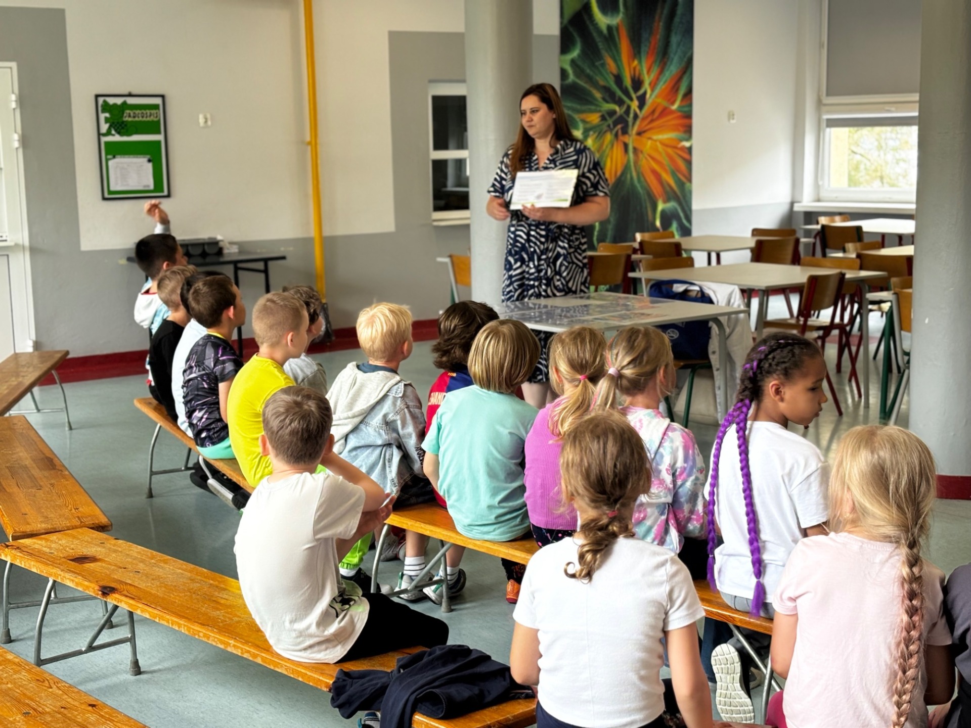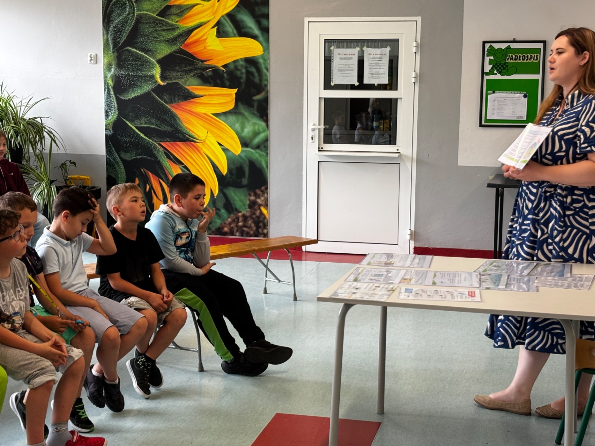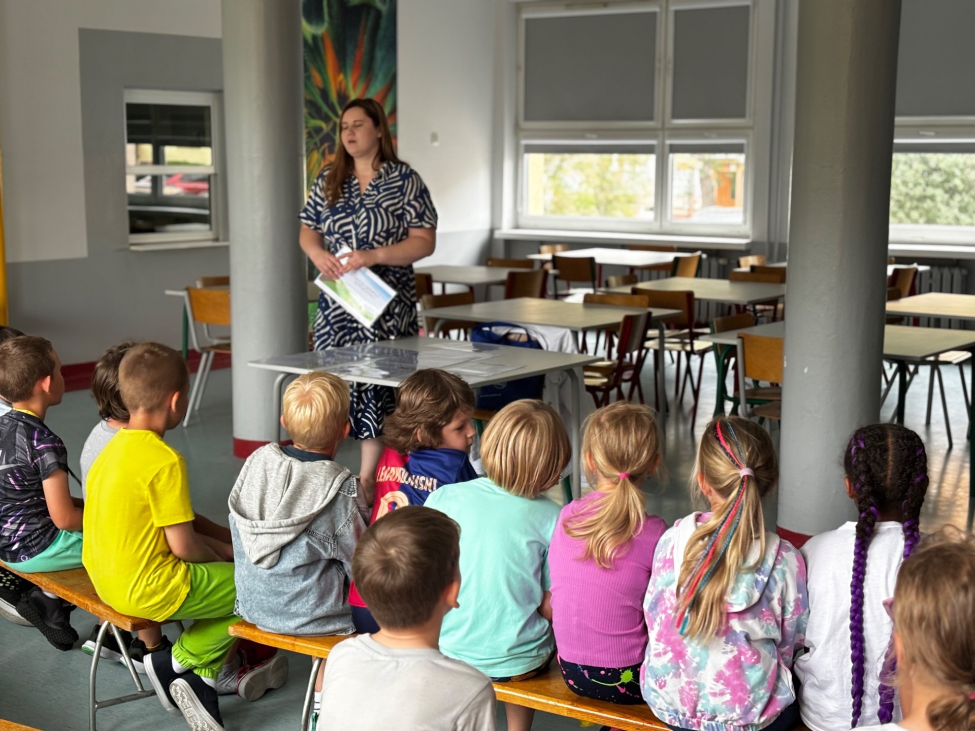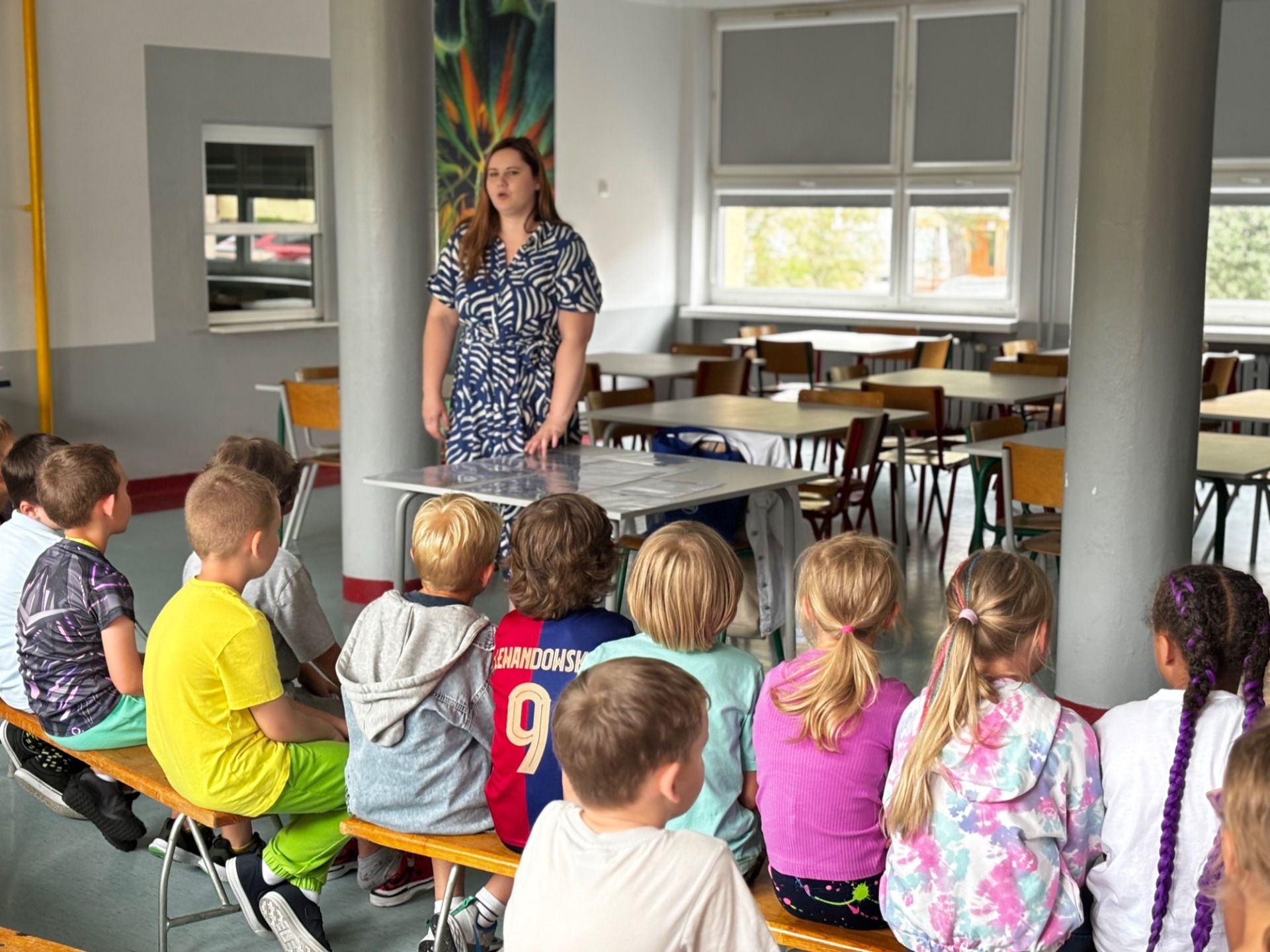 Kolejnym nie mniej ekscytującym działaniem była wizyta przedstawiciela Powiatowej Stacji Sanitarno-Epidemiologicznej w Kaliszu. Uczniowie utrwalili wiedzę dotyczącą zdrowego odżywiania się oraz dbania o nawodnienie organizmu w czasie upałów. Mogli pochwalić się umiejętnościami w zakresie udzielania pierwszej pomocy w przypadku skaleczeń i złamań. Zaproszony gość przypomniał również o szkodliwości używek oraz biernego palenia. Na zakończenie prelekcji przewidziano quiz z nagrodami, którego to nasi wychowankowie okazali się mistrzami.