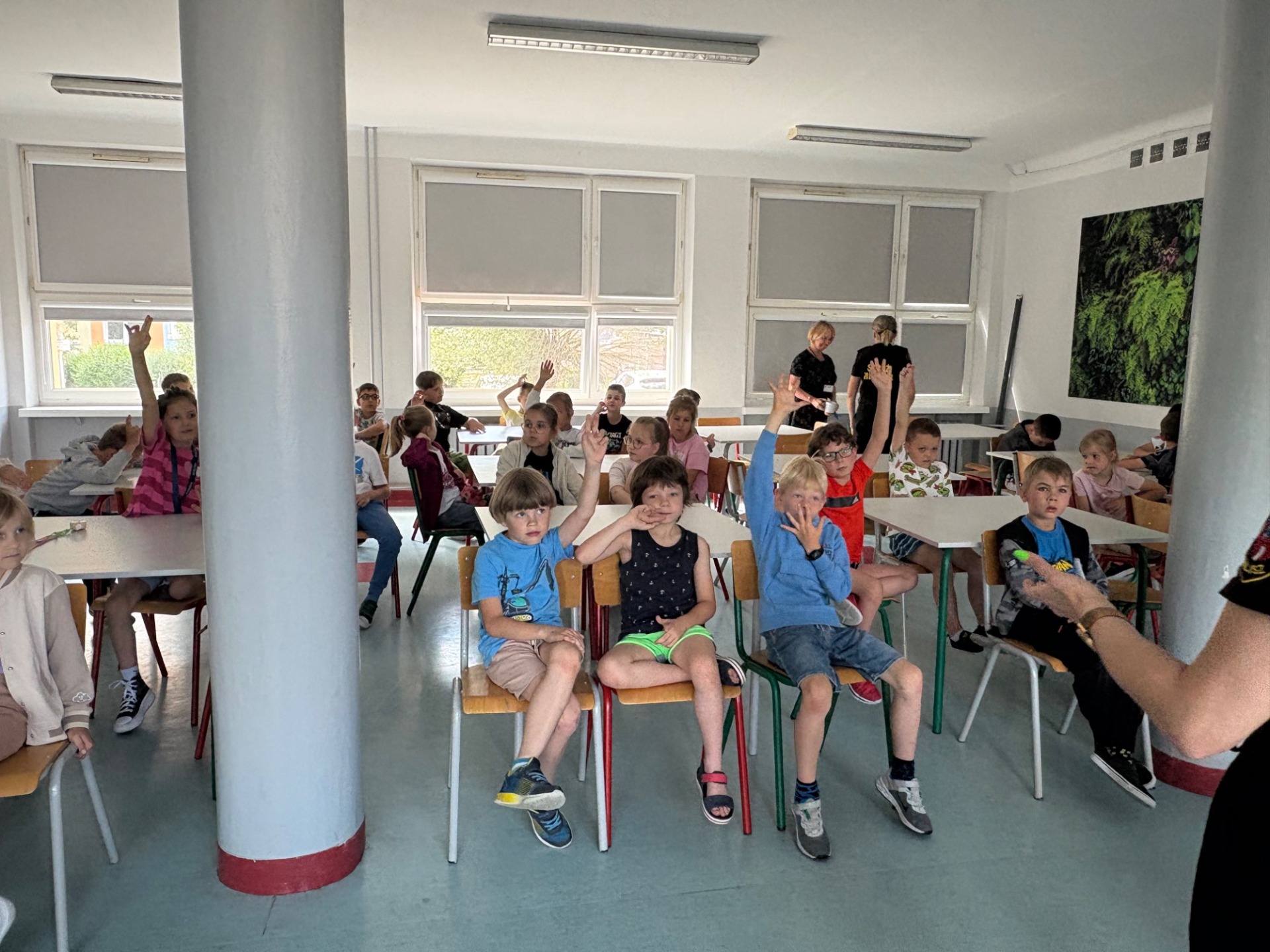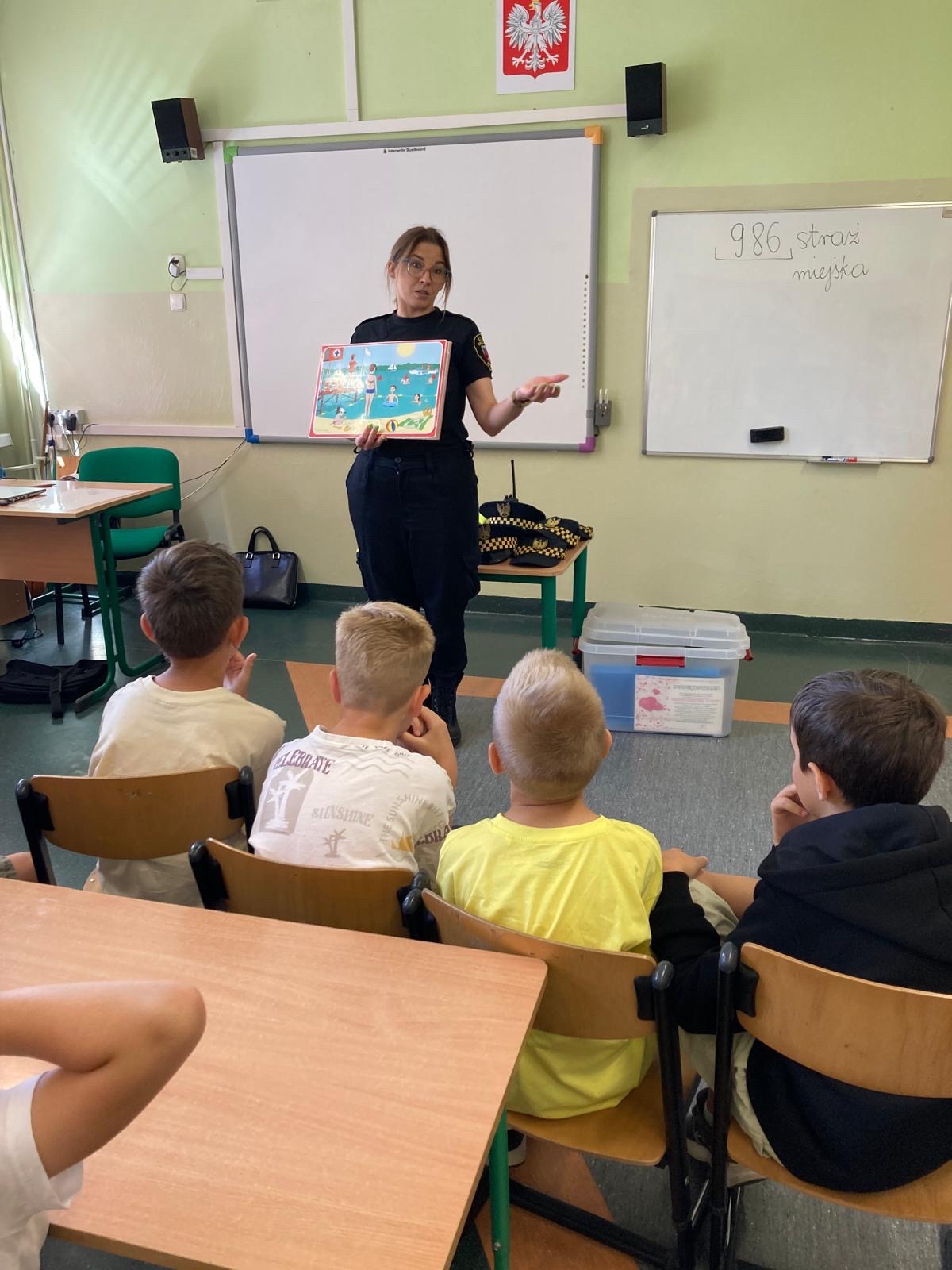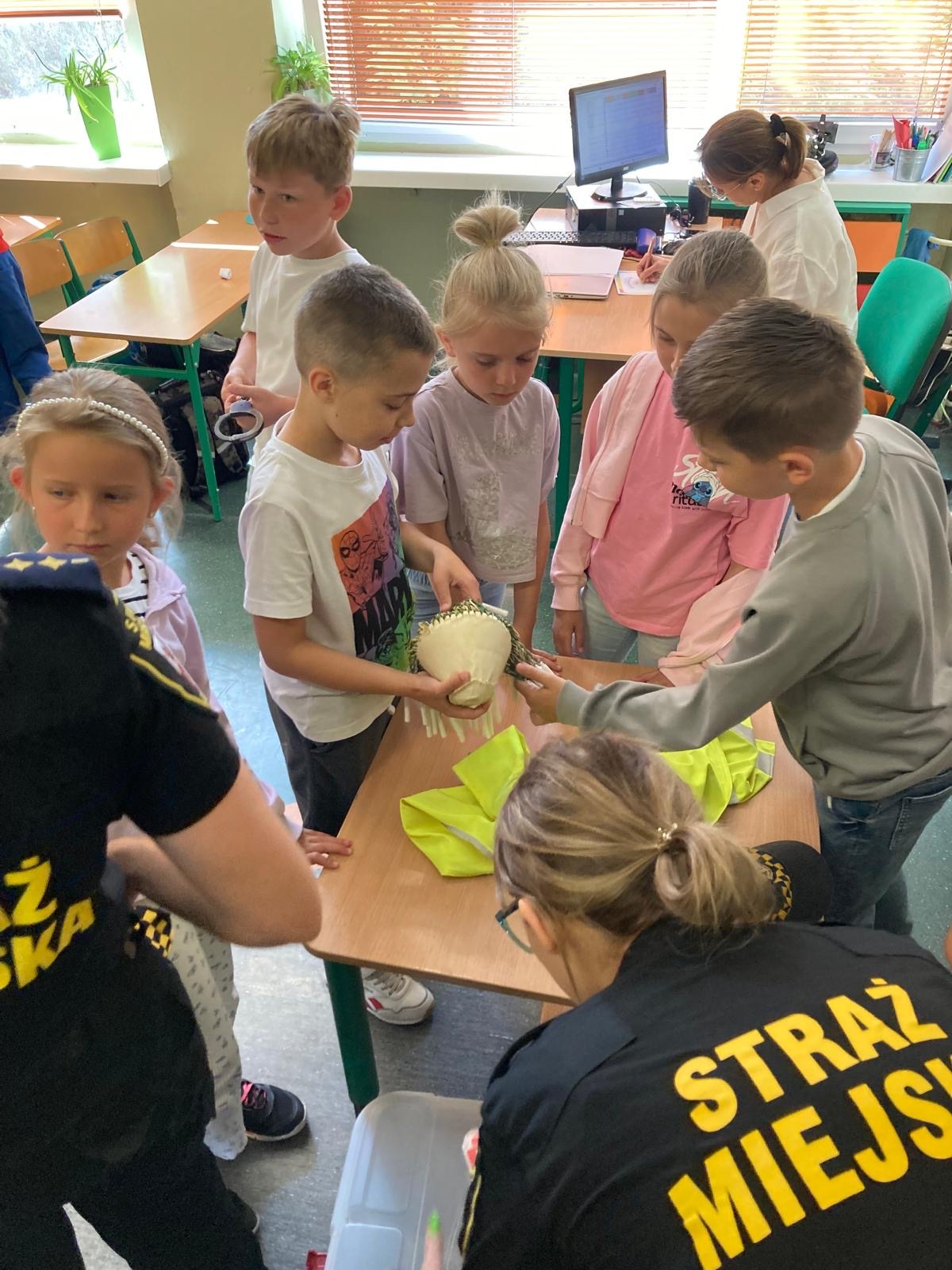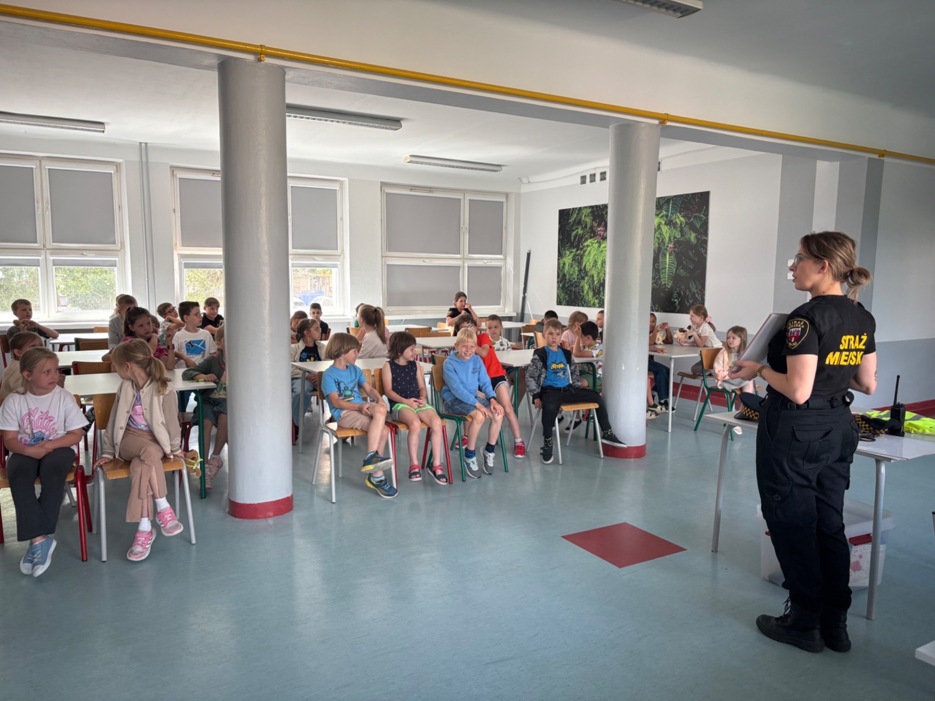Najwięcej emocji wzbudziła wizyta przedstawicieli Straży Miejskiej w Kaliszu. Pogadanka na temat zachowania bezpieczeństwa podczas wypoczynku w górach, nad wodą, w lesie oraz za granicą, urozmaicona była o pokaz oraz zadania praktyczne przygotowane przez strażników miejskich.