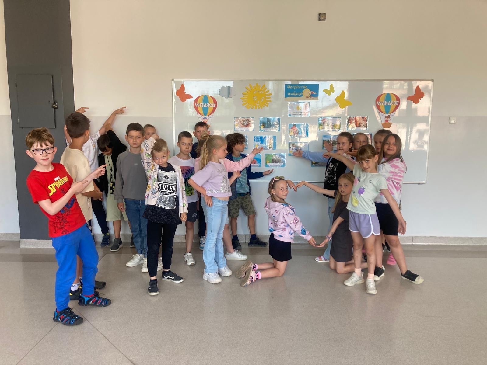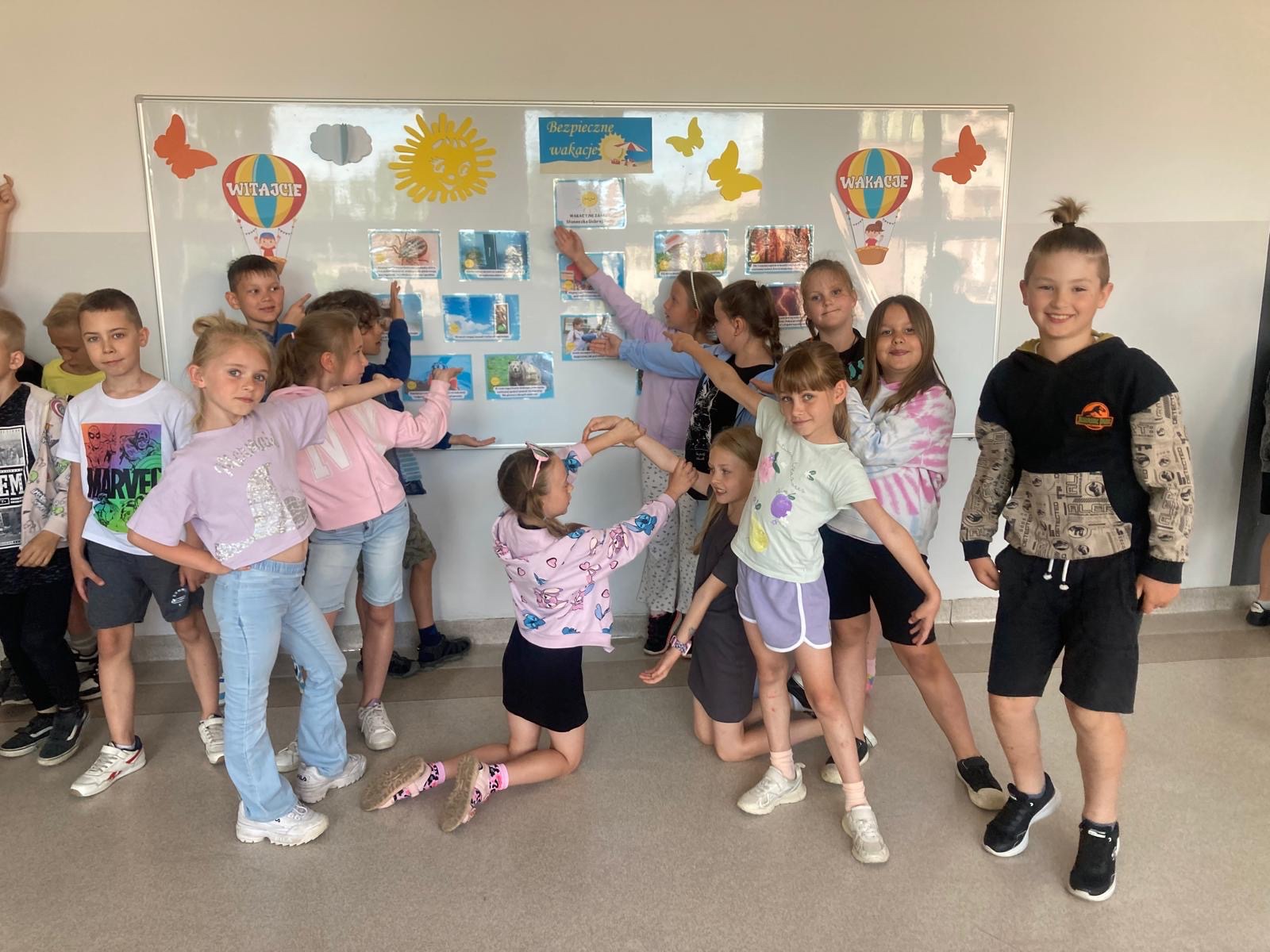 Uzupełnieniem działań z projektu była przygotowana na tę okoliczność dekoracja pod hasłem „Bezpieczne wakacje” oraz inne formy zaplanowane przez nauczycieli, a wpisane w realizowane w klasach I-III treści programowe.