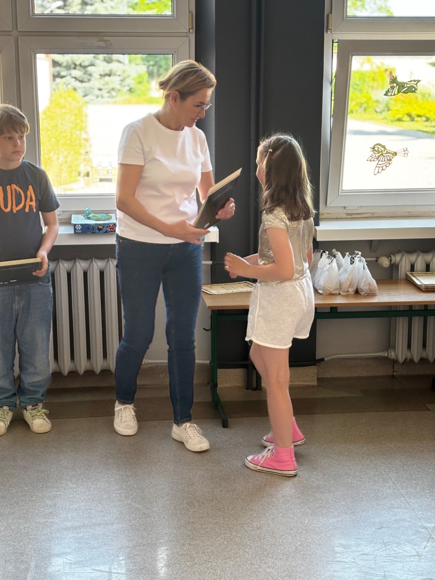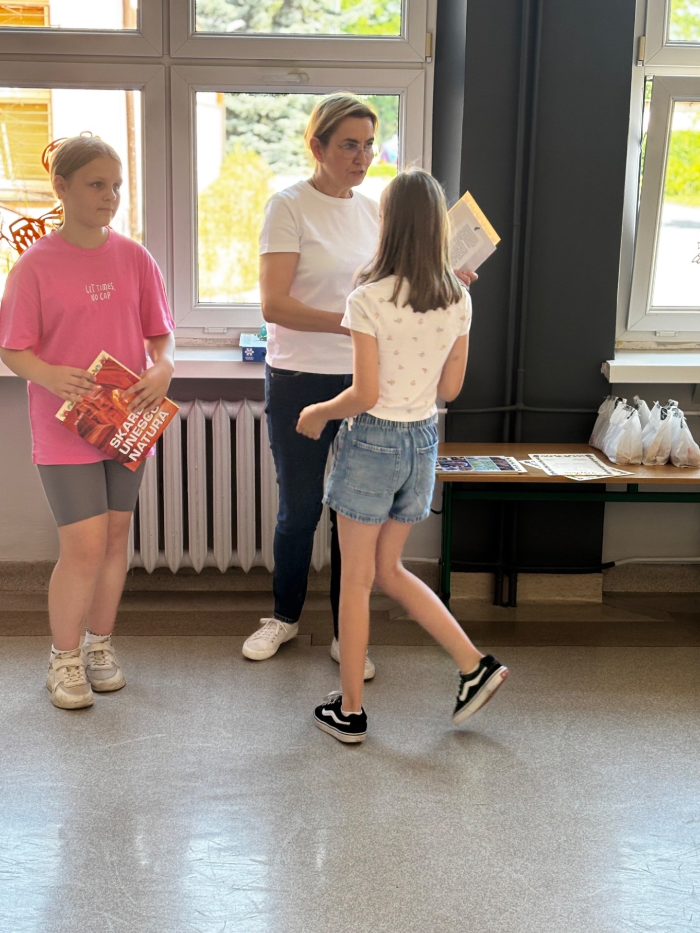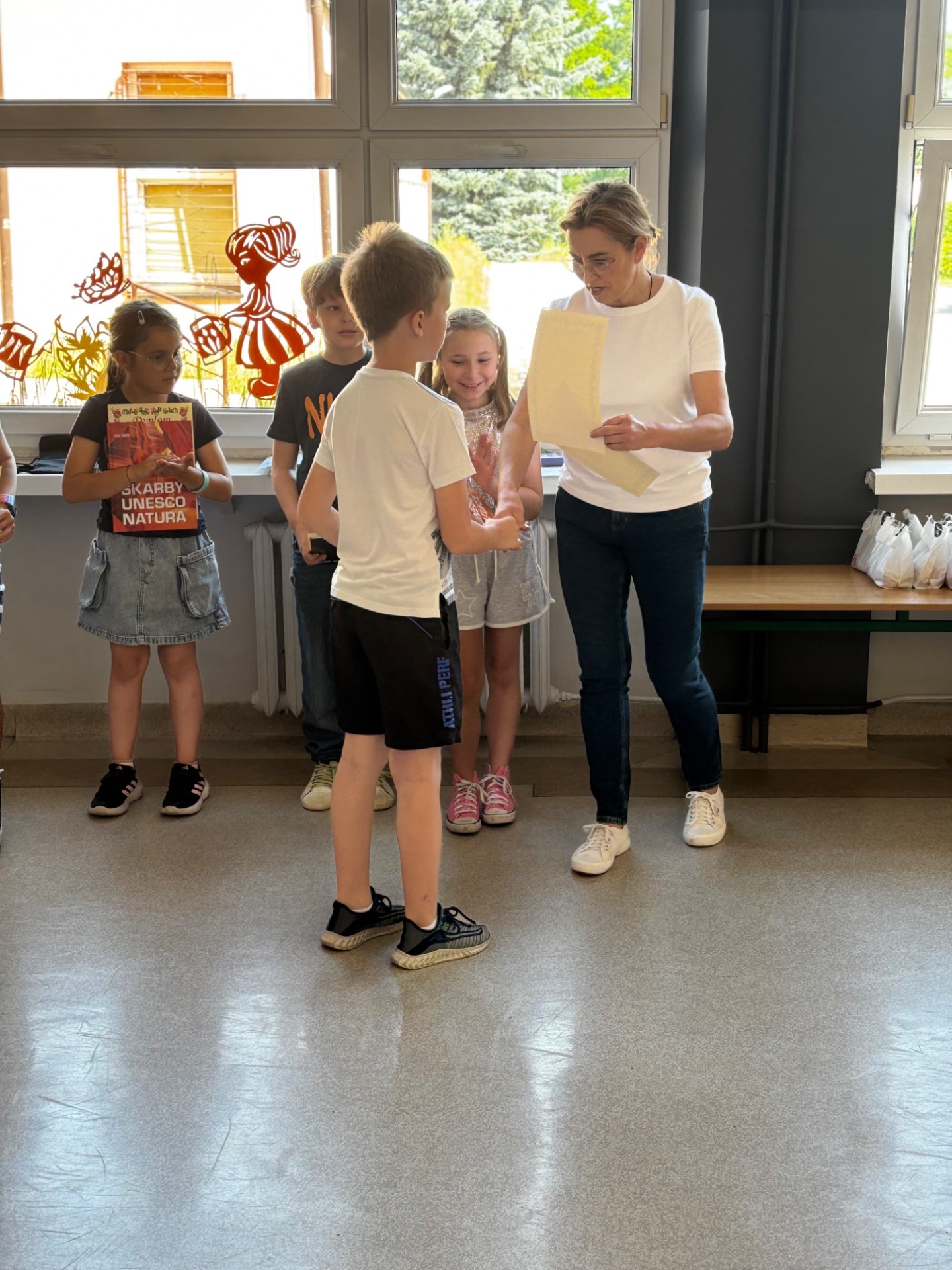 Uczniowie klasy 3b przypomnieli o zasadach bezpieczeństwa w czasie wakacji odczytując rady na czas letniego wypoczynku. Nagrody i pamiątkowe dyplomy powędrowały do laureatów ostatnich już w tym roku szkolnym konkursów.