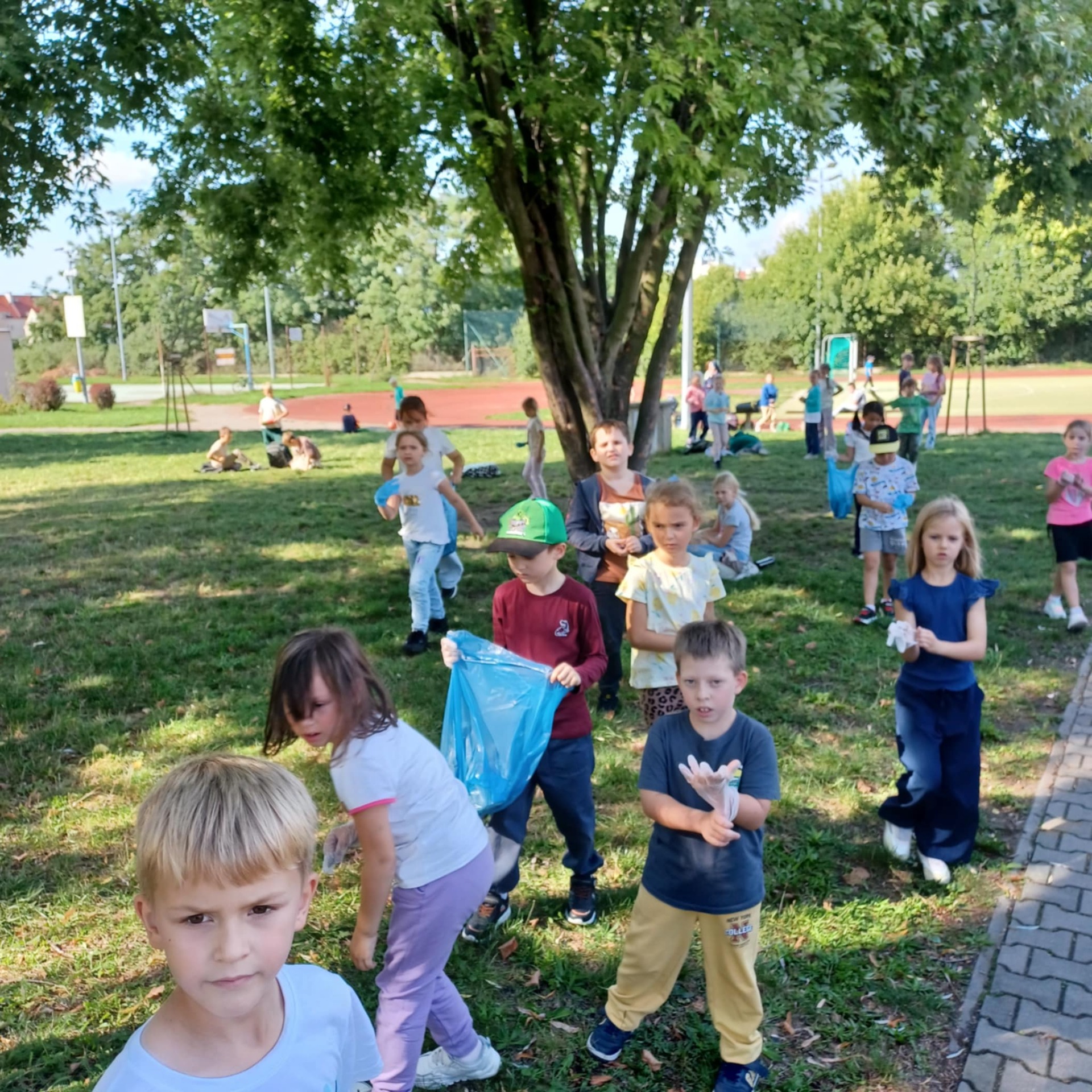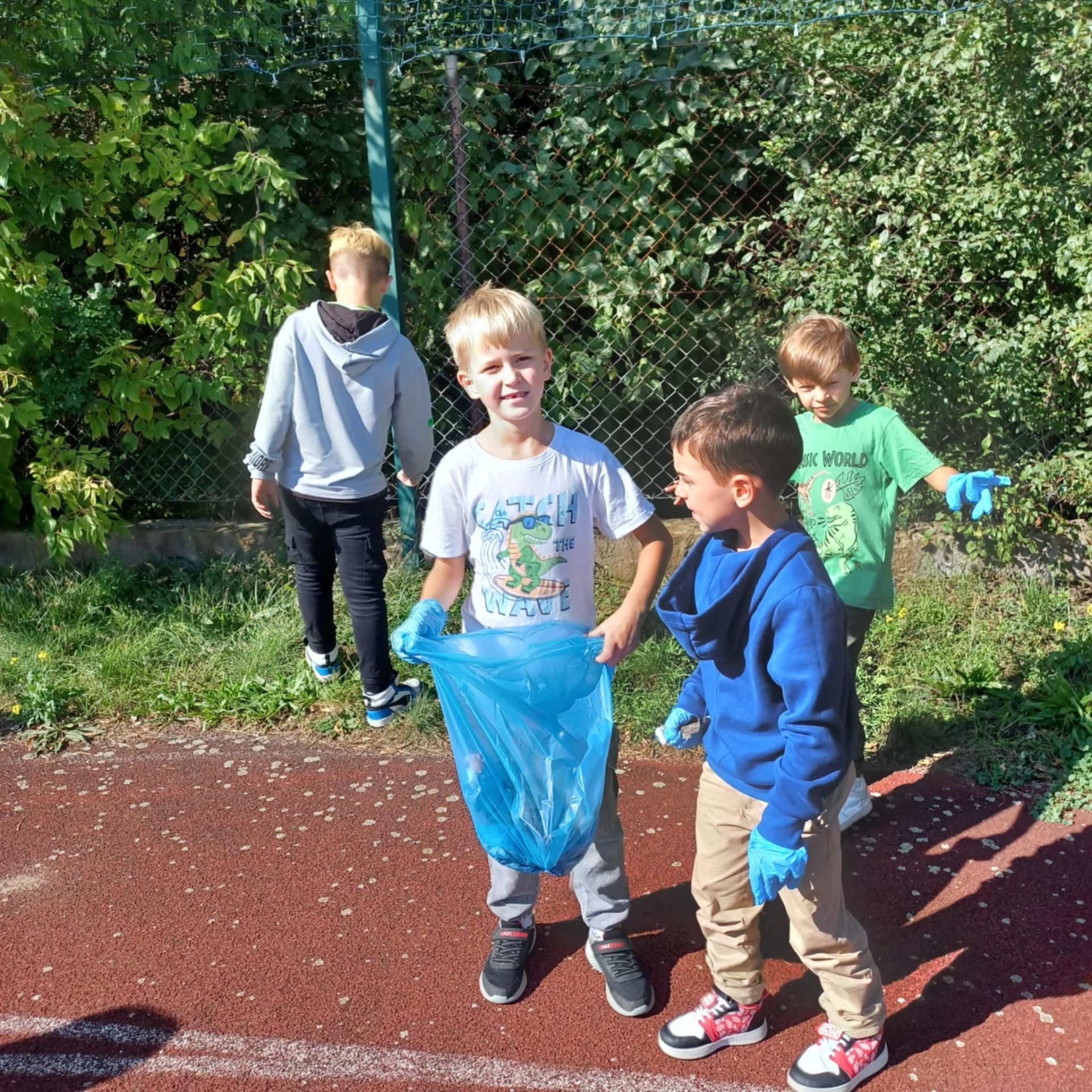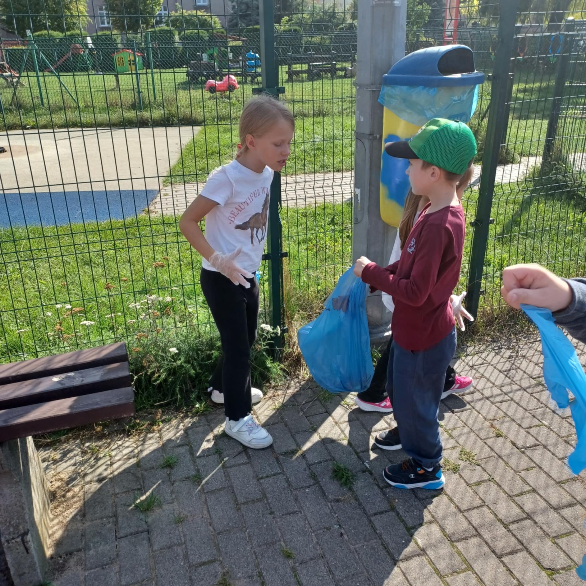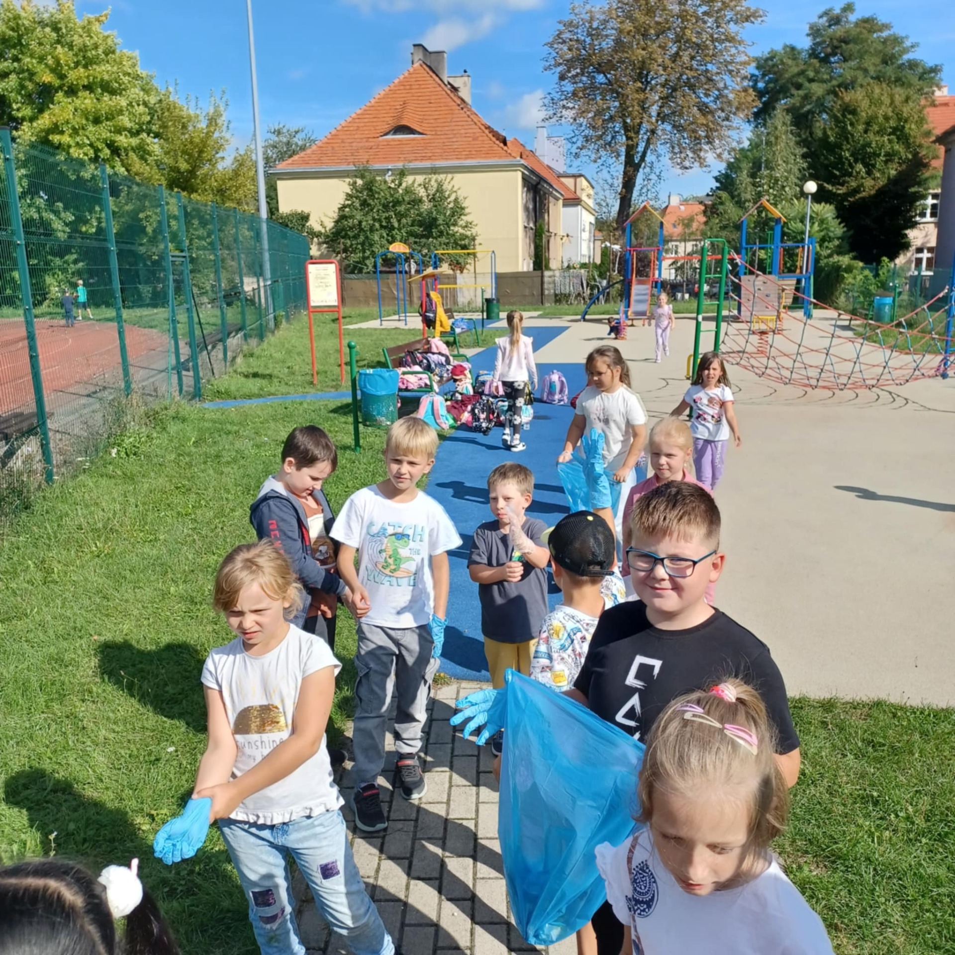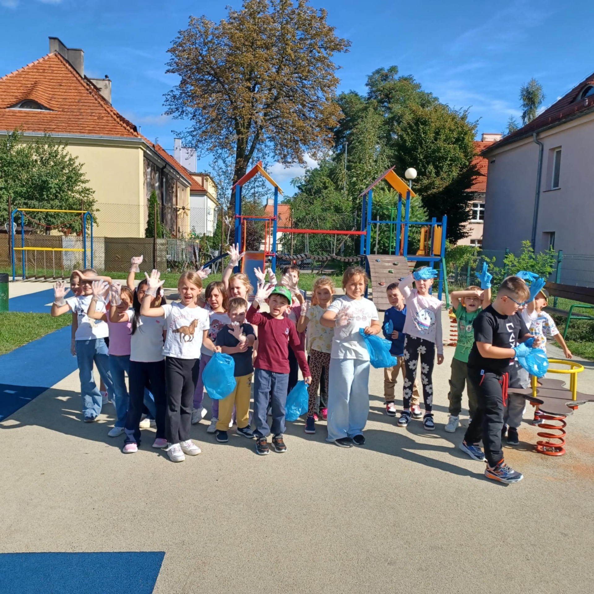 Wyposażeni w rękawiczki i worki na śmieci, mali ekolodzy z zapałem ruszyli, aby posprzątać najbliższą okolicę szkoły. Z uśmiechem na twarzach zbierali puszki, papiery i inne odpady, ucząc się przy tym, jak ważna jest segregacja i troska o czyste środowisko.