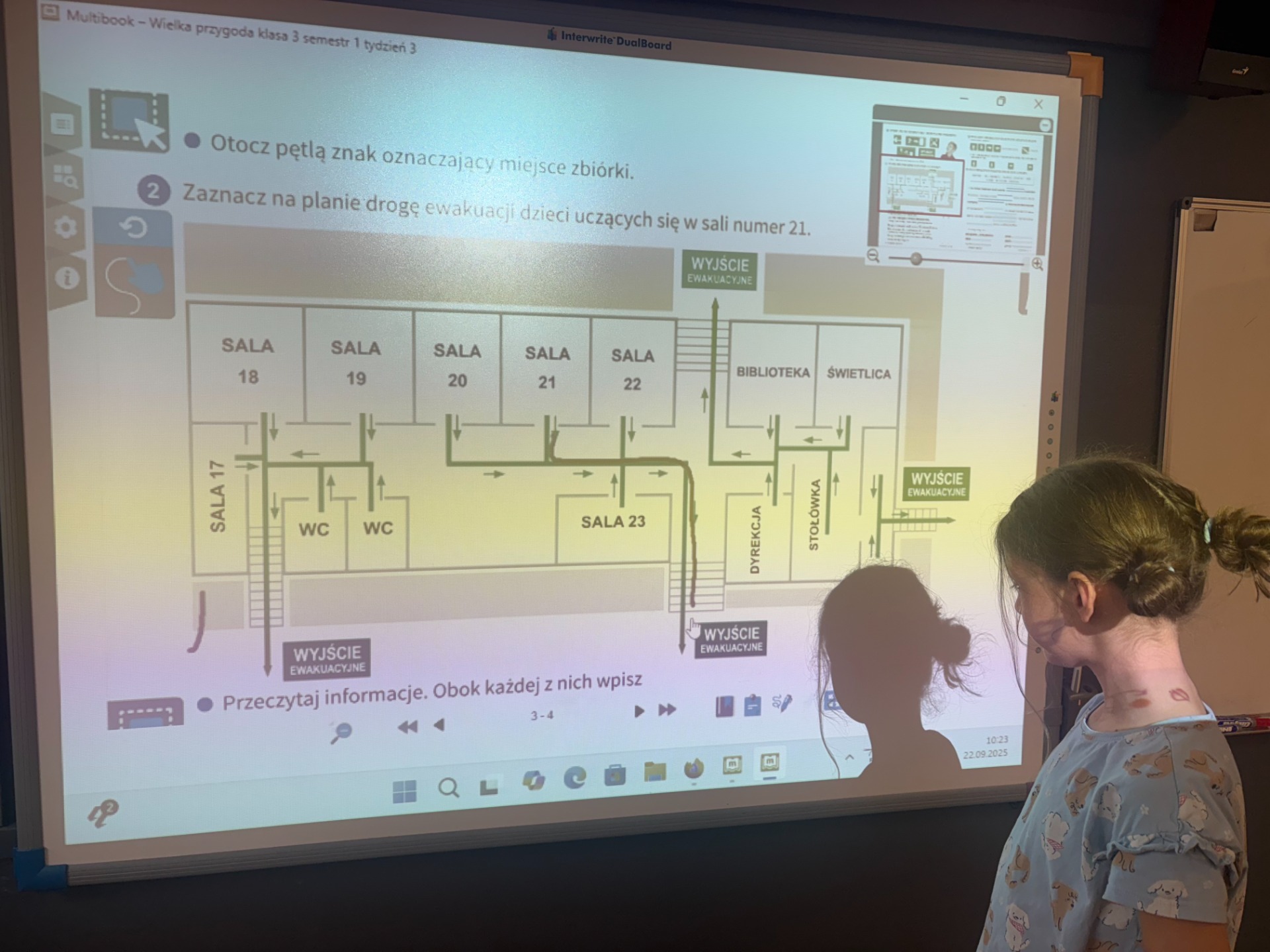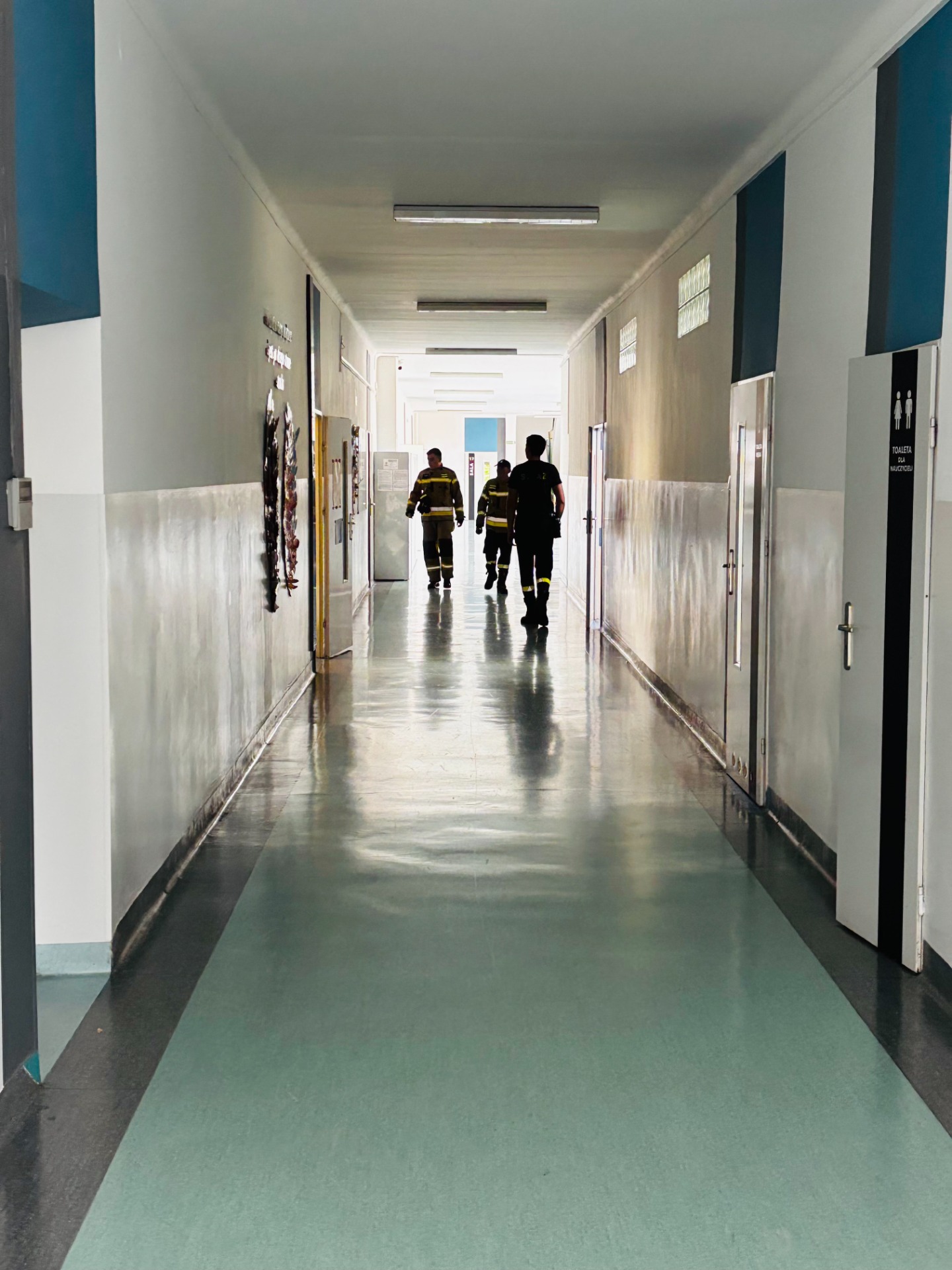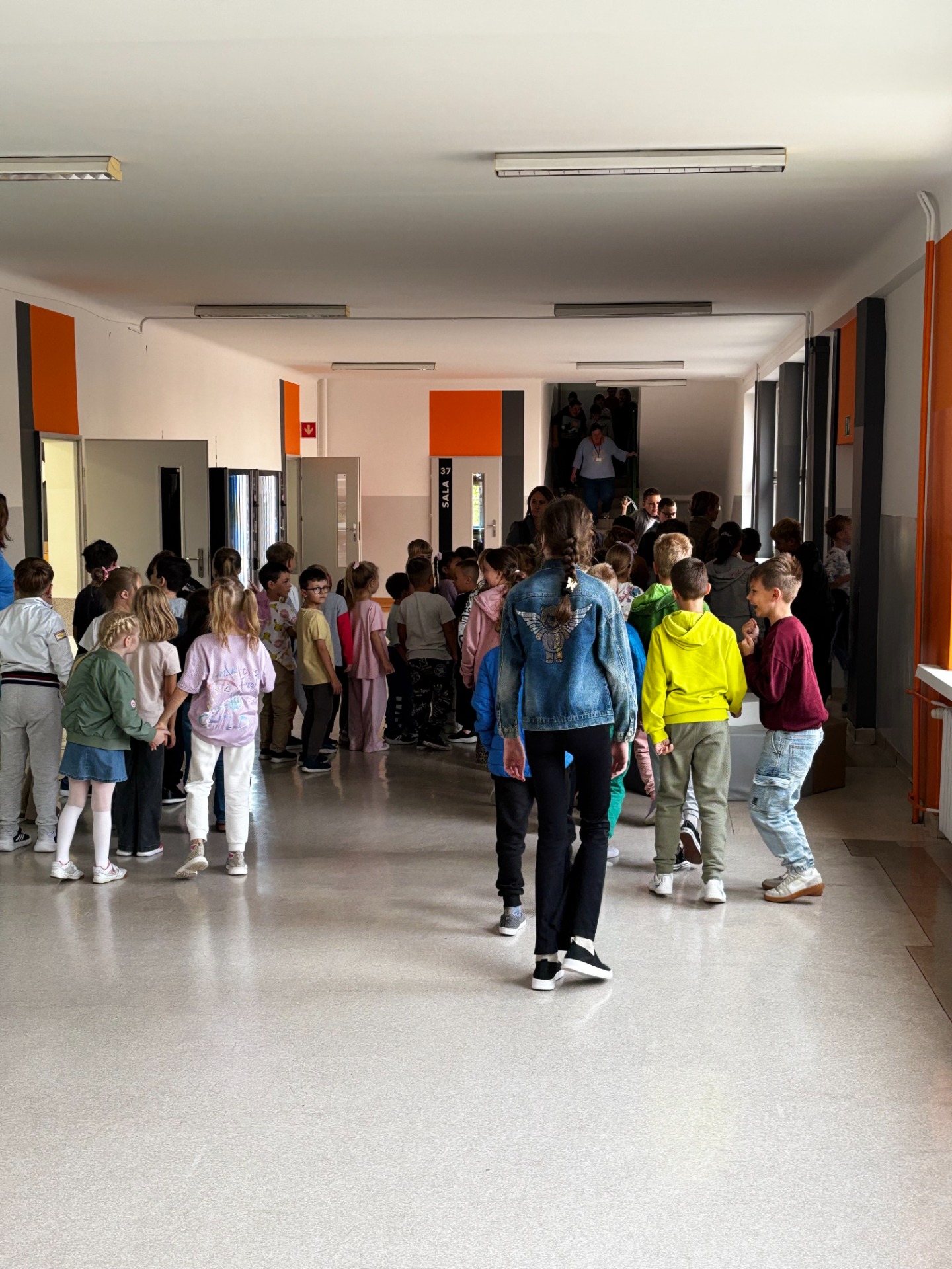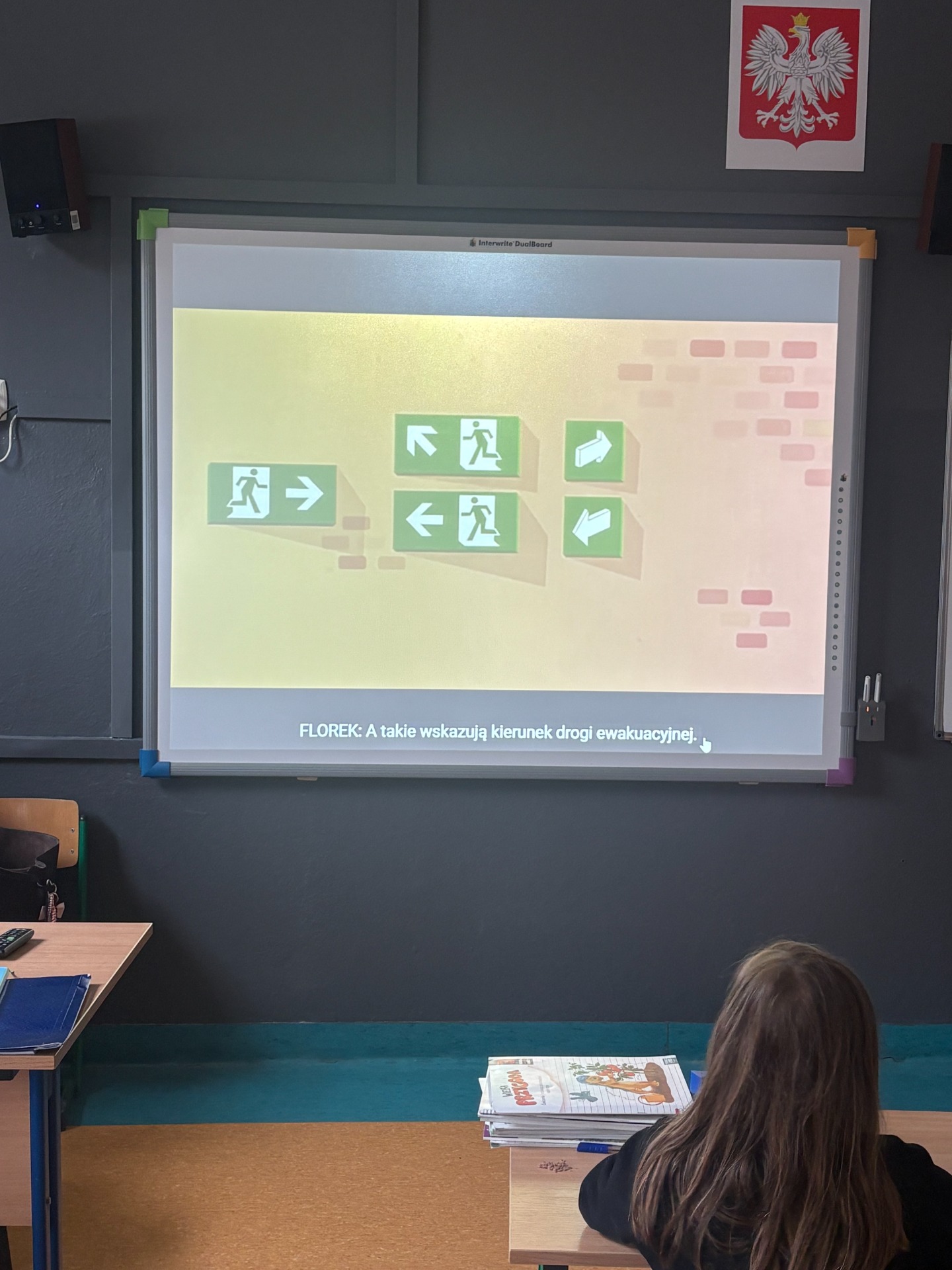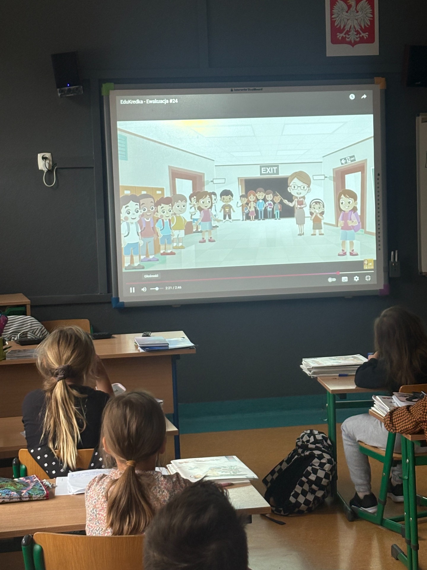 Pierwszy odcinek trasy, czyli wyjście z klasy, pokonany został w ekspresowym tempie. Każdy uczeń pamiętał, że w drodze do drzwi mają być równe szeregi, zero przepychania i krzyku paniki. W tak ważnej misji liczy się każda sekunda i opanowanie! Na korytarzach i schodach panował porządek. Uczniowie w rekordowym czasie dotarli do punktu zbiórki.