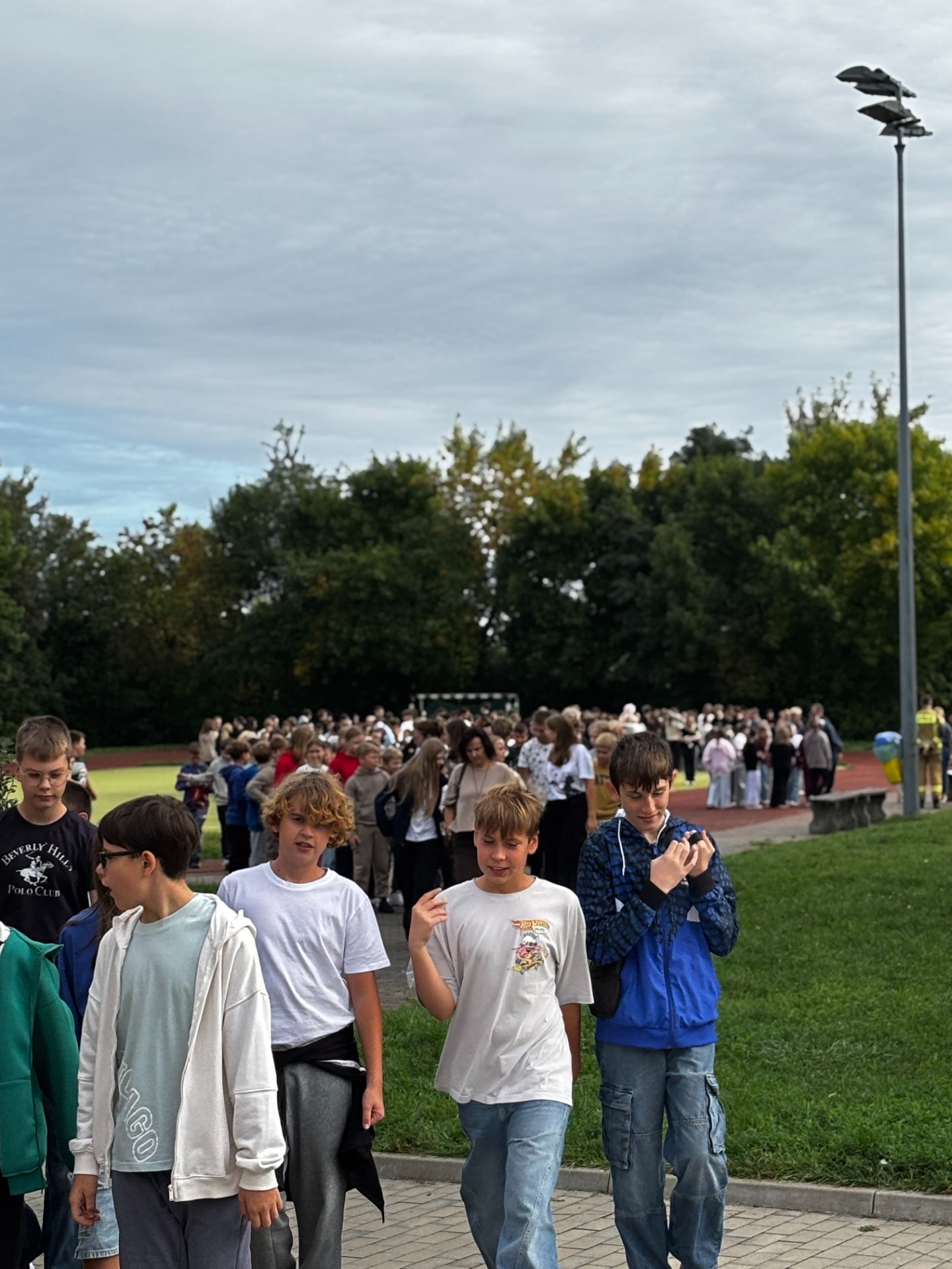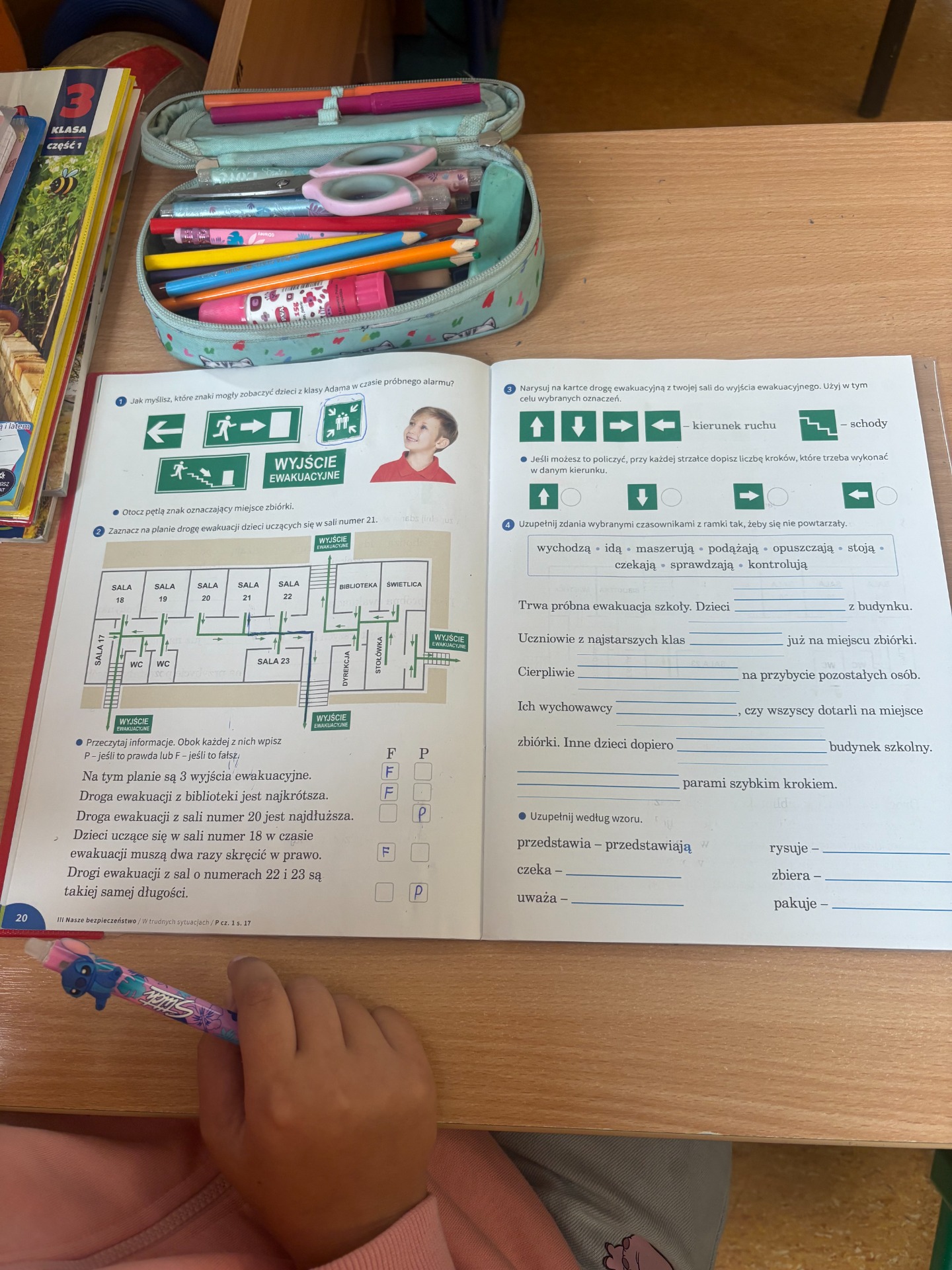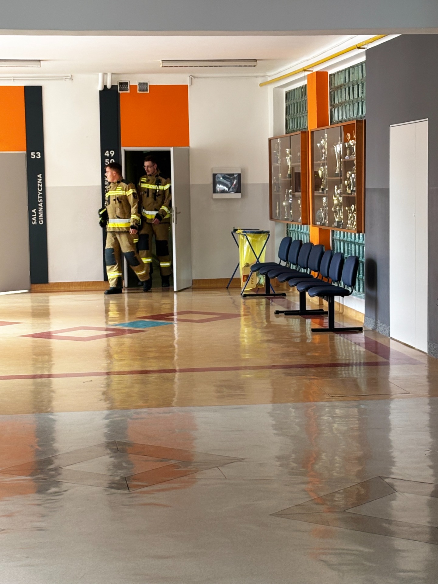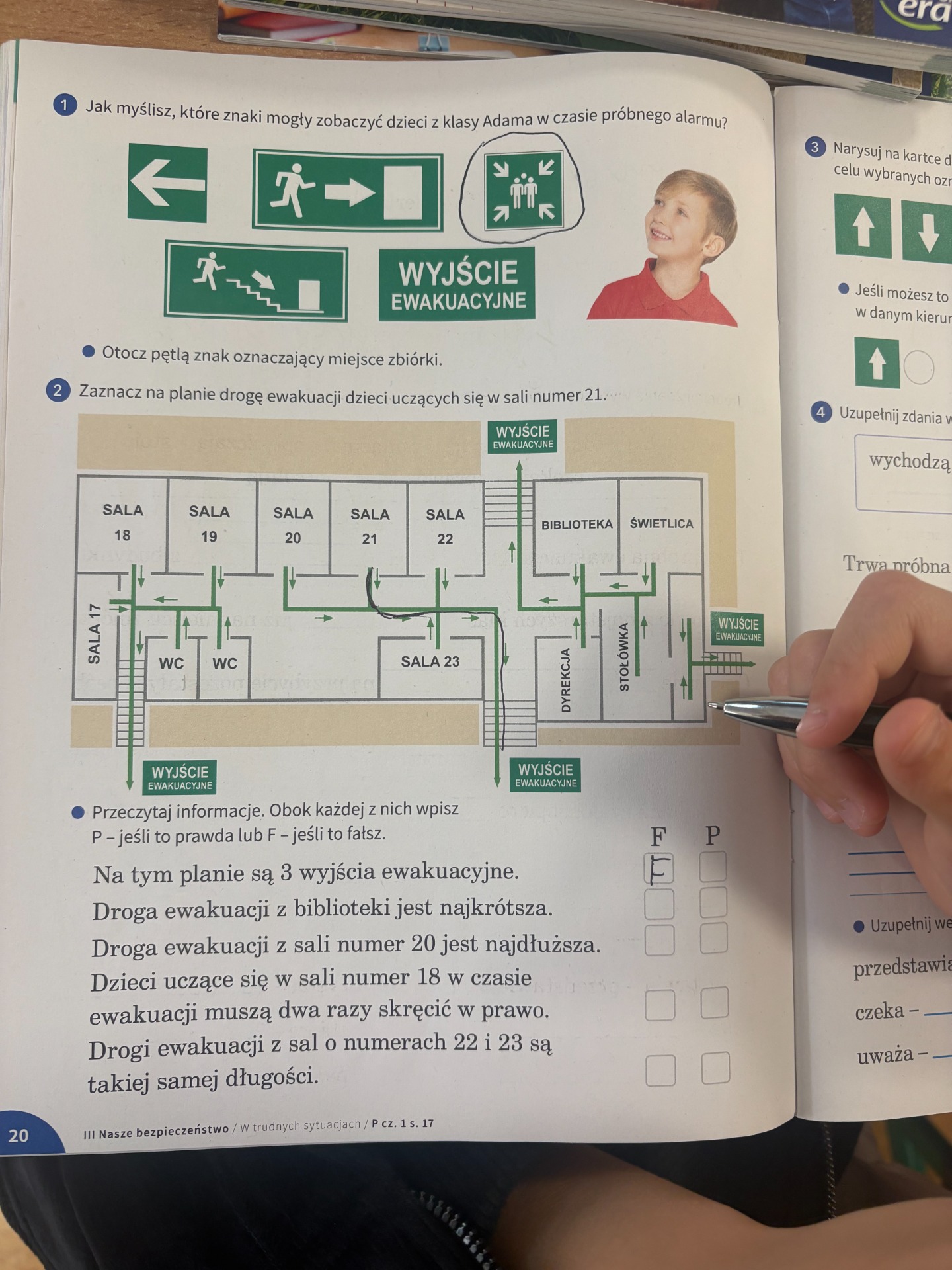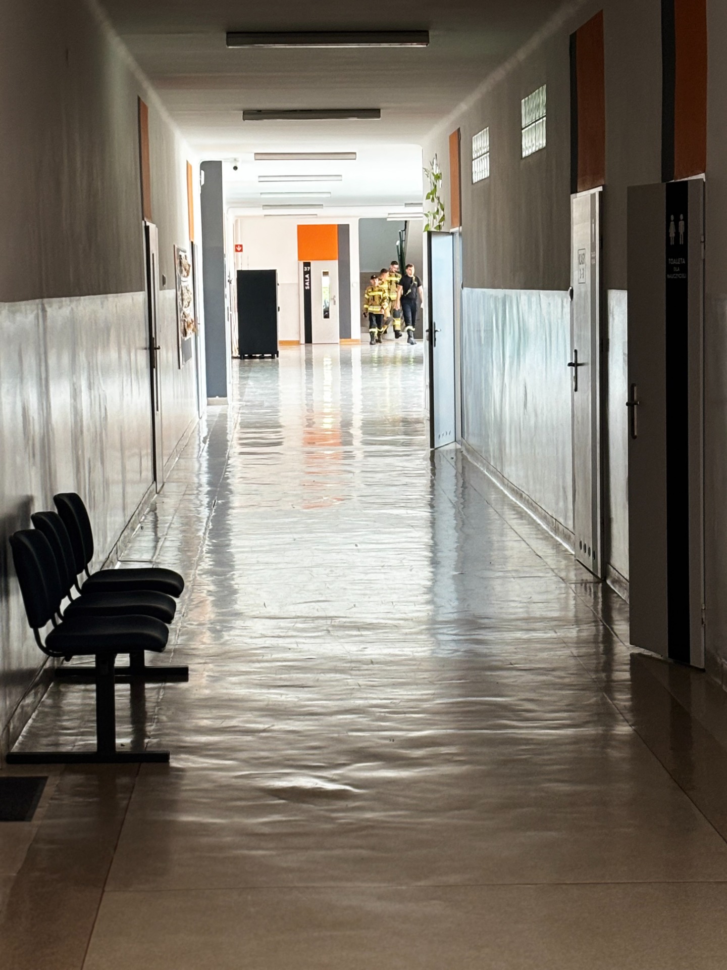 Pierwszy odcinek trasy, czyli wyjście z klasy, pokonany został w ekspresowym tempie. Każdy uczeń pamiętał, że w drodze do drzwi mają być równe szeregi, zero przepychania i krzyku paniki. W tak ważnej misji liczy się każda sekunda i opanowanie! Na korytarzach i schodach panował porządek. Uczniowie w rekordowym czasie dotarli do punktu zbiórki.