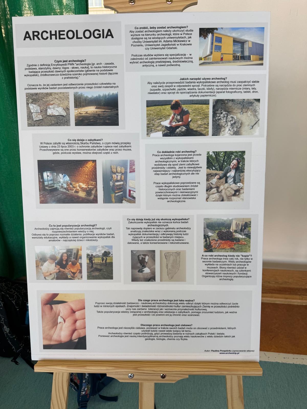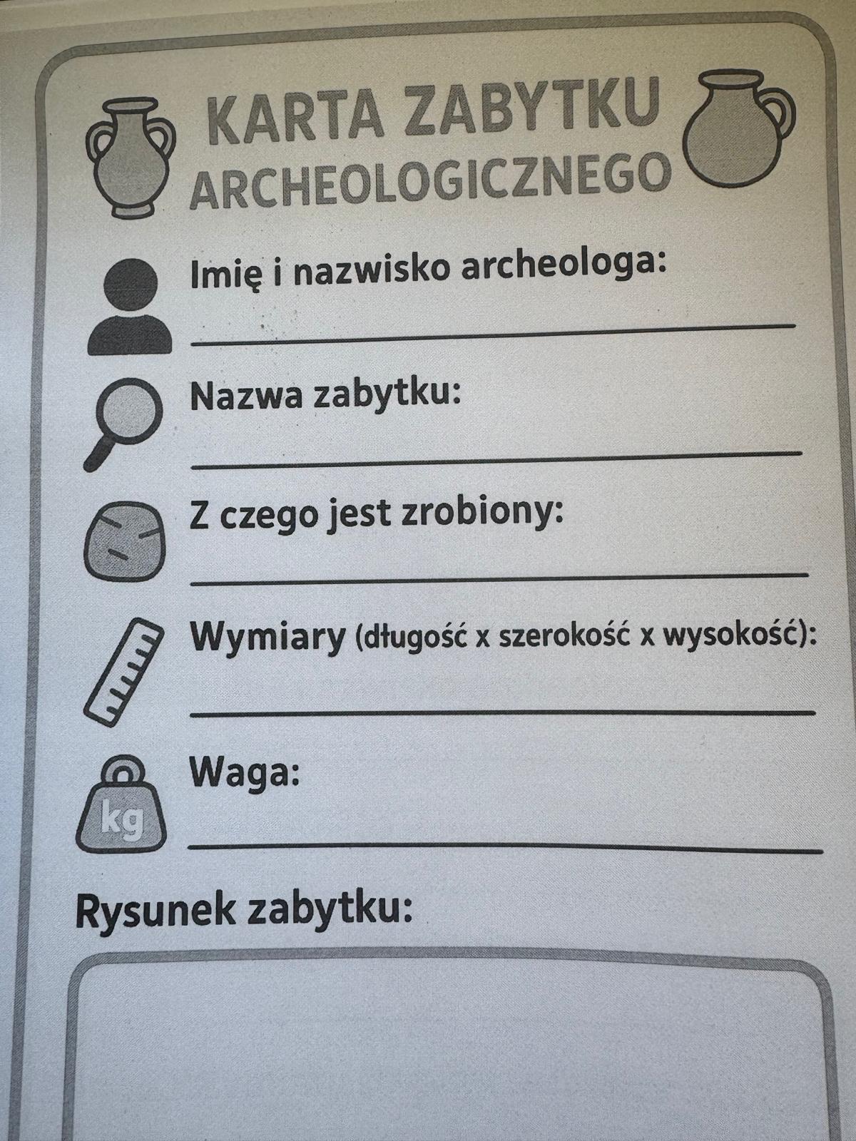 Każdy uczeń otrzymał bogato ilustrowaną książeczkę z opisami pracy archeologa, lokalnymi odkryciami, zadaniami, quizami i ćwiczeniami na pamiątkę i jako źródło wiedzy.