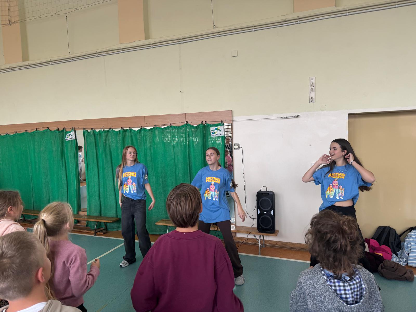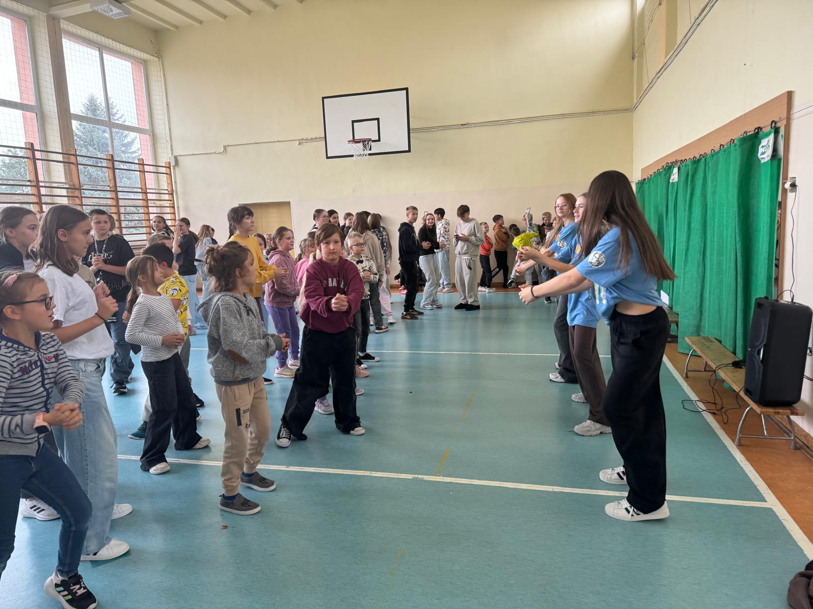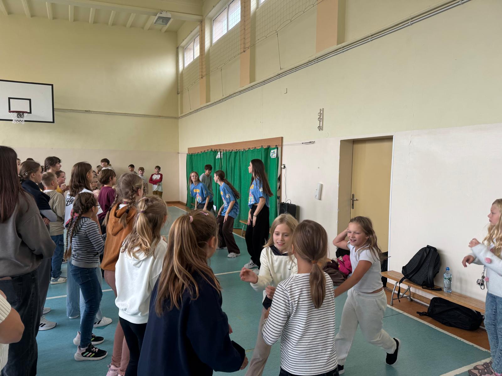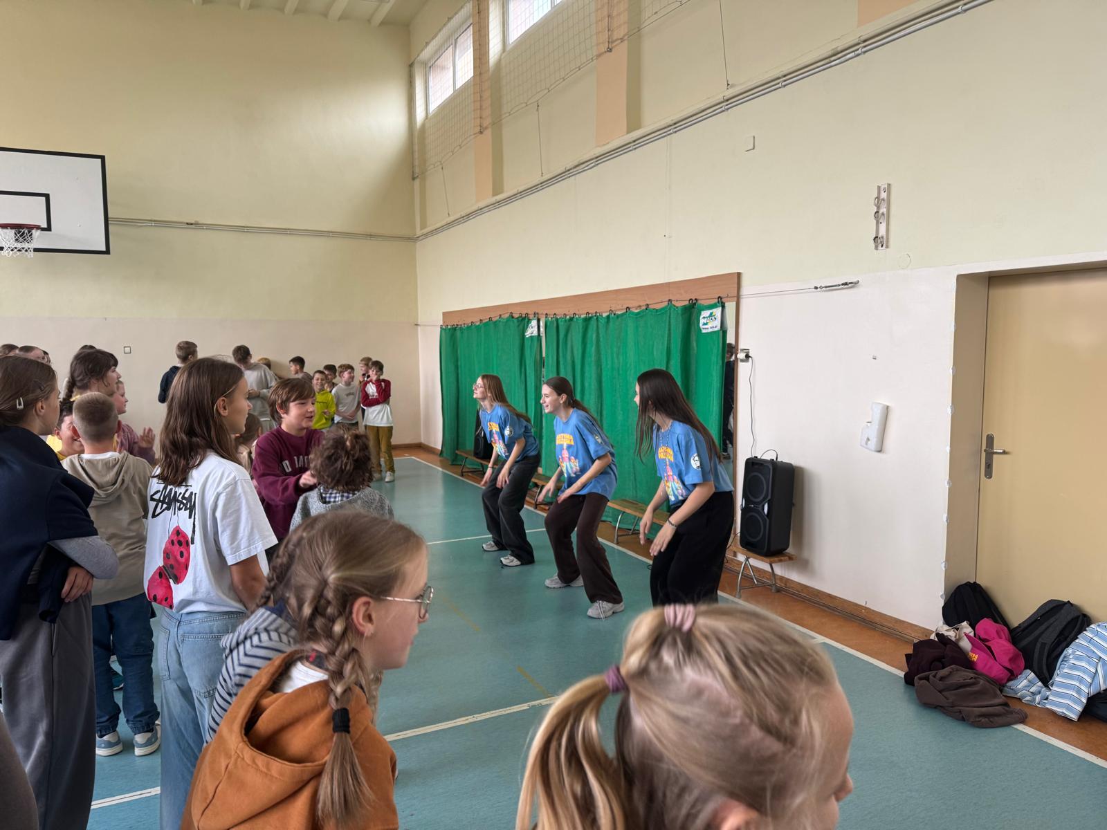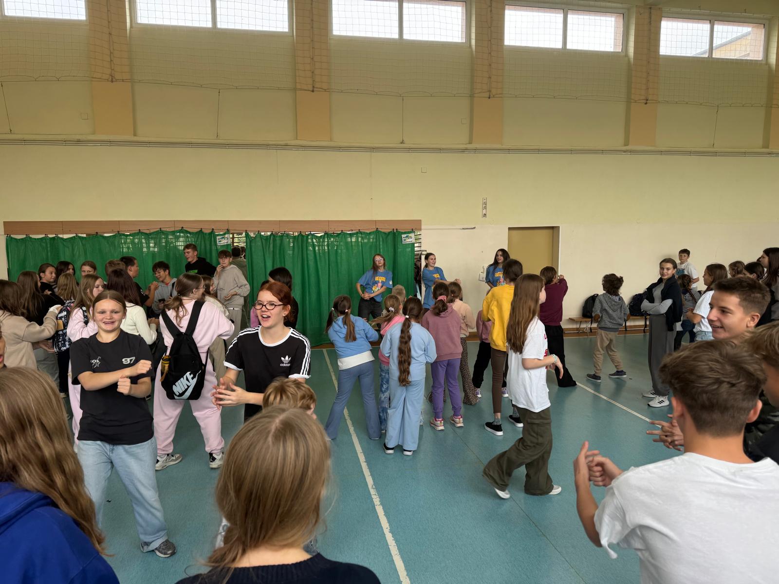 Dziś sala gimnastyczna zamieniła się w prawdziwy festiwal tańca, z domieszką kontrolowanego szaleństwa. A wszystko to za sprawą uczennic klasy 7A, które przygotowały układ taneczny godny TikToka (Oj! I to nie byle jakiego) oraz muzykę, która porwała tłumy.