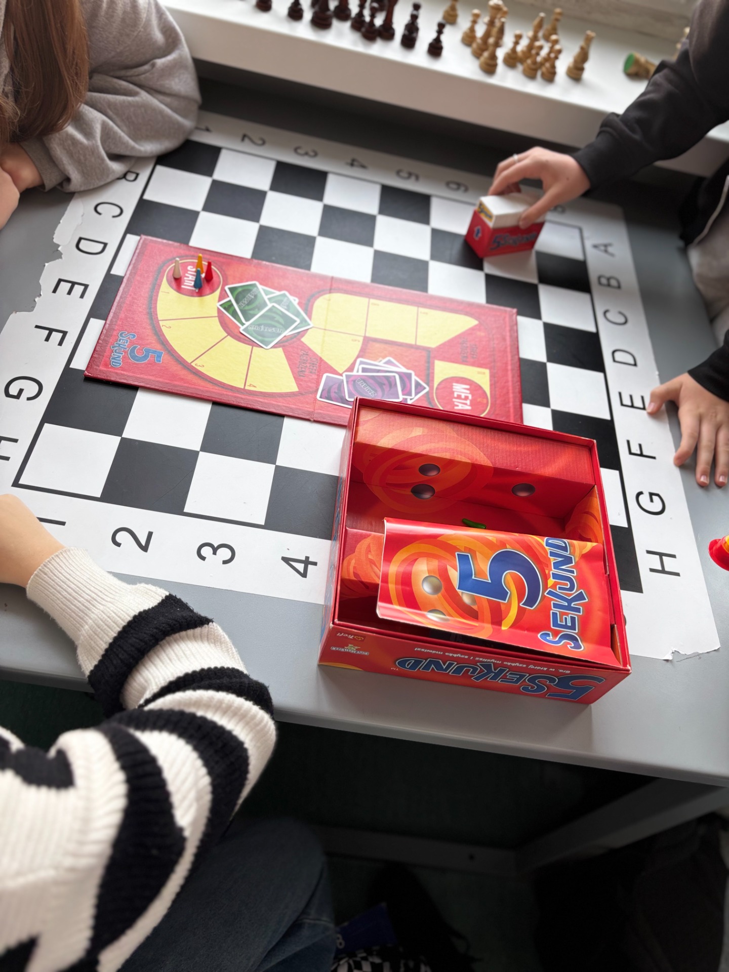 Wygląda na to, że planszówki są bardziej wciągające niż jakikolwiek szkolny dzwonek, bo od lekcji po przerwy – nikt nie mógł oderwać wzroku, a tym bardziej ręki, od kart, figurek i kostek.