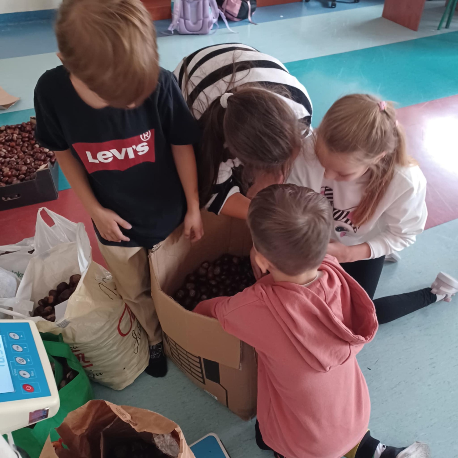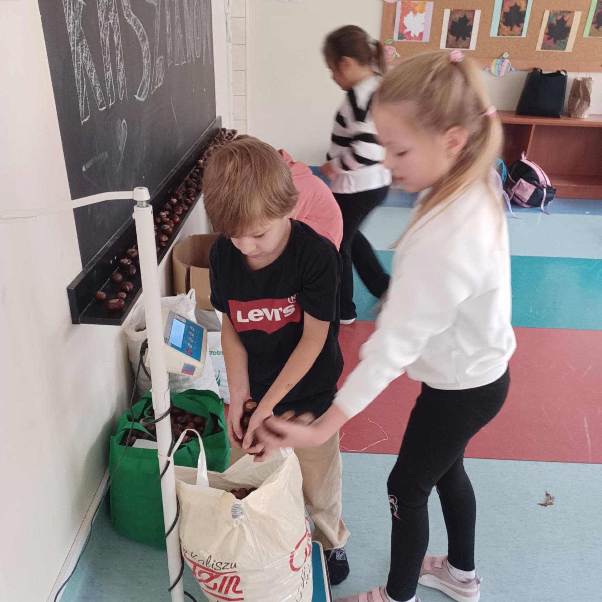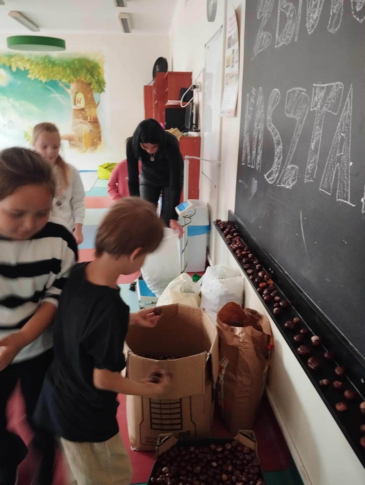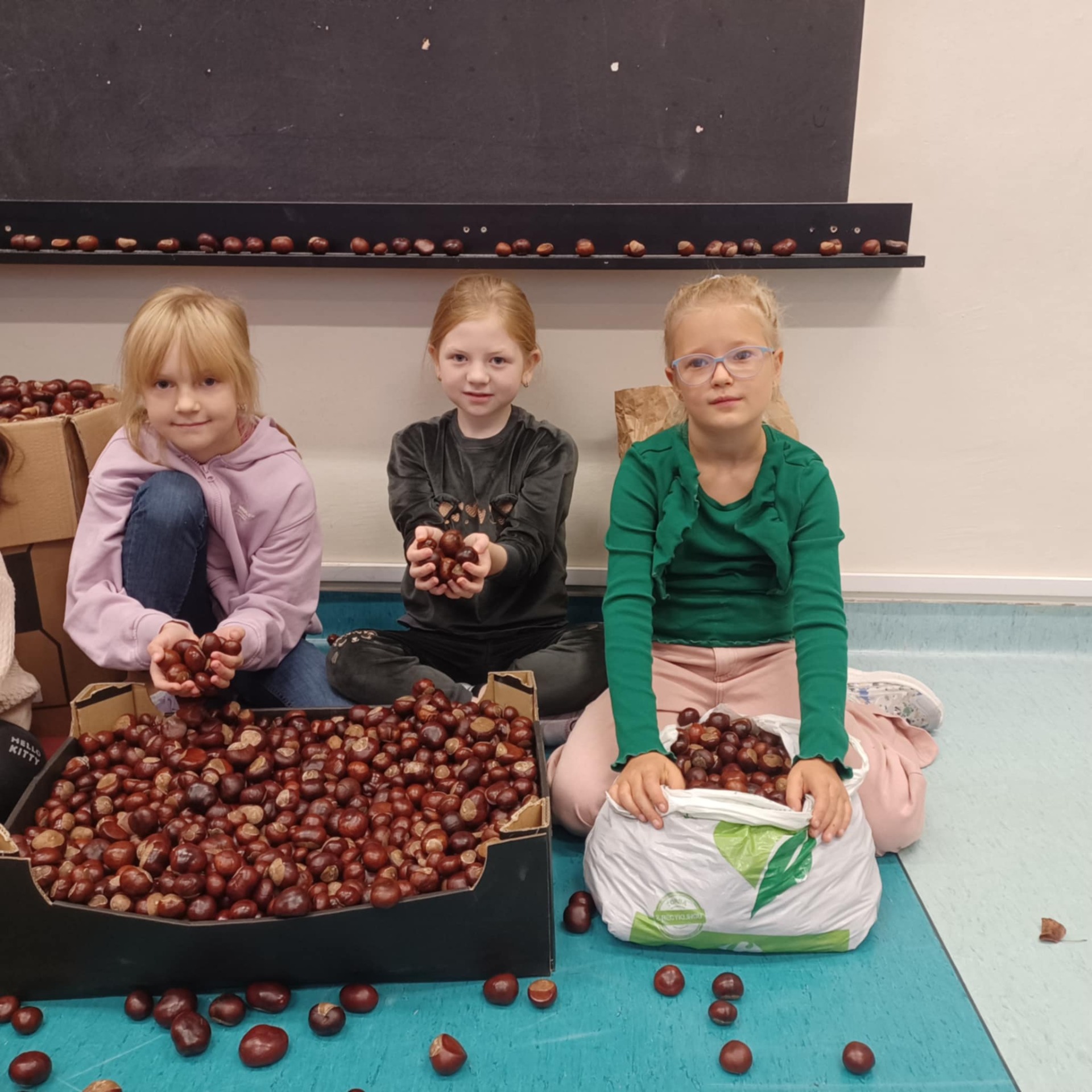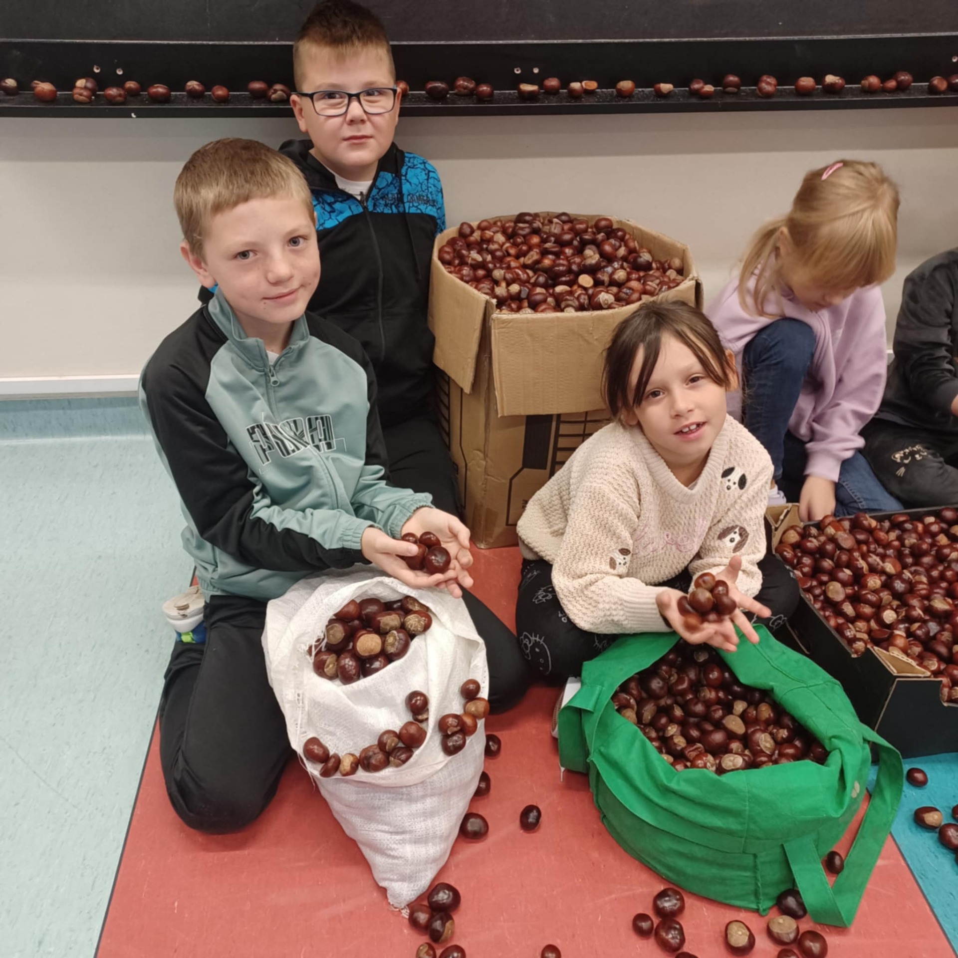 Dzieci ze świetlicy wspierane przez całe oddziały pomocnicze, czyli: rodziców, babcie, dziadków, ciocie i mistrzów leśnych łowów kasztanowych, uzbierały ponad 220 kilogramów kasztanów. Tak, dobrze czytacie - dwieście dwadzieścia kilo naturalnych, kolczastych skarbów. Żubry, pewnie te z Gołuchowa także, już pewnie trzęsą ogonami z radości i szykują się na jesienną ucztę z gwiazdką Michelin.