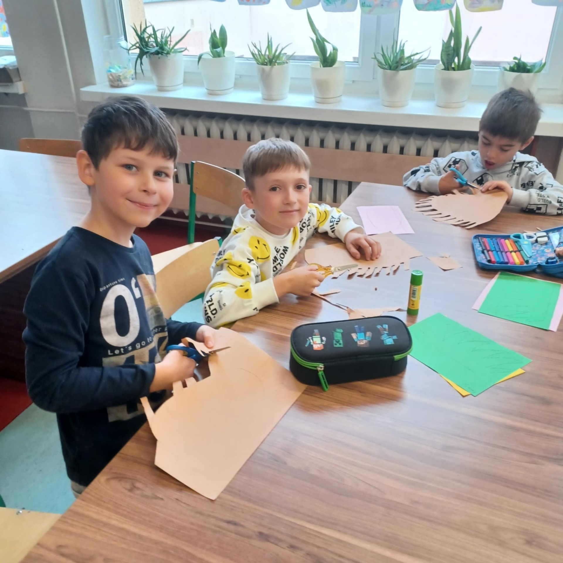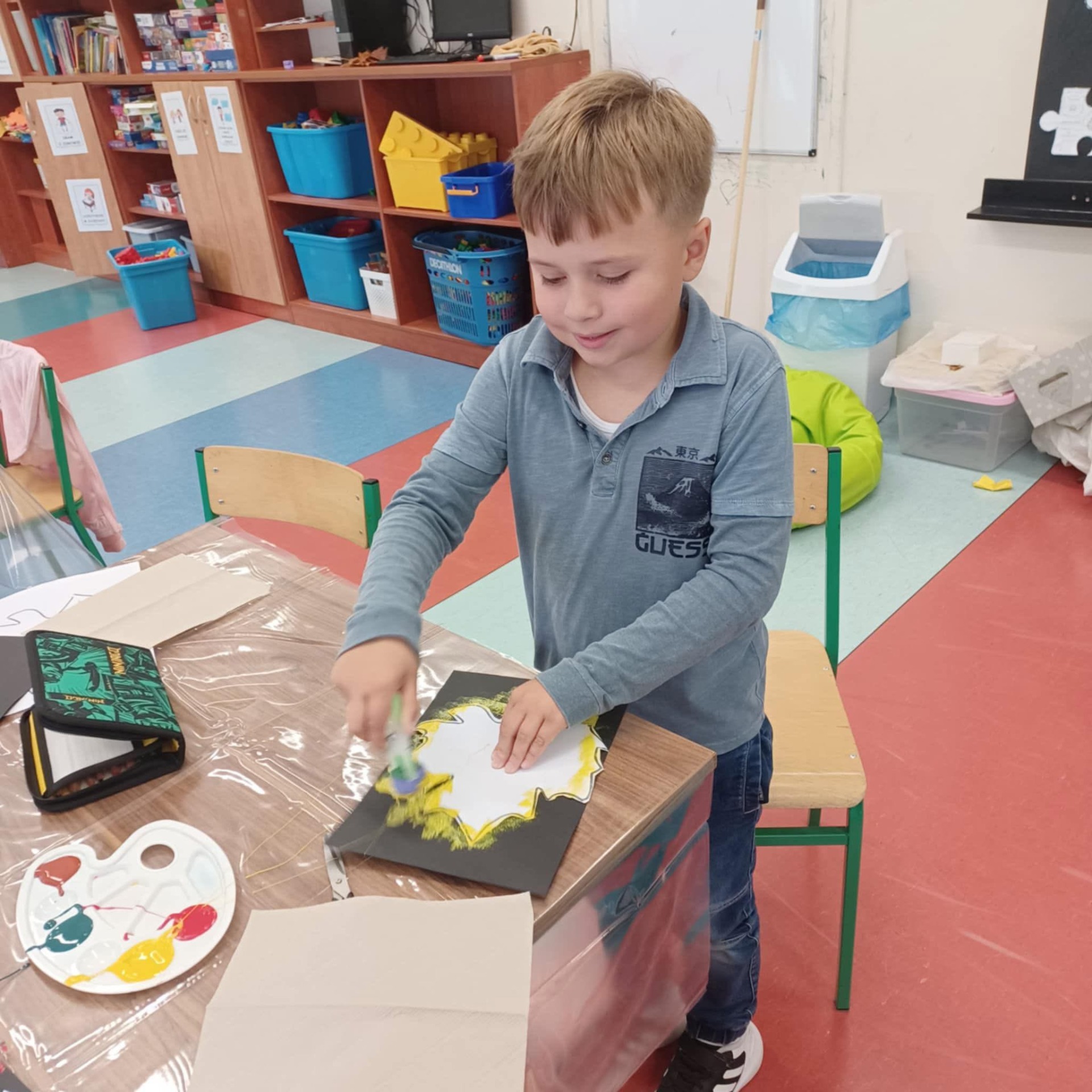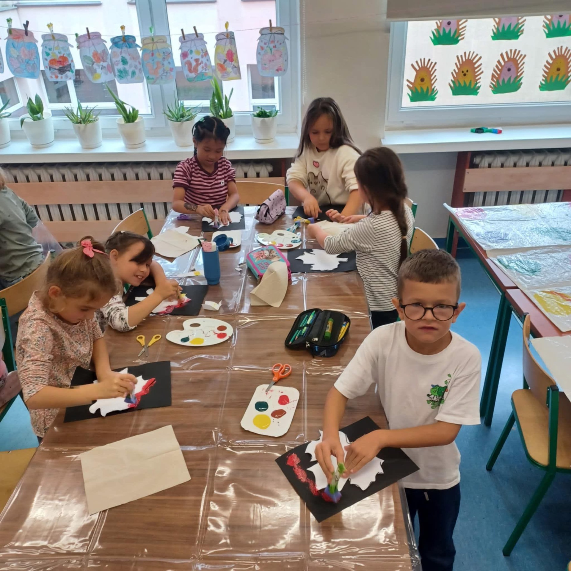 Dzieci z naszej świetlicy powitały tę złotą porę roku z artystycznym rozmachem. Na stołach pojawiły się liście w odcieniach czerwieni, pomarańczy, złota i brązu, jakby sama jesień rozsypała paletę barw prosto z koron drzew.