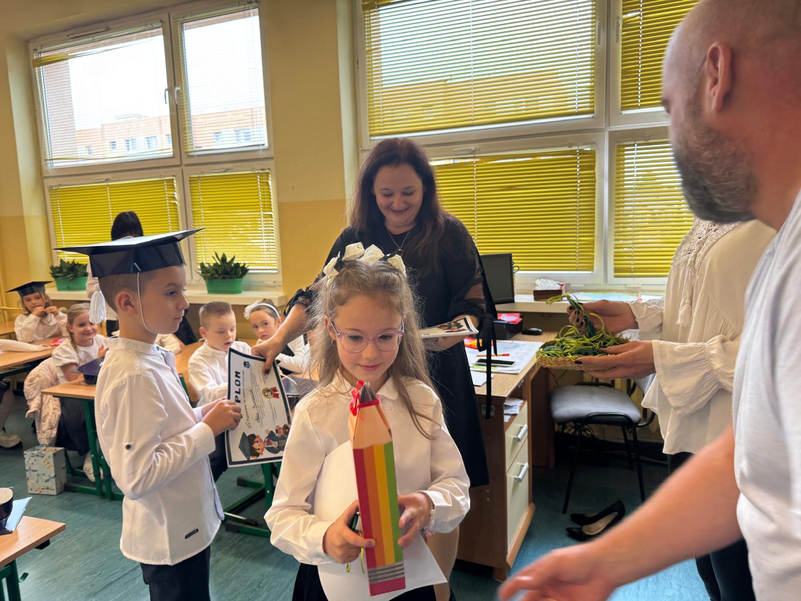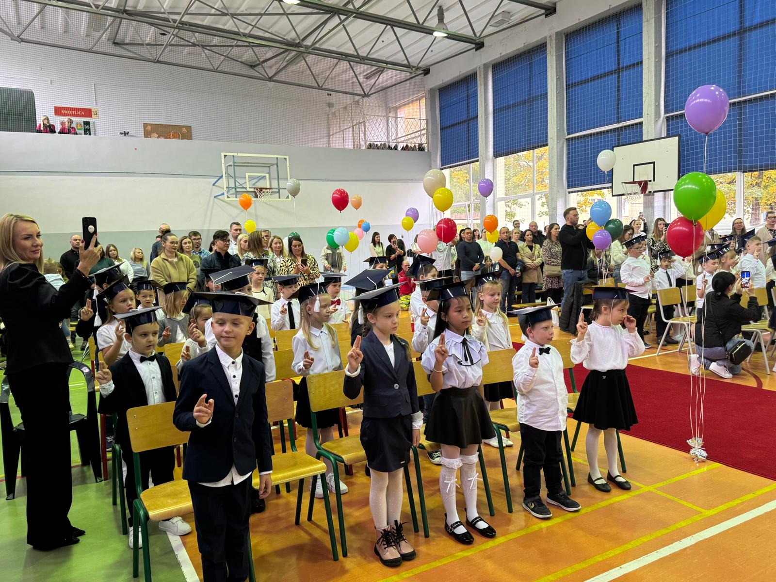Popatrzcie na nich. Dumnie, z tą uroczą powagą i nieokiełznaną radością w oczach, kroczyli po czerwonym dywanie. Ich głosy, choć jeszcze nieśmiałe, rozbrzmiewały siłą serca podczas recytacji i śpiewu. Pokazały nam, jak wiele już potrafią i jak bardzo są gotowe, by zanurzyć się w głębiny szkolnej wspólnoty. To był pokaz dziecięcej odwagi, mądrości i piękna.