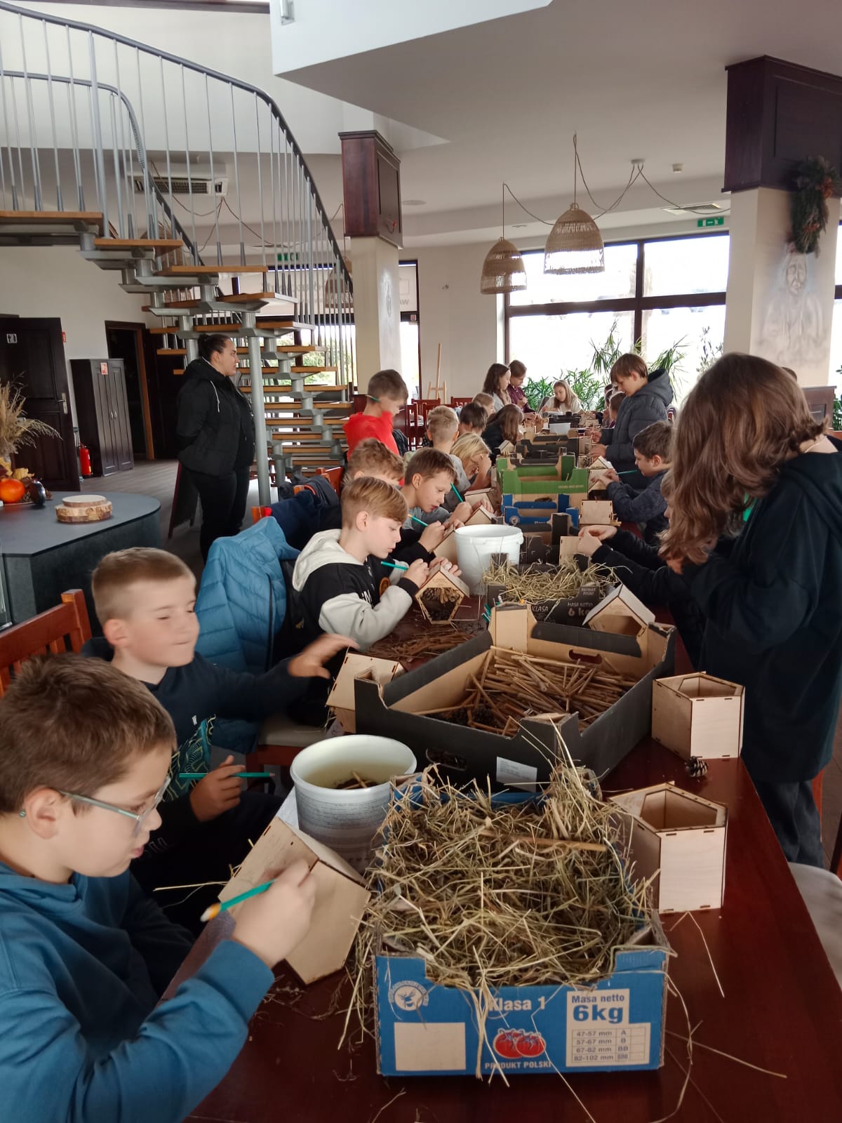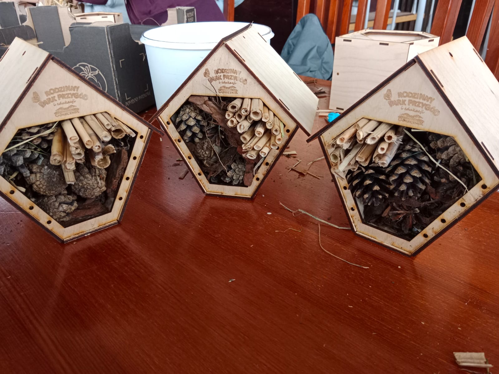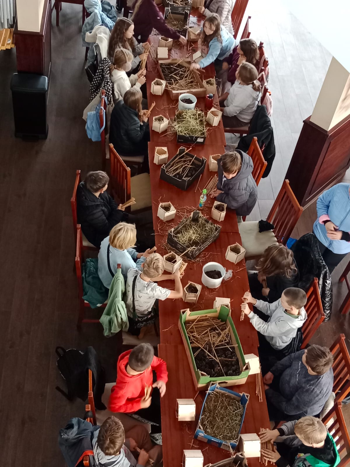 Uczniowie z zapałem zabrali się do pracy. Powstały luksusowe apartamenty z patyczków, szyszek i kory, a nawet suites z widokiem na łąkę i spa z mchu. Niektórzy projektowali tarasy dla motyli, inni windę dla mrówek. Każdy owad mógłby pozazdrościć takich warunków bo to taki prawdziwy Owadowy Hilton.