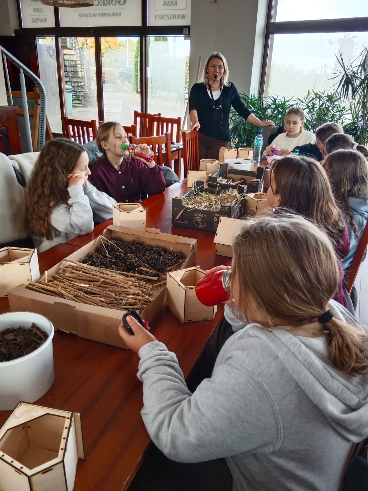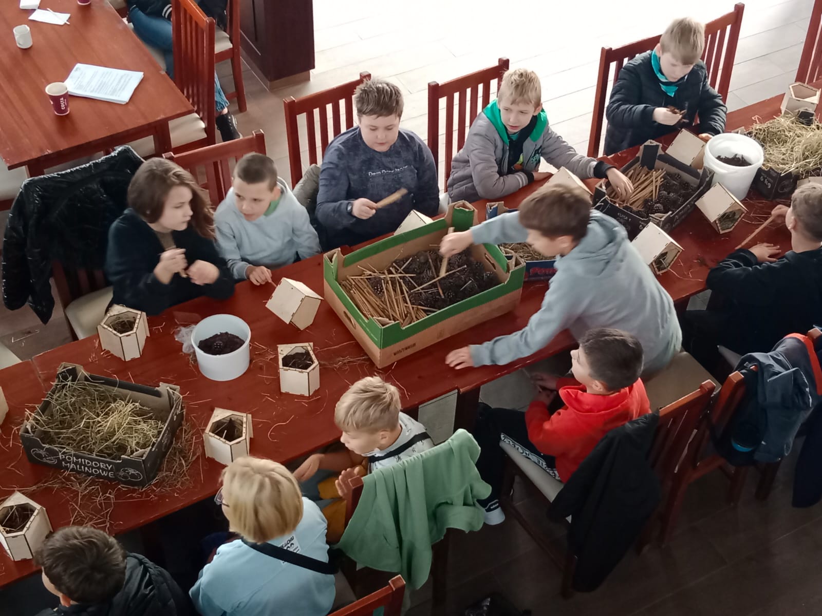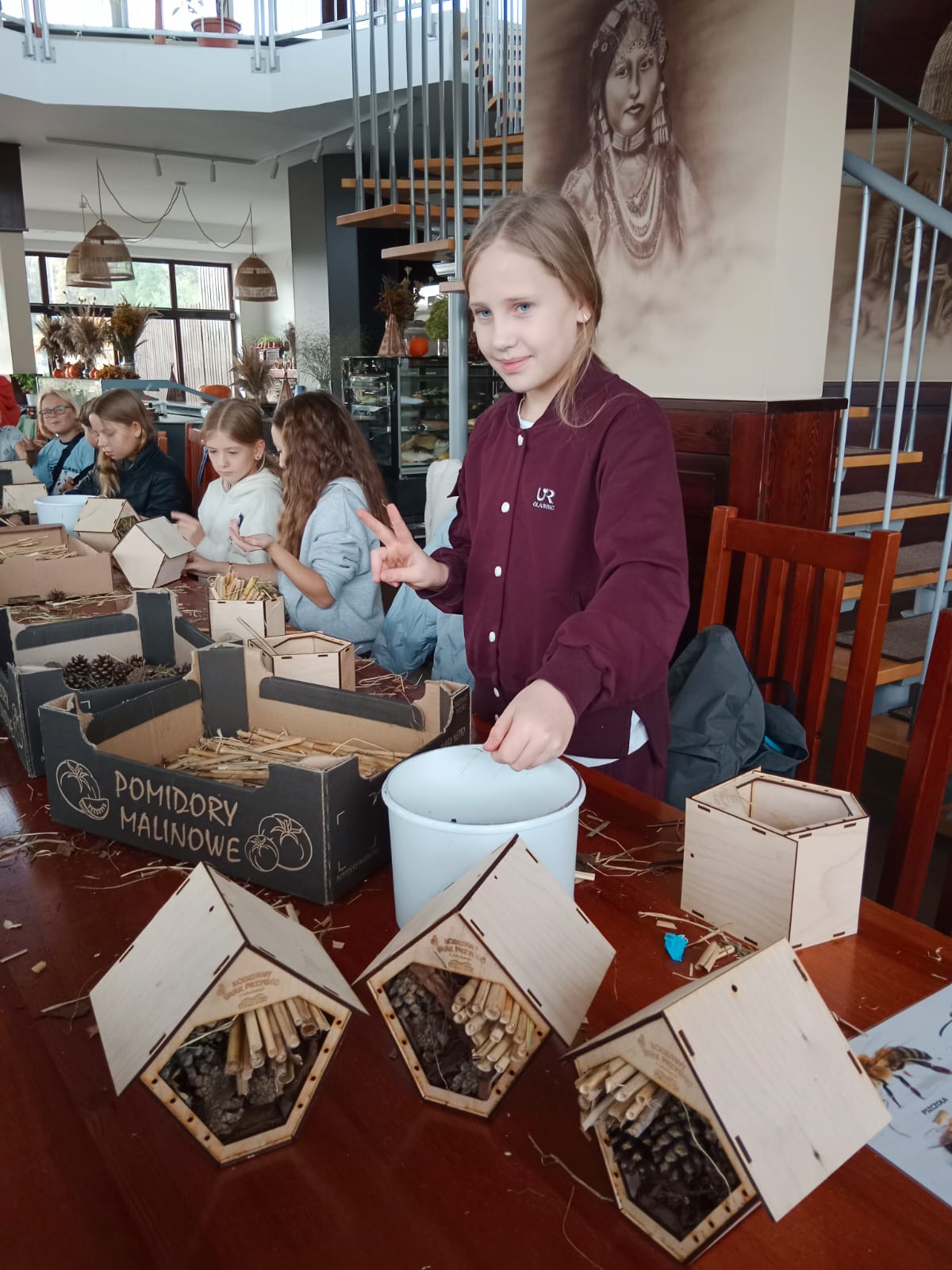 Uczniowie z zapałem zabrali się do pracy. Powstały luksusowe apartamenty z patyczków, szyszek i kory, a nawet suites z widokiem na łąkę i spa z mchu. Niektórzy projektowali tarasy dla motyli, inni windę dla mrówek. Każdy owad mógłby pozazdrościć takich warunków bo to taki prawdziwy Owadowy Hilton.