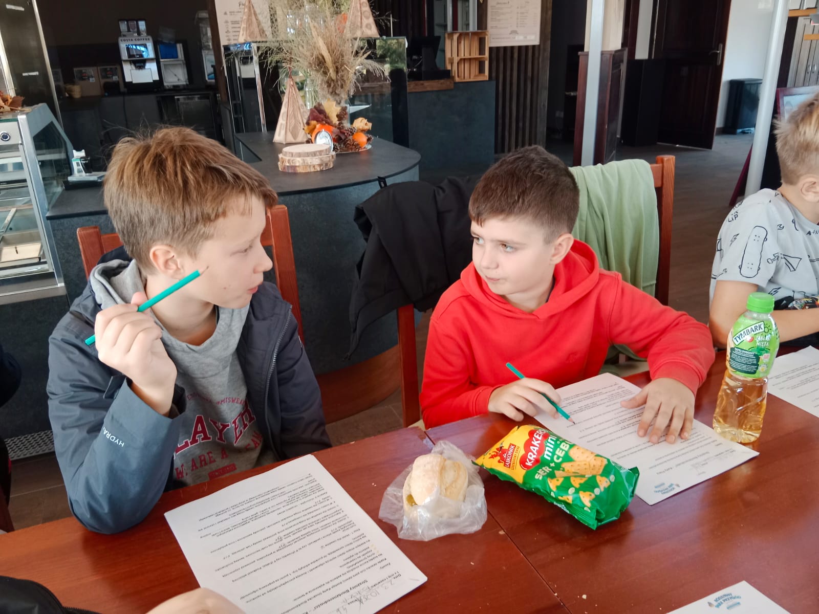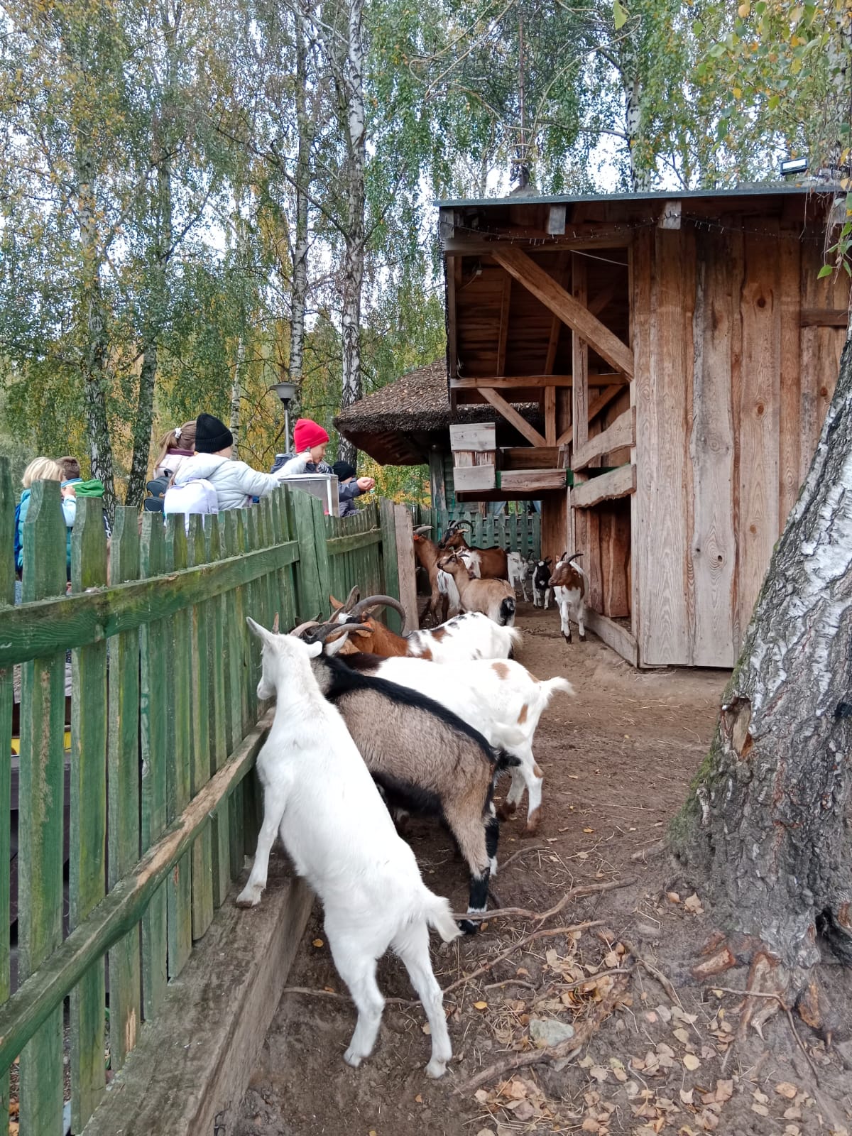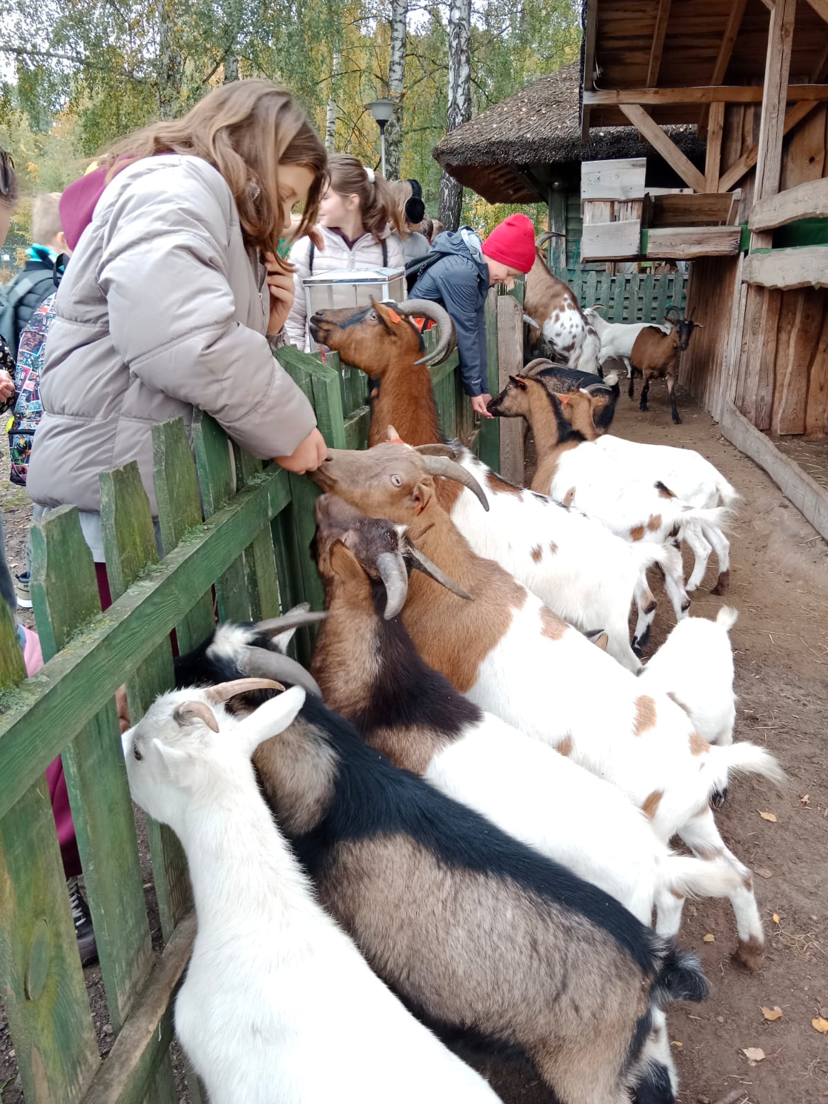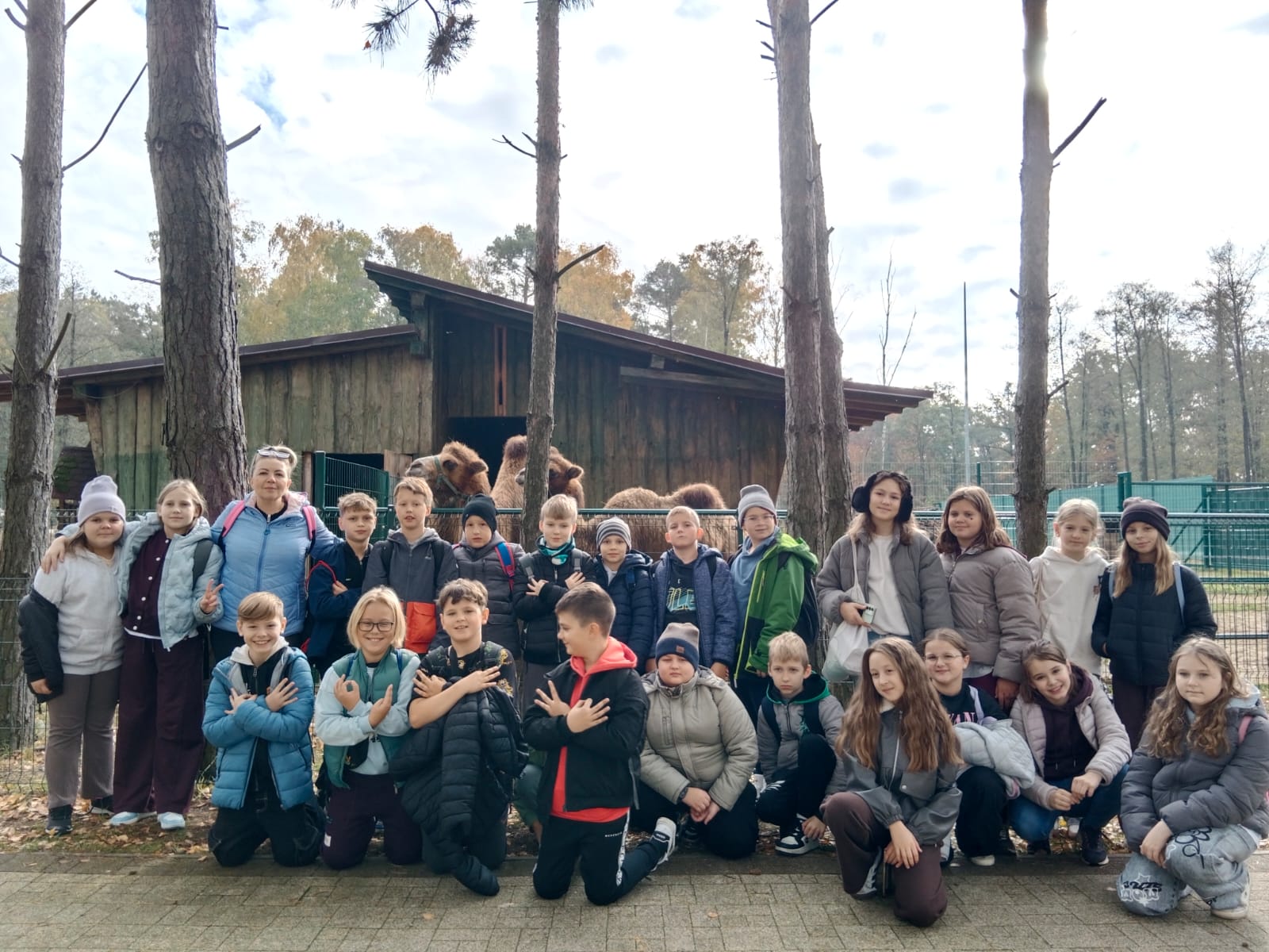 Gdy hotele były gotowe, klasa ruszyła zwiedzać mini zoo. Tam czekała futrzasta ekipa w pełnym składzie: wielbłądy dumnie prezentowały garby w wersji premium, alpaki rozdawały uśmiechy w pakiecie z miękkim futerkiem, a kózki udowadniały, że jedzenie to ich ulubiony sport.
