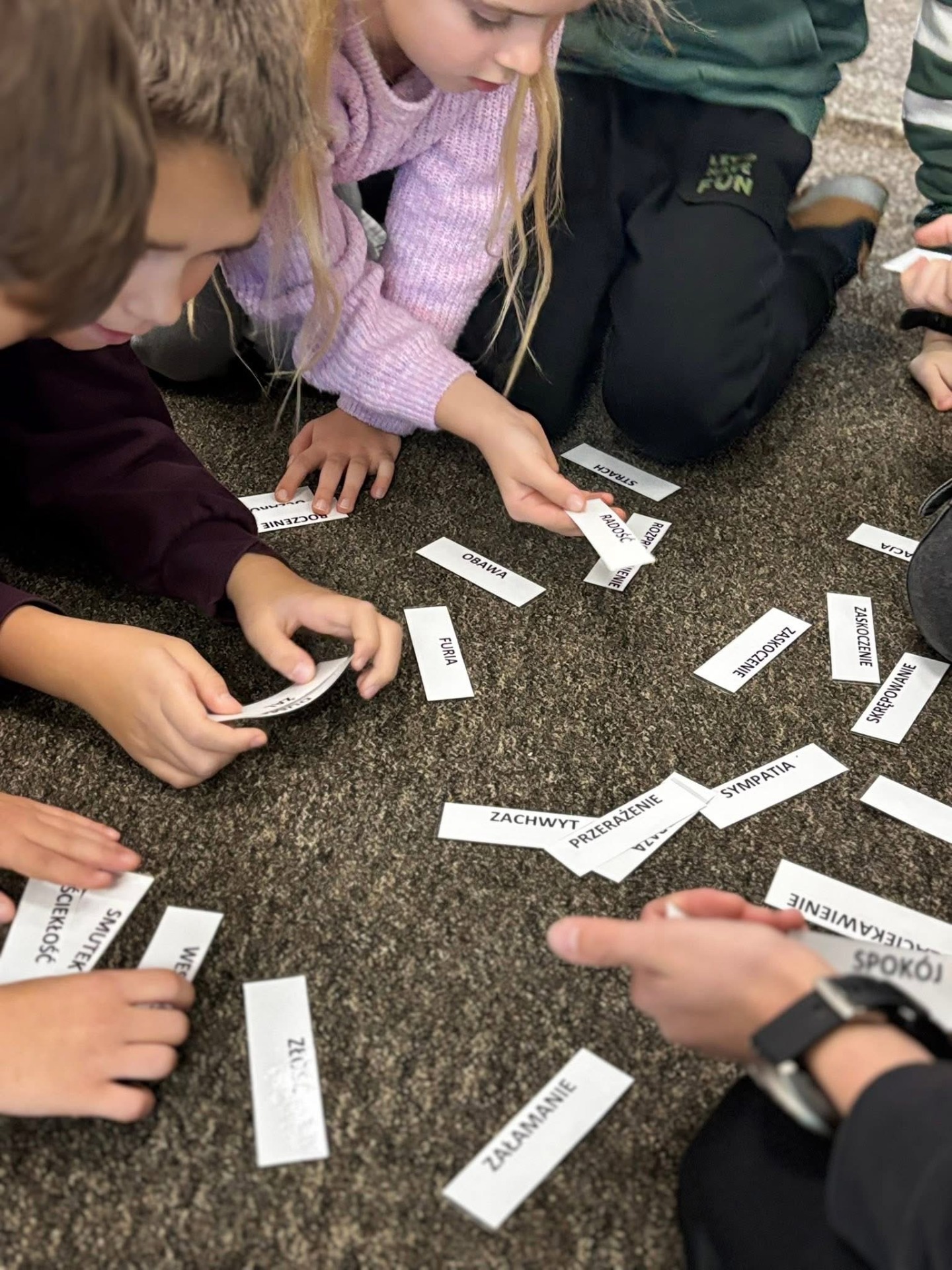 Kiedy teleturniej z kołem w nazwie dobiegł końca, nastąpiła praca w drużynach, czyli sortowanie uczuć na pozytywne i negatywne. To zadanie okazało się trudniejsze niż wyszukanie książki w katalogu alfabetycznym! Emocje znalazły swoje miejsce, a uczniowie usiedli w kąciku z żyrafą, by w ciszy zagłębić się w wybraną przez siebie książkę. Choć byli i tacy, którzy udali się do kącika z… zabawkami i książeczkami dla najmłodszych. Być może chcieli jeszcze raz mieć dwa latka i siedząc obok mamy czy taty, wsłuchiwać się w czytane im baśnie Andersena albo braci Grimm.
