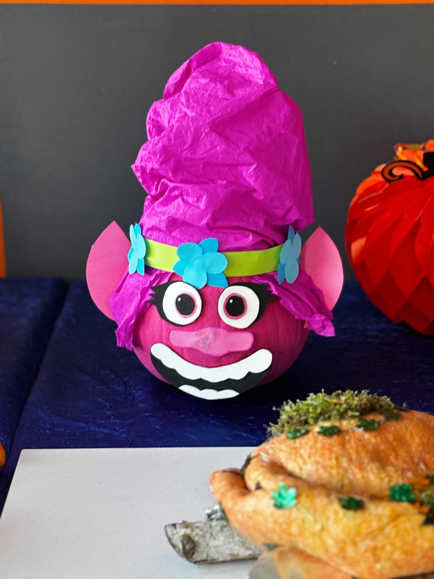 Księżniczka Poppy Trolls z bujną fryzurą, która z dumą reprezentowała różową moc.