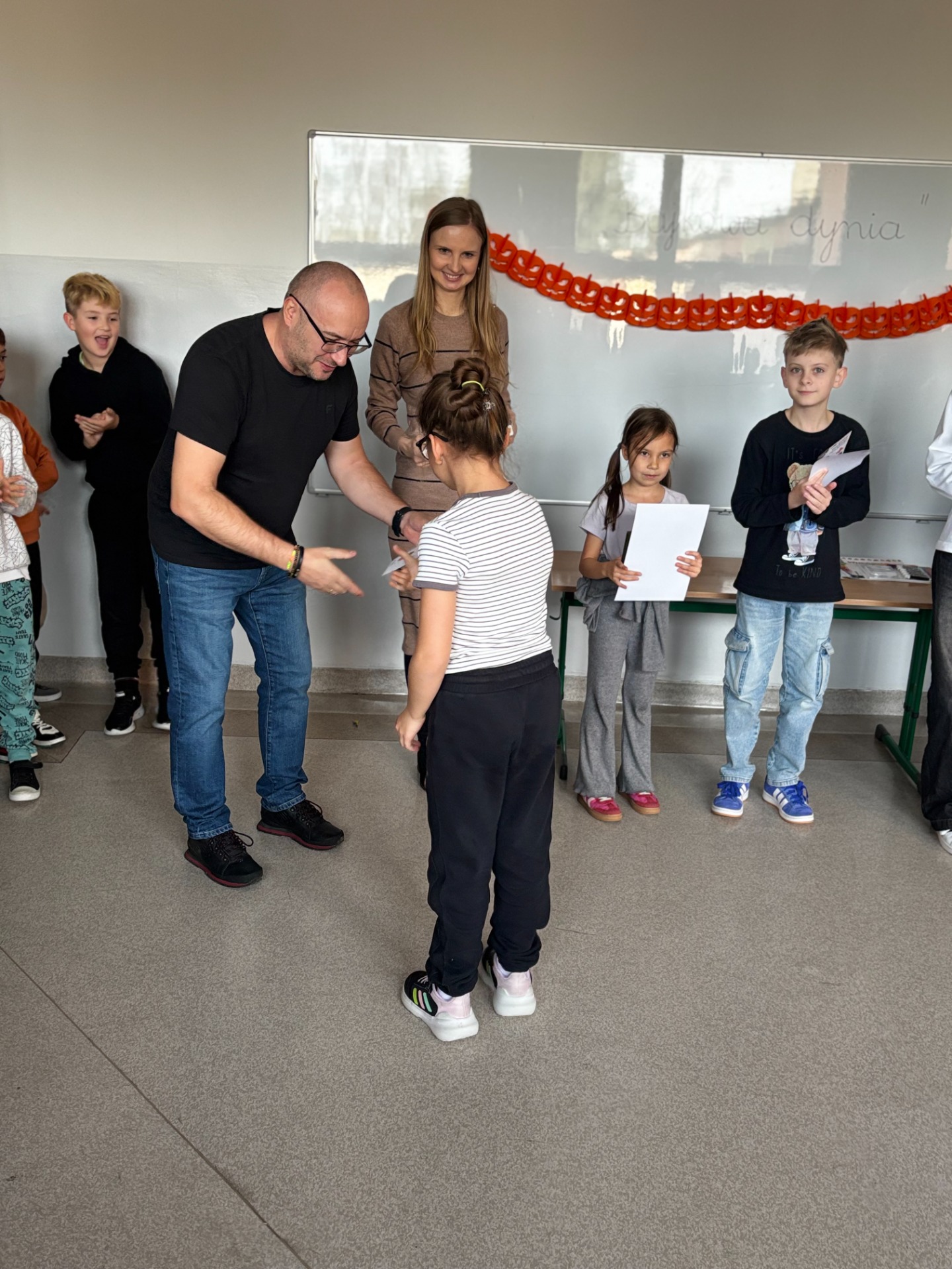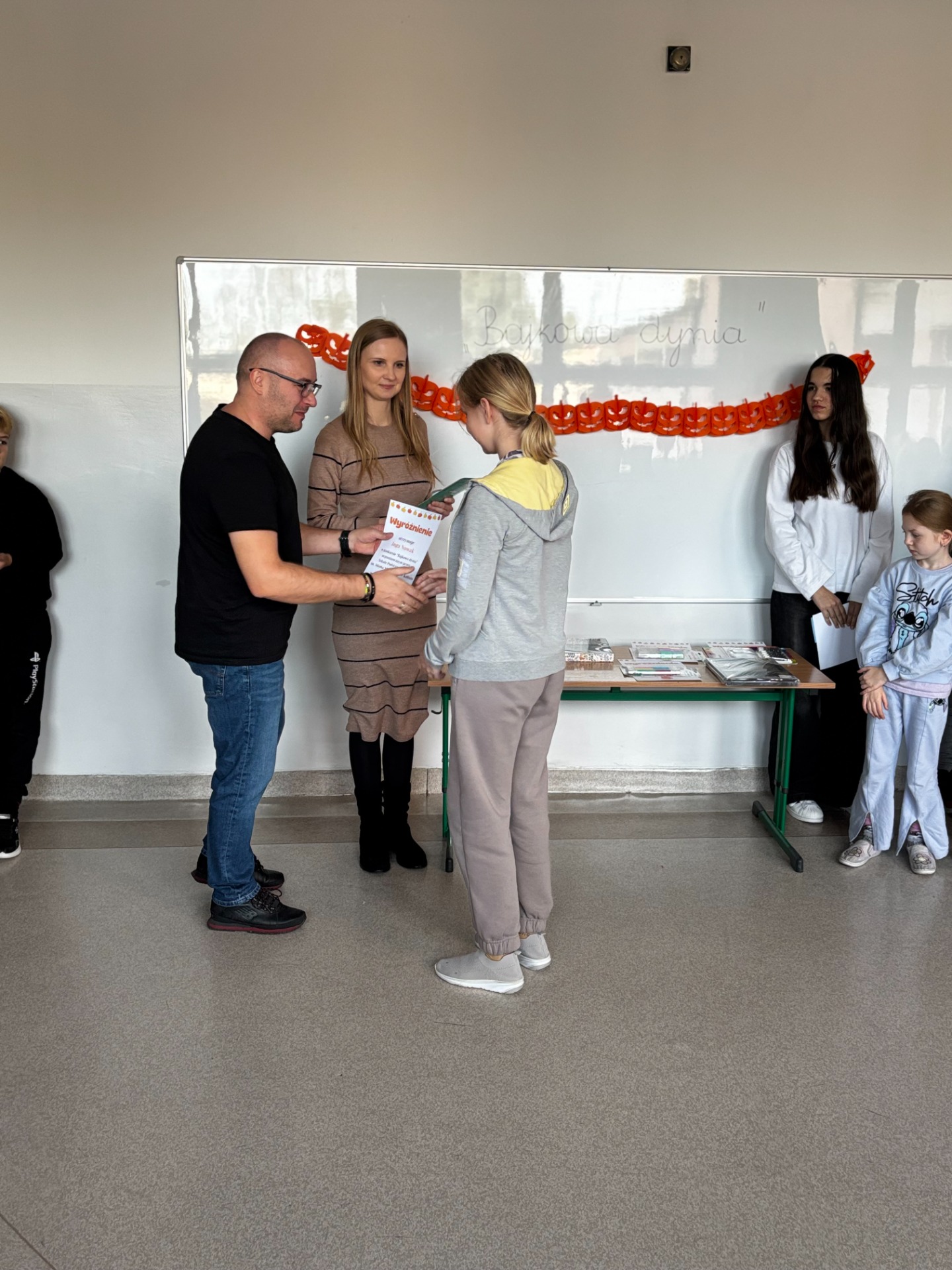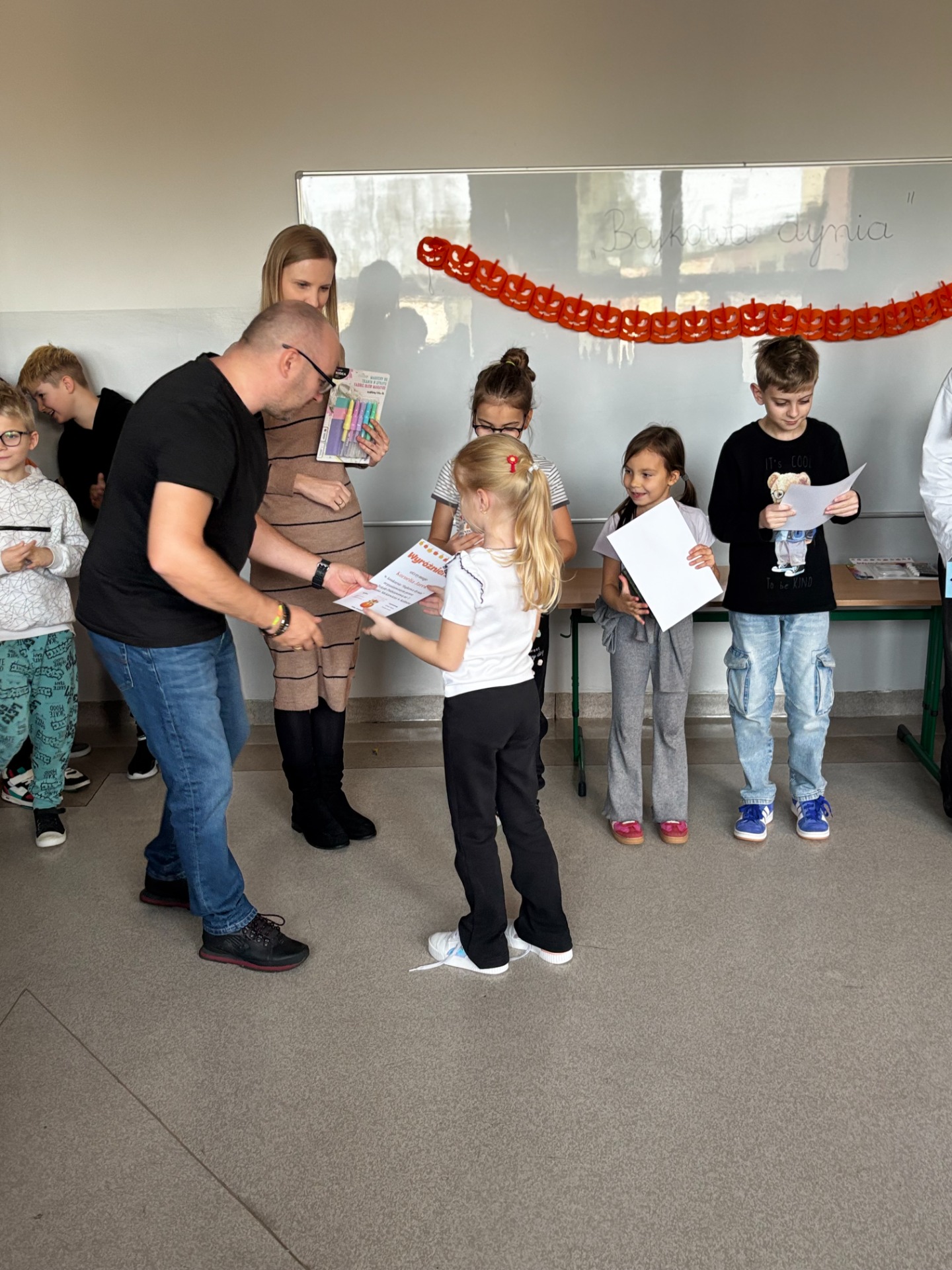 Organizatorzy konkursu pani Jadwiga Wojtyś i pani Paulina Łuczak wręczyły nagrody uczniom, których prace zostały wyróżnione. Laureatami konkursu zostali: Aniela Dziadkiewicz, Katarzyna Antosiak, Wojciech Raczyk, Kornelia Jarek, Maja Marczak, Marcel Lider, Marcel Kamańczyk i Inga Nowak. Nagrody ufundowała Rada Rodziców.