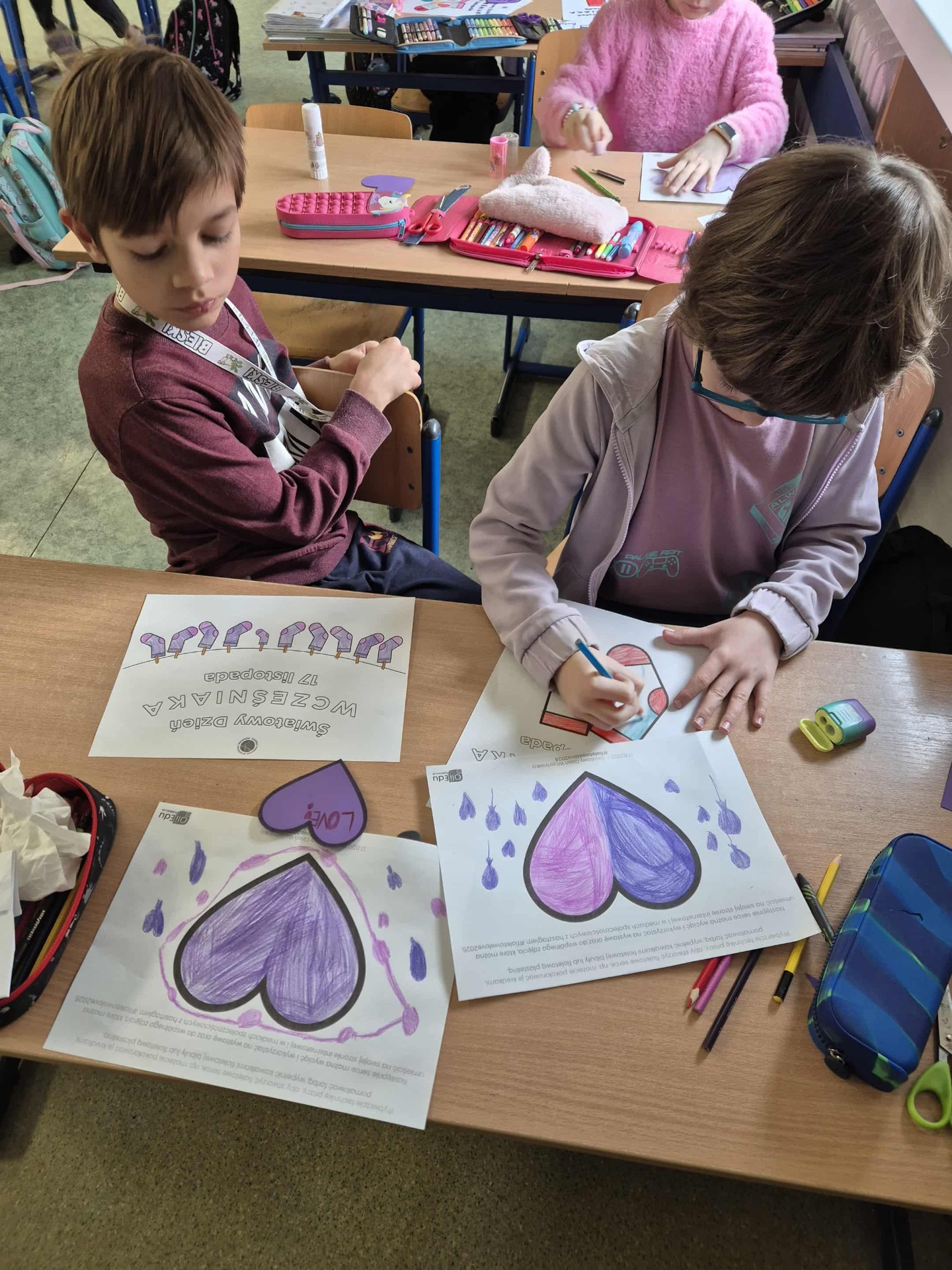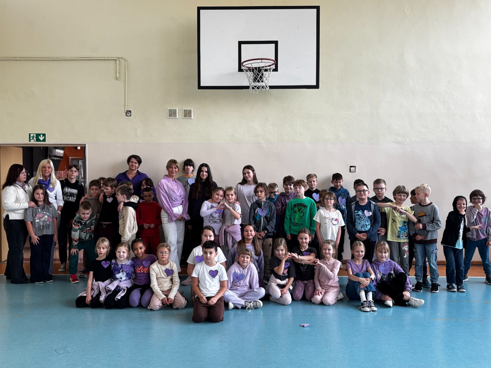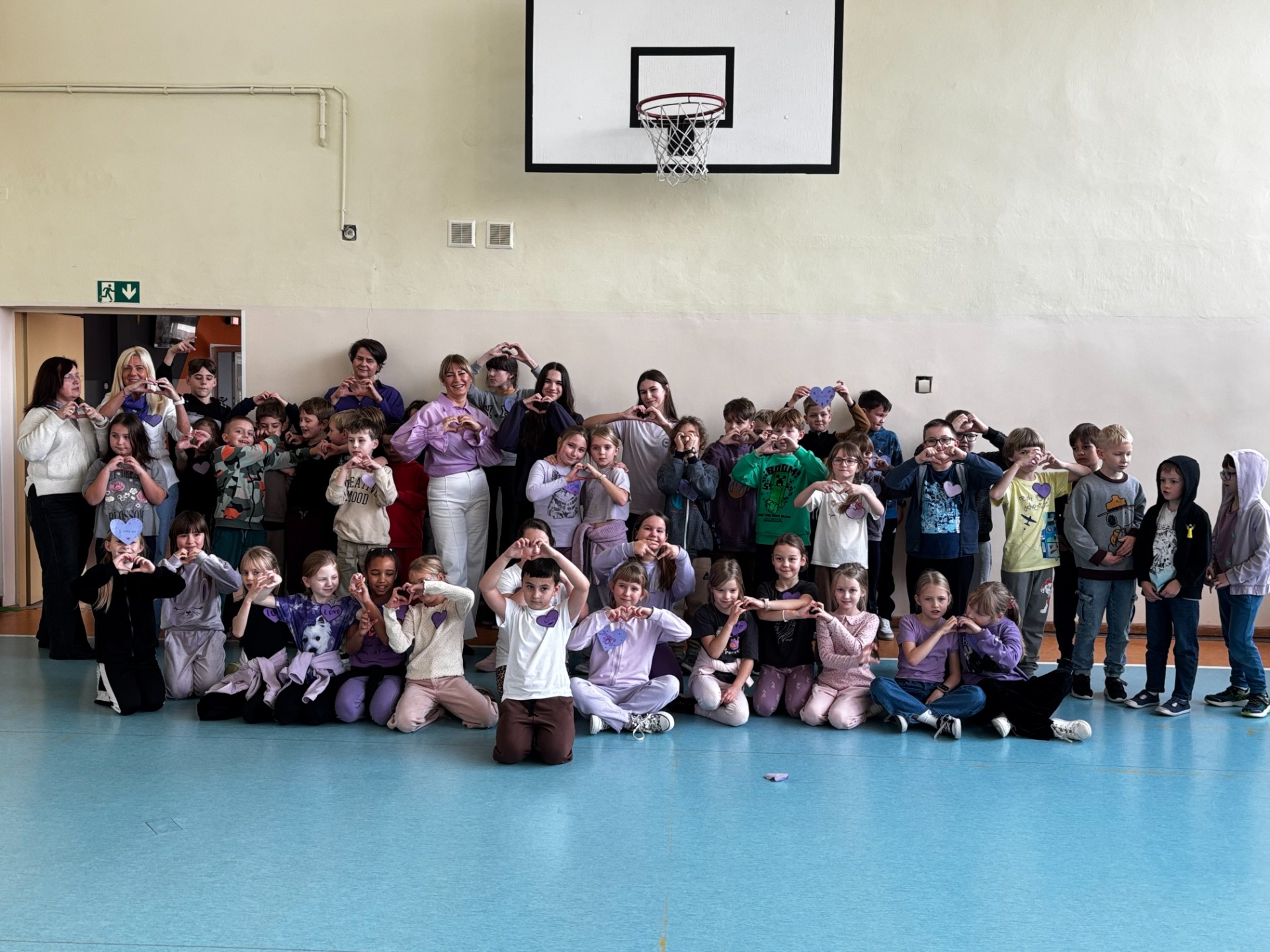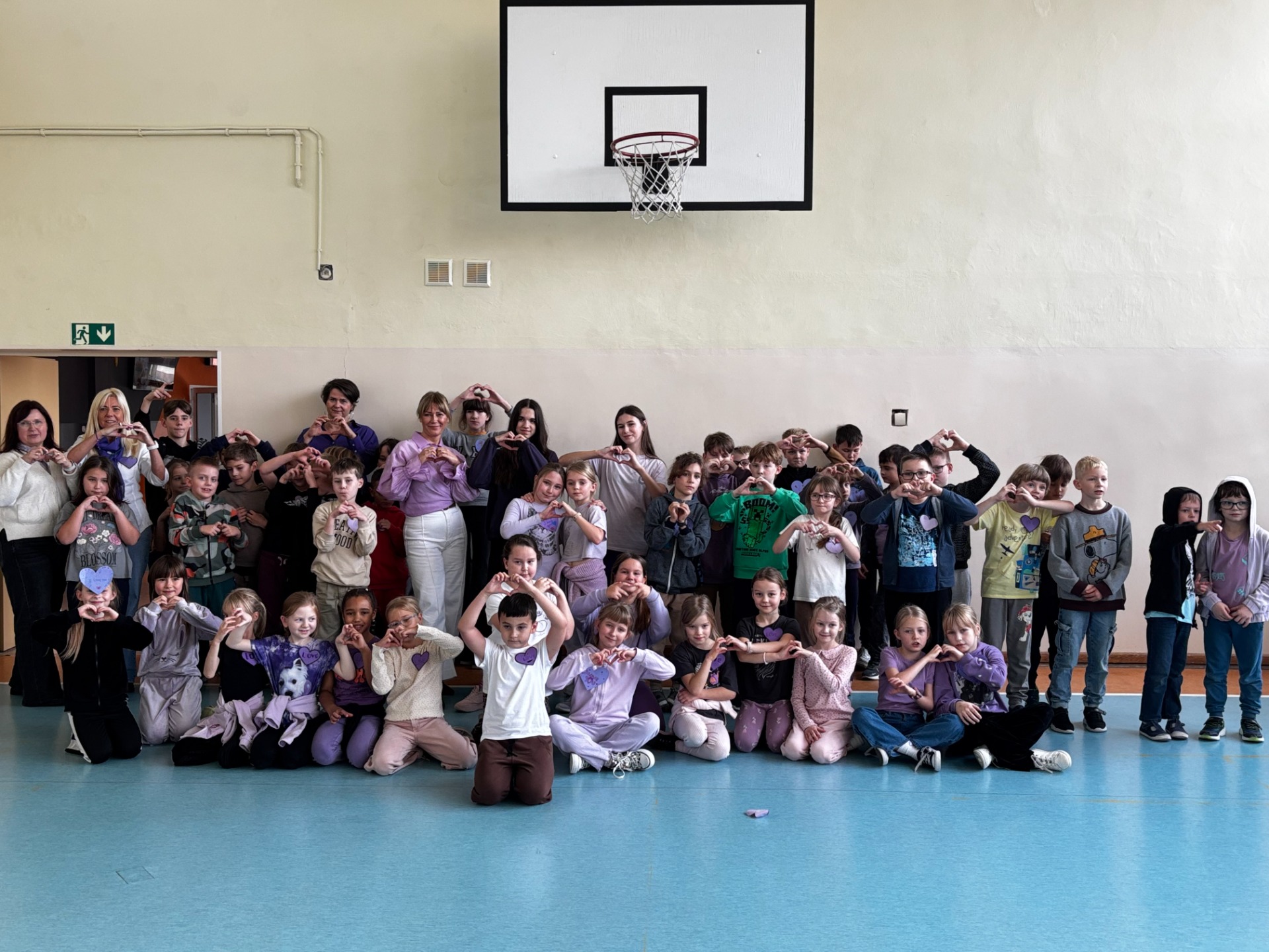 Uczniowie i nauczyciele samodzielnie wykonali piękne, fioletowe serca, które stały się symbolicznym wyrazem miłości i empatii. Przypięli je do koszulek i dumnie nosili przez cały dzień.