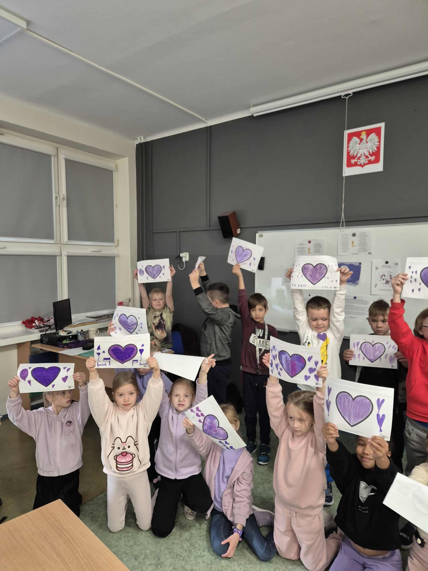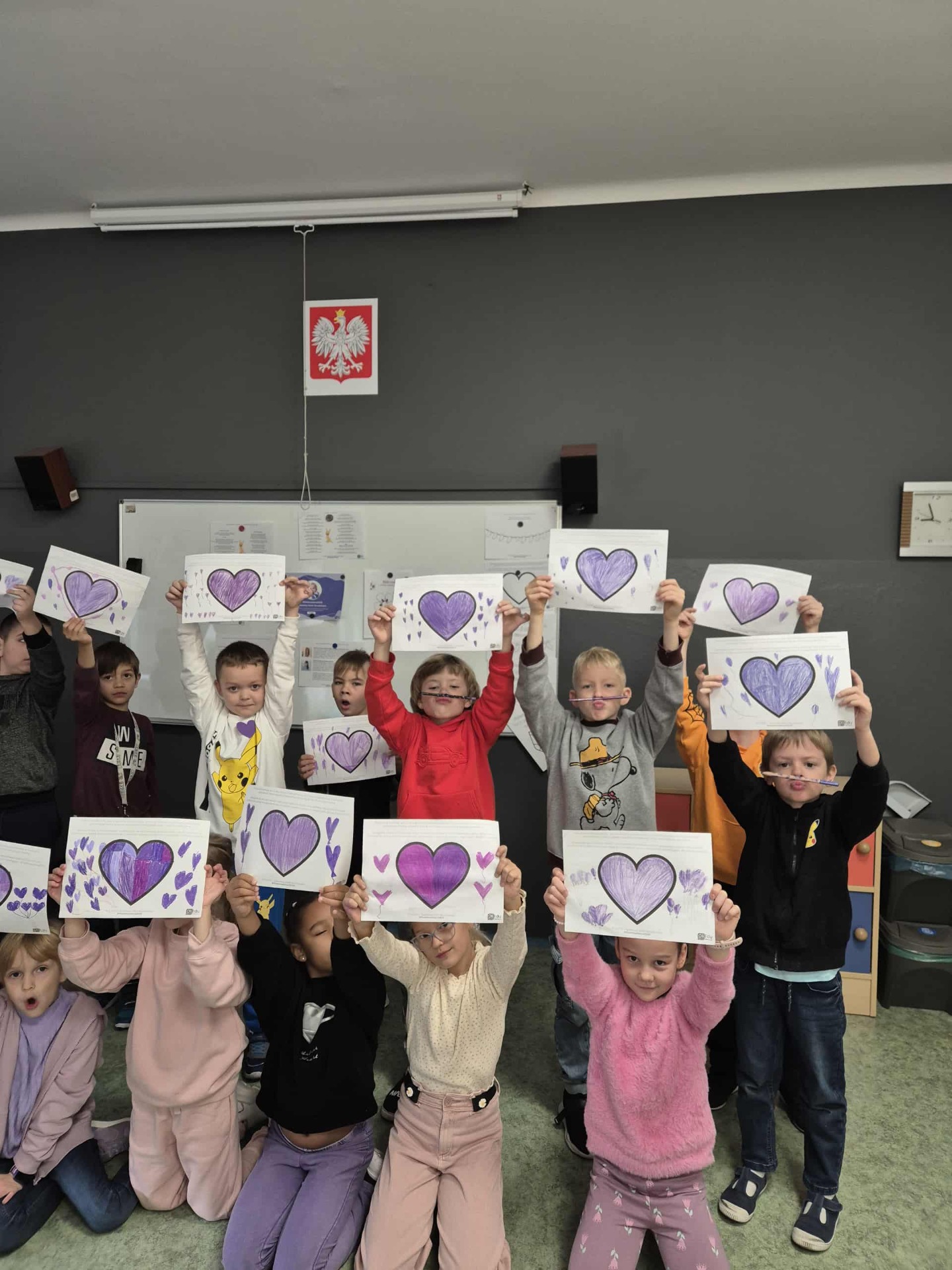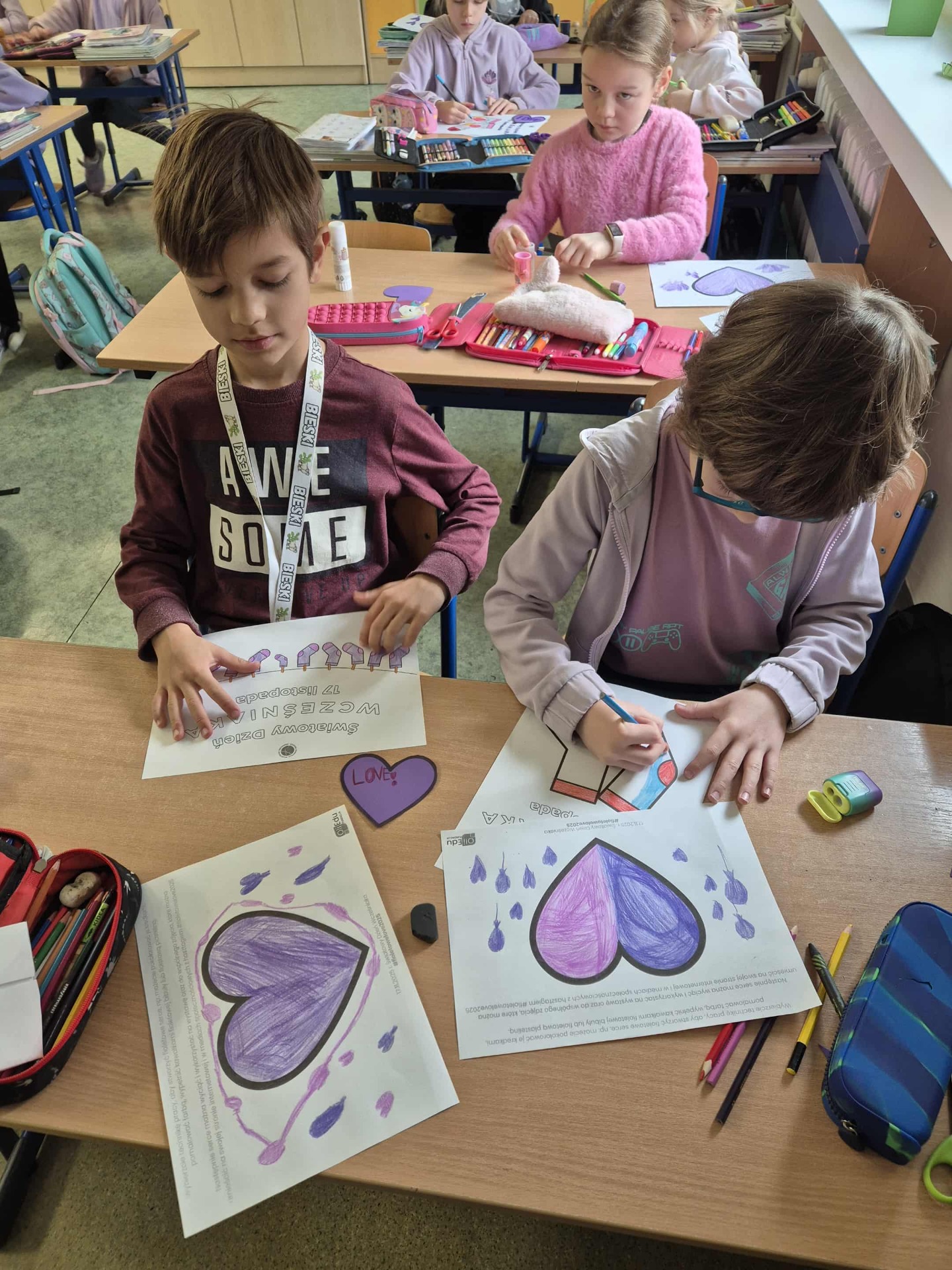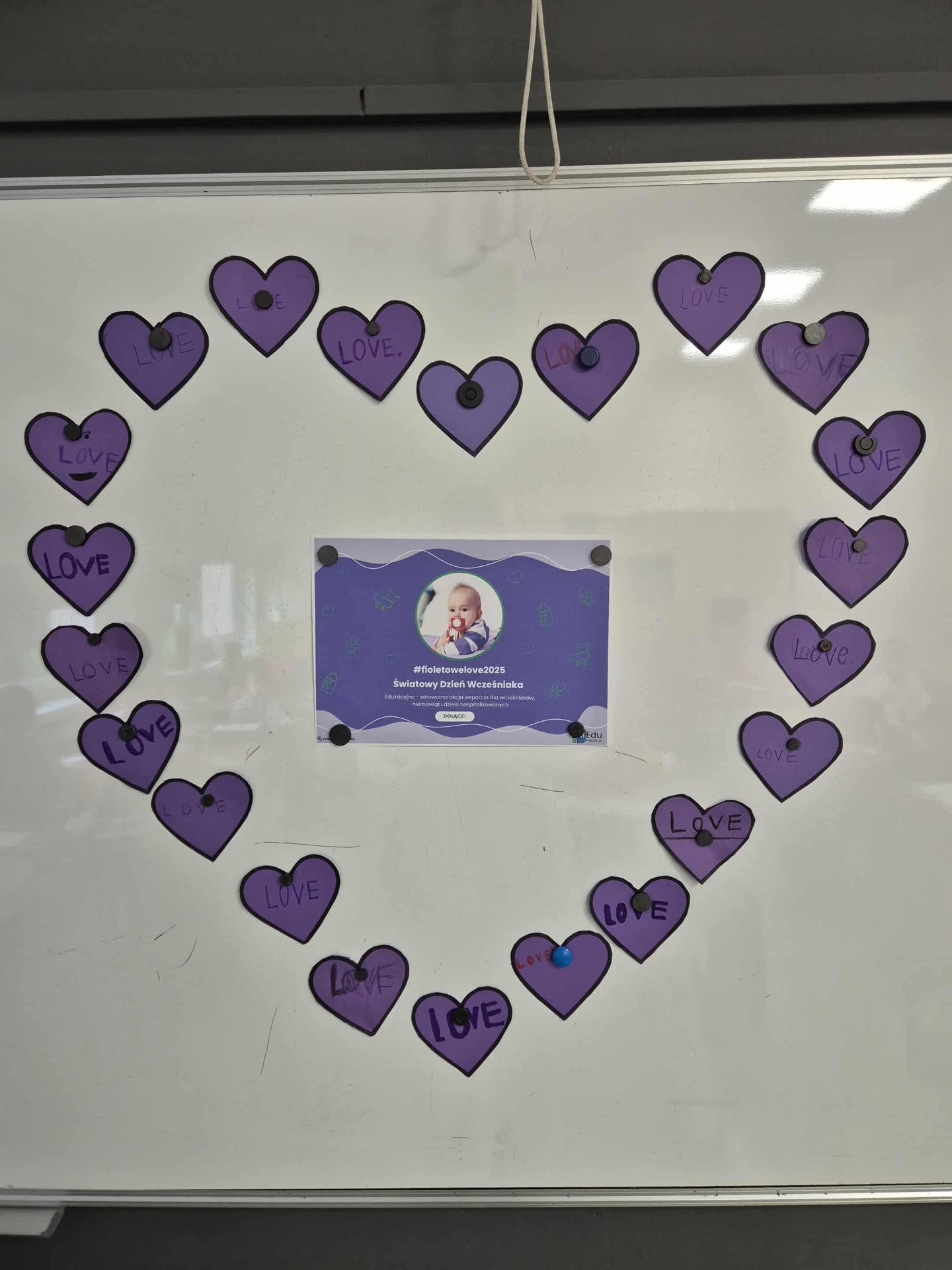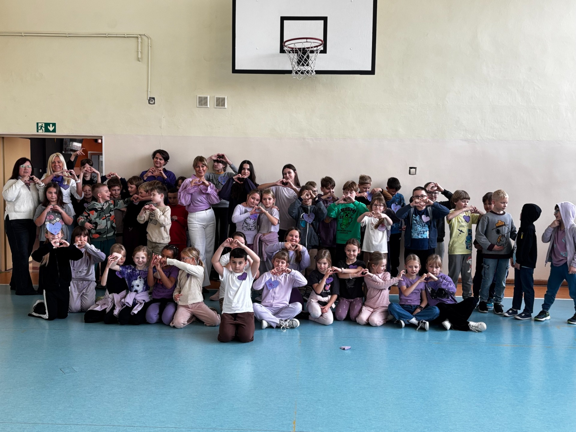Uczniowie i nauczyciele samodzielnie wykonali piękne, fioletowe serca, które stały się symbolicznym wyrazem miłości i empatii. Przypięli je do koszulek i dumnie nosili przez cały dzień.