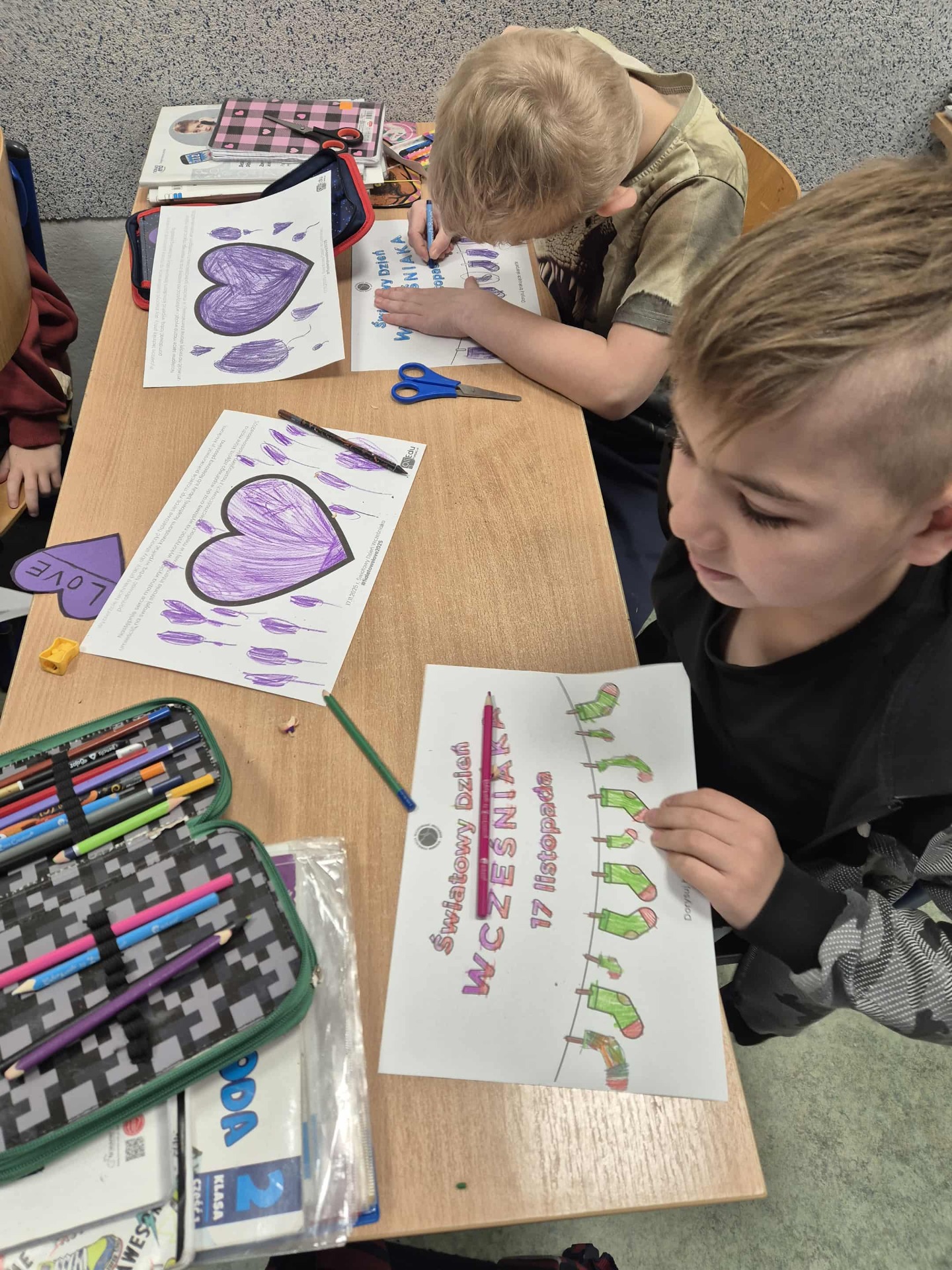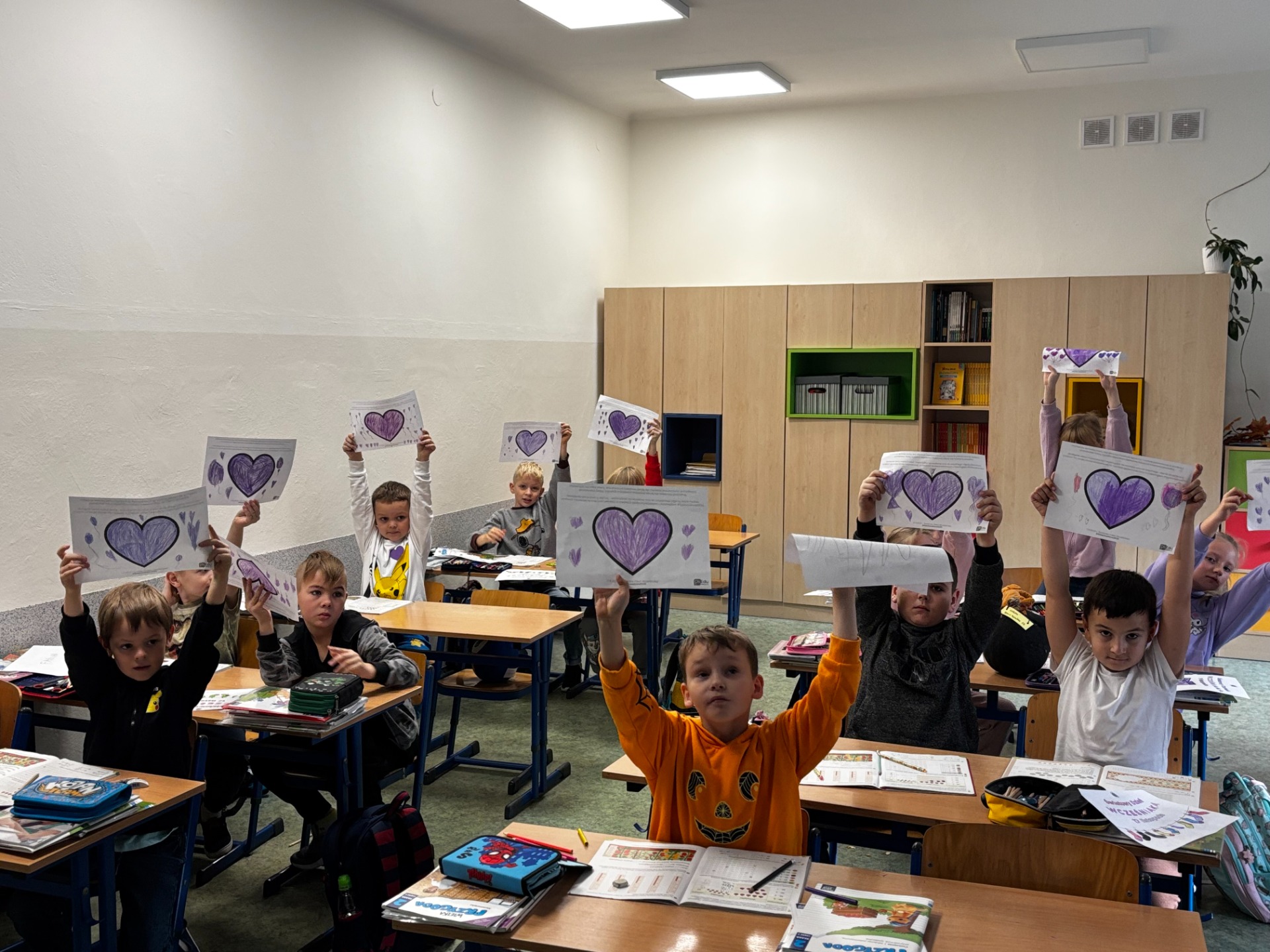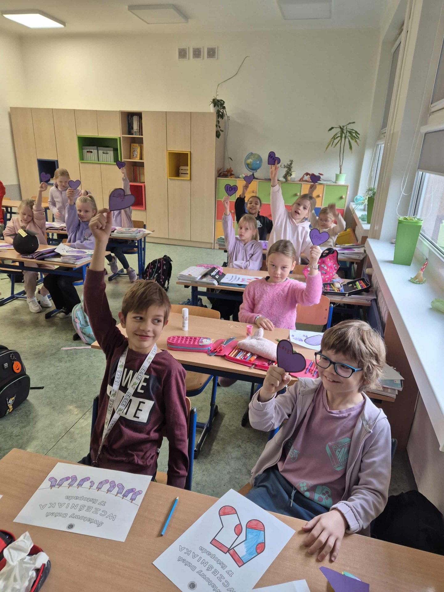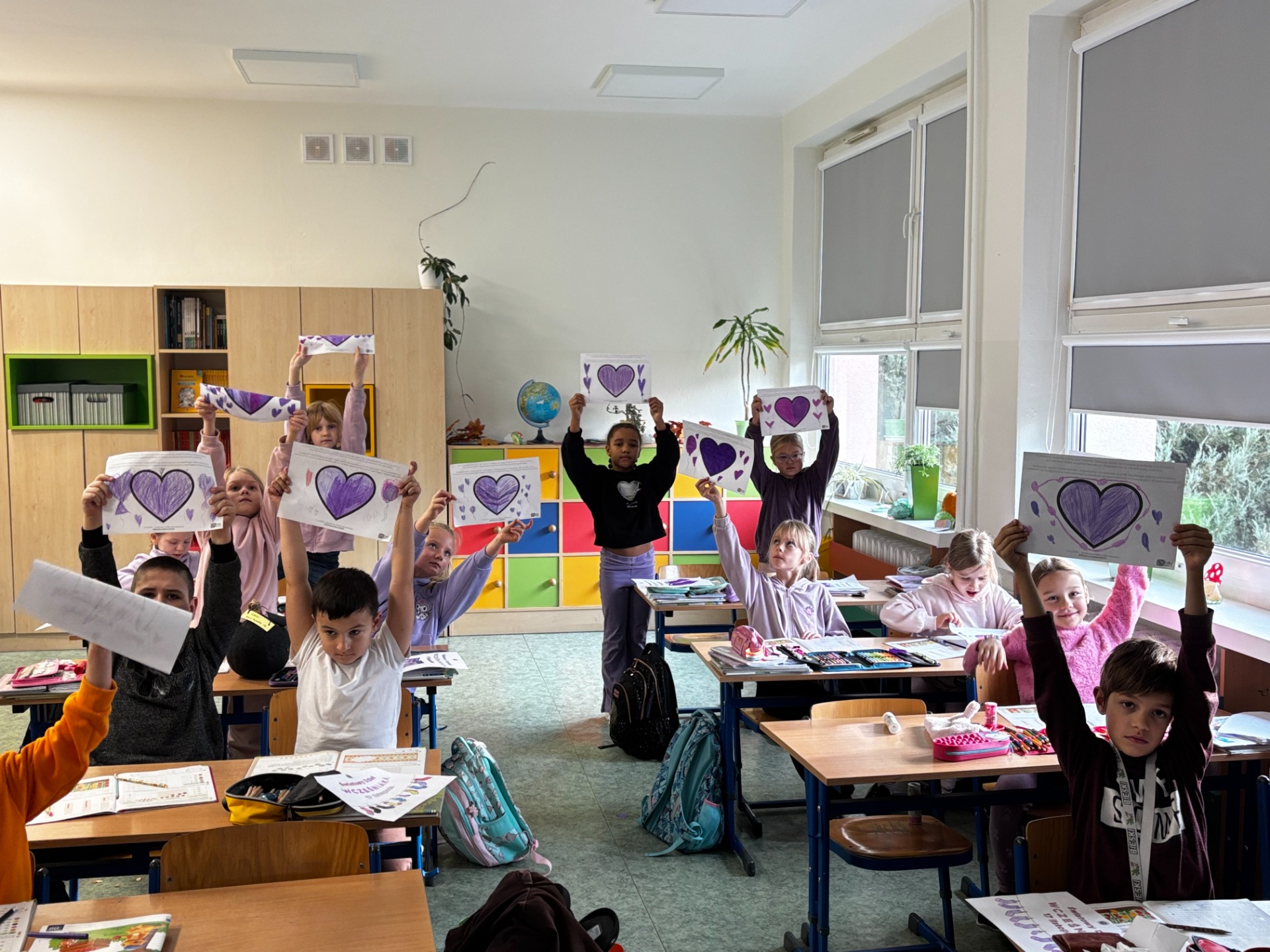 Uczniowie i nauczyciele samodzielnie wykonali piękne, fioletowe serca, które stały się symbolicznym wyrazem miłości i empatii. Przypięli je do koszulek i dumnie nosili przez cały dzień.