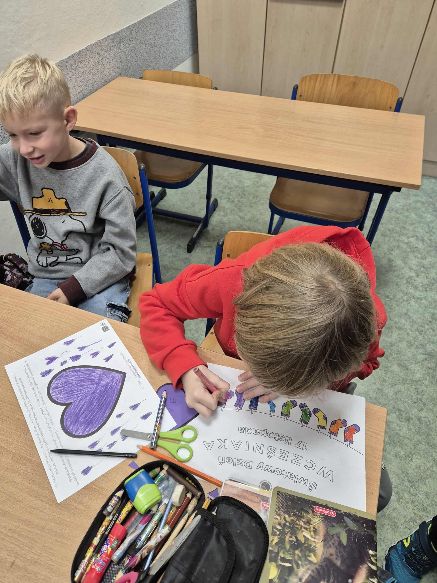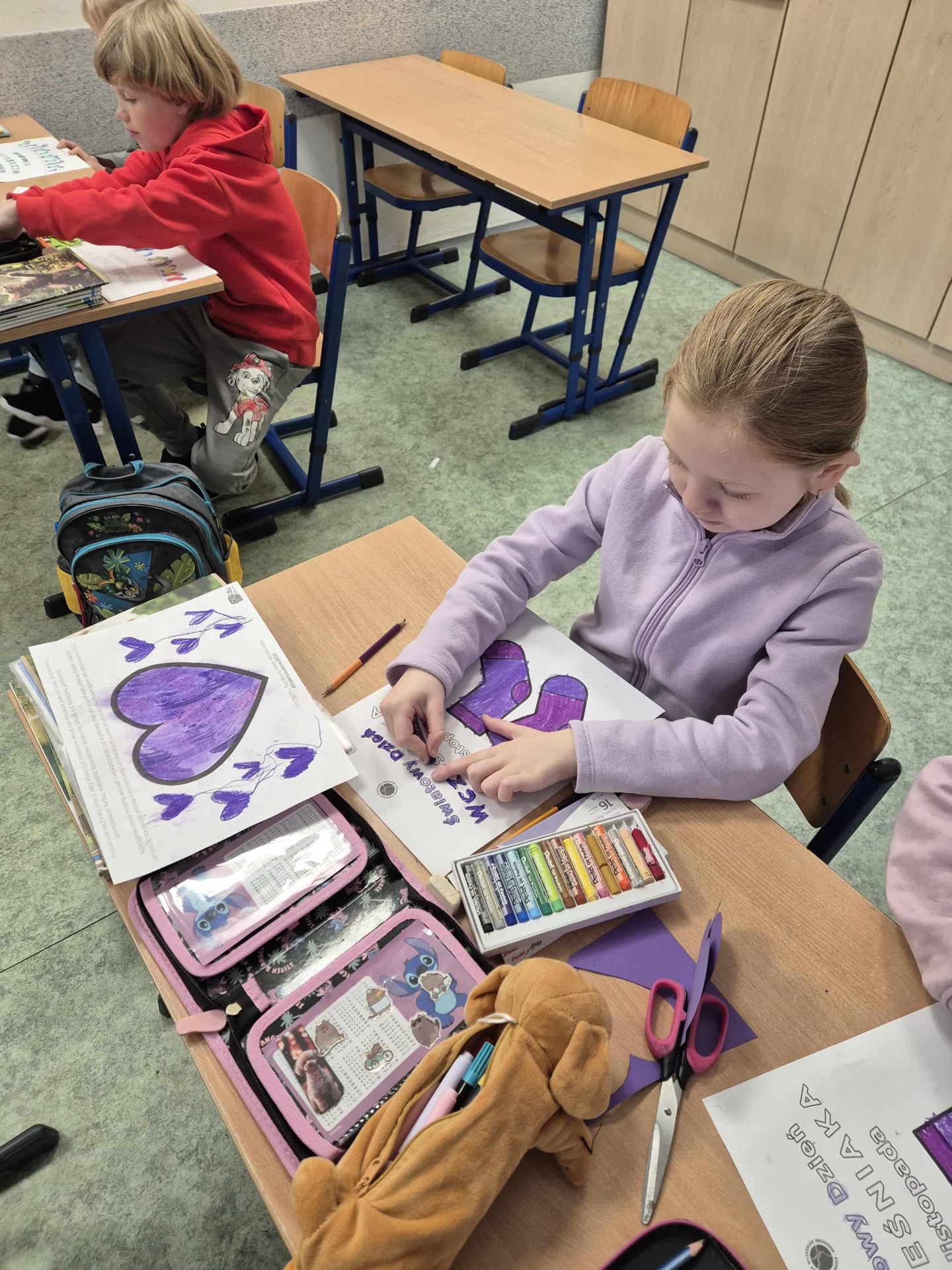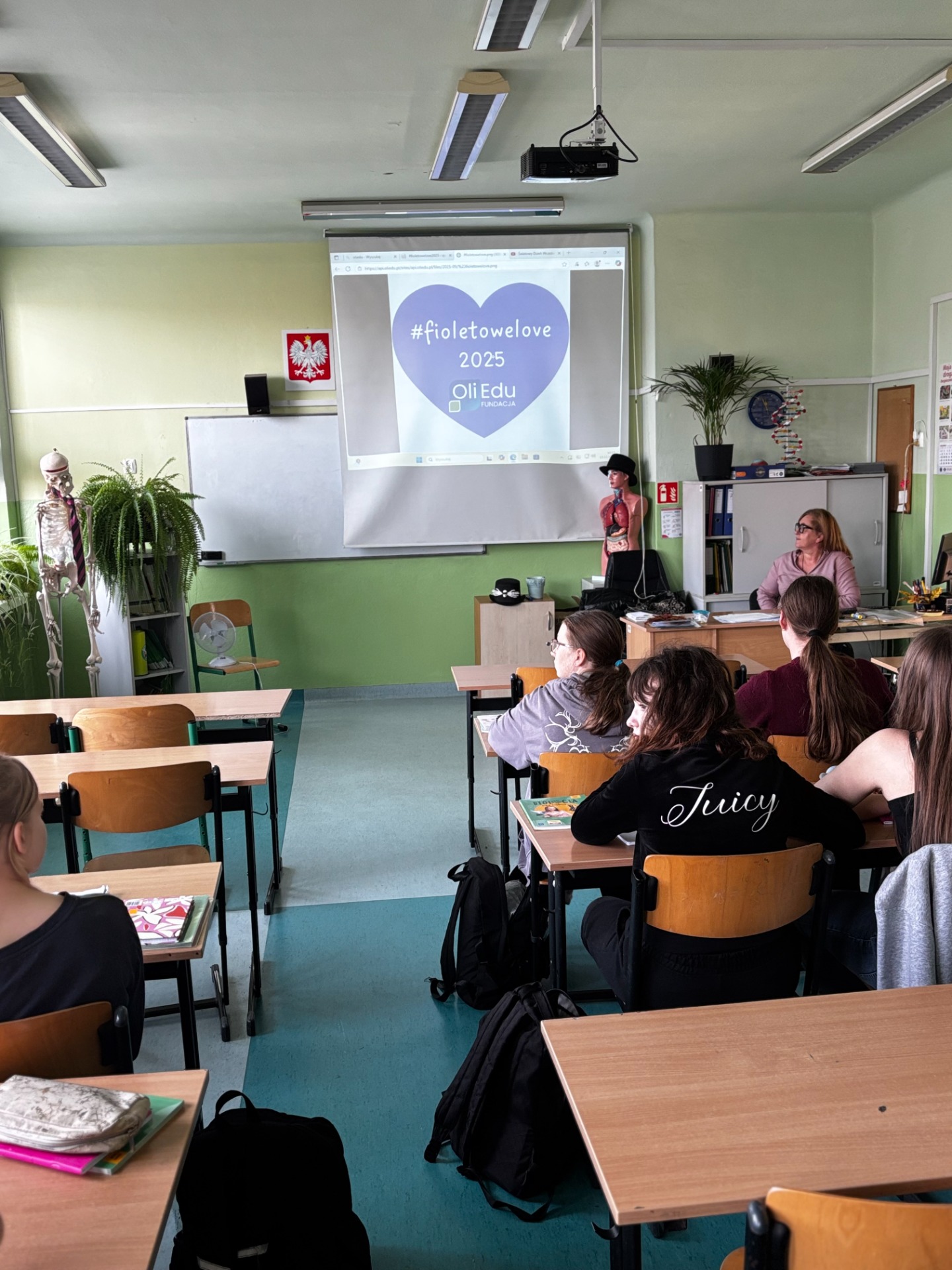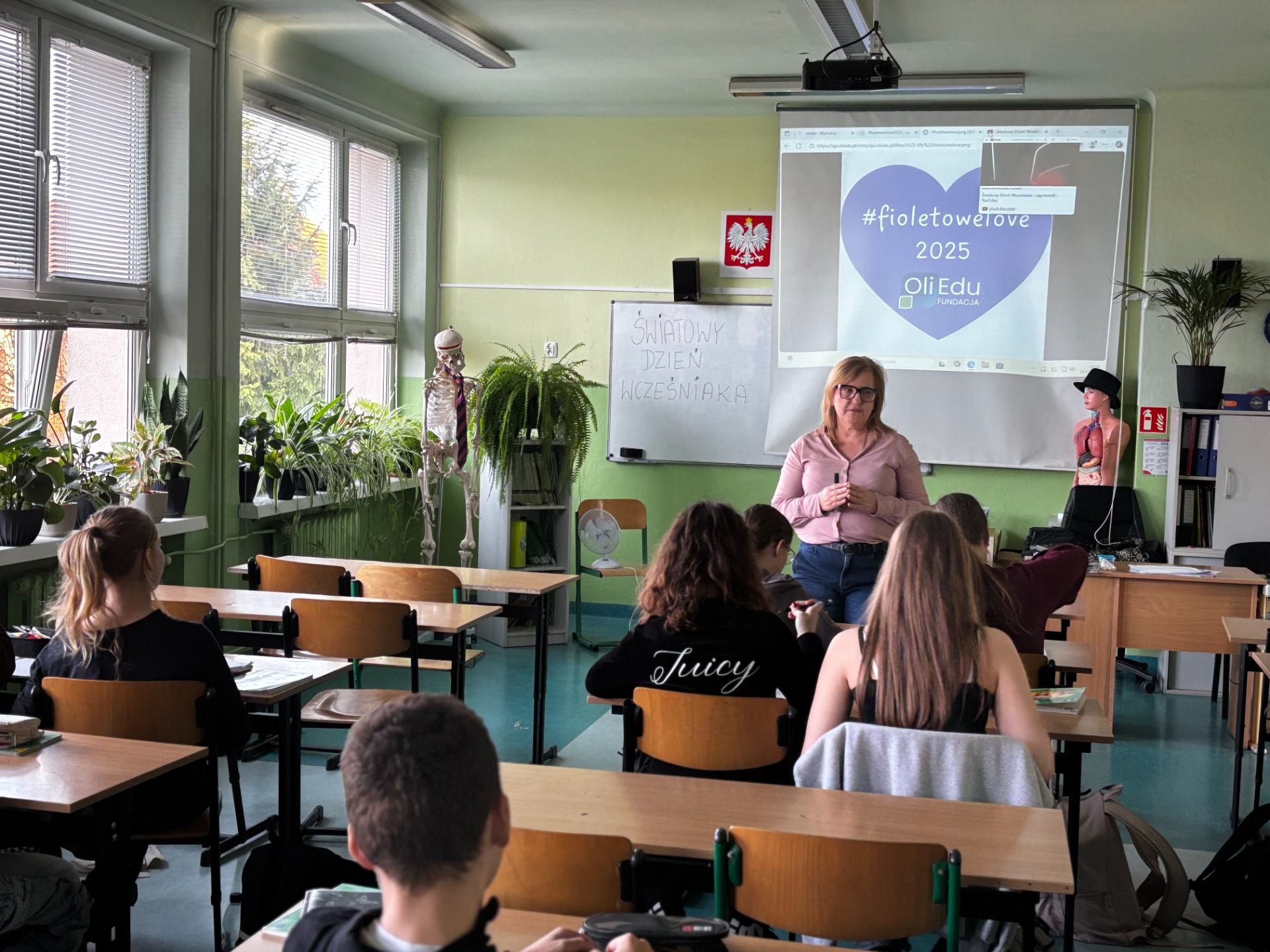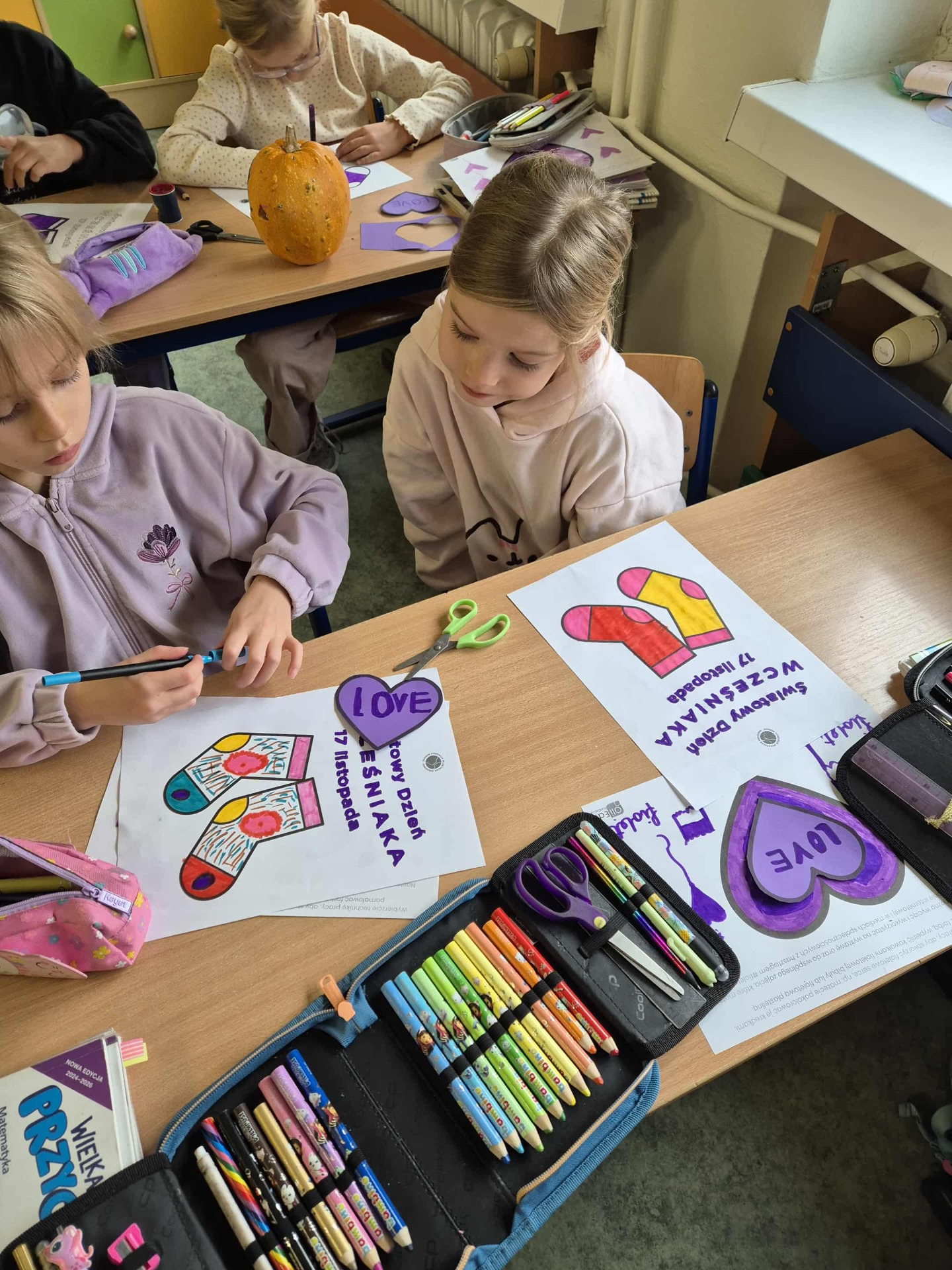 Uczniowie i nauczyciele samodzielnie wykonali piękne, fioletowe serca, które stały się symbolicznym wyrazem miłości i empatii. Przypięli je do koszulek i dumnie nosili przez cały dzień.
