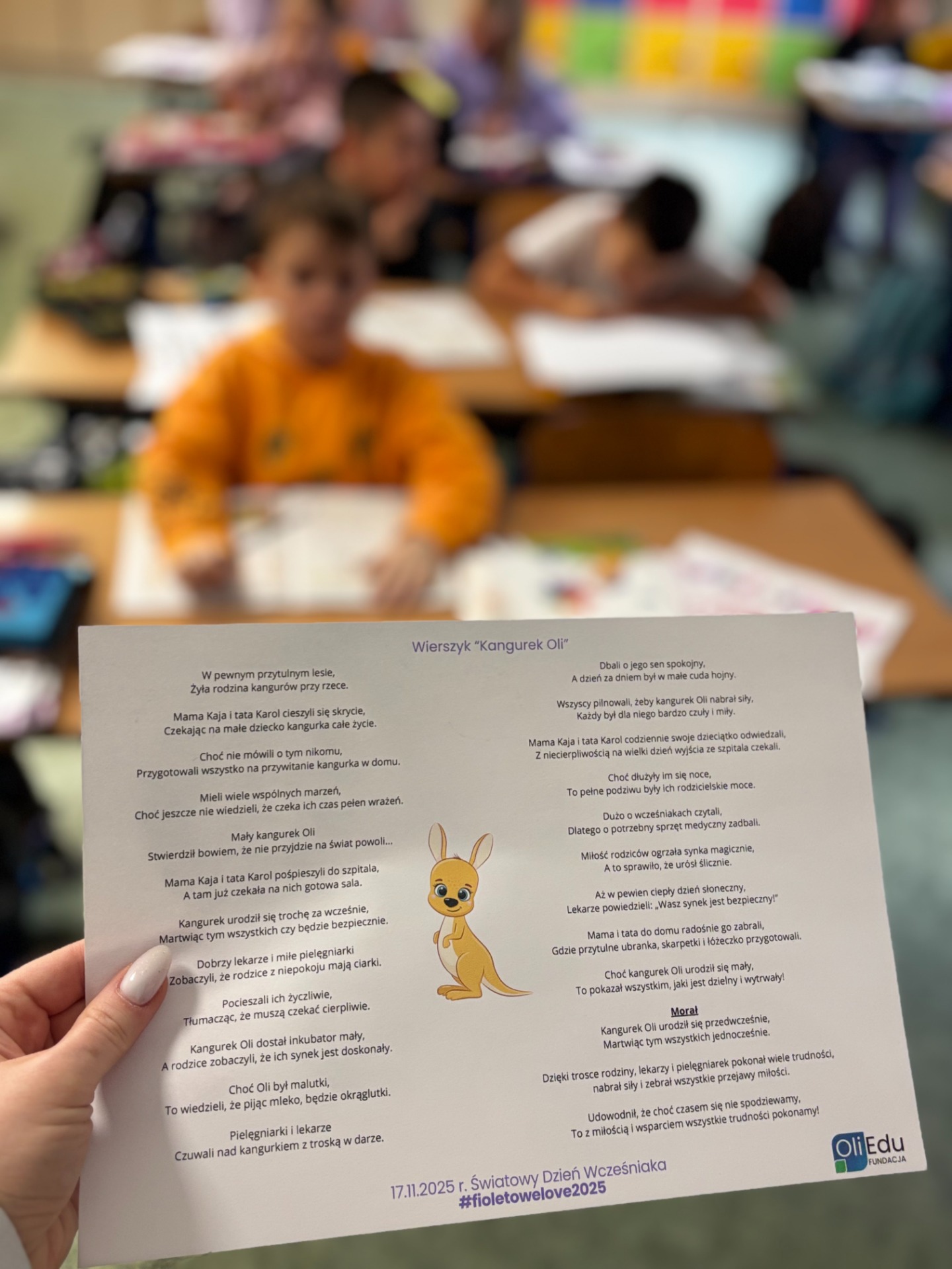 „Choć kangurek Oli urodził się mały, to pokazał wszystkim, jaki jest dzielny i wytrwały!".