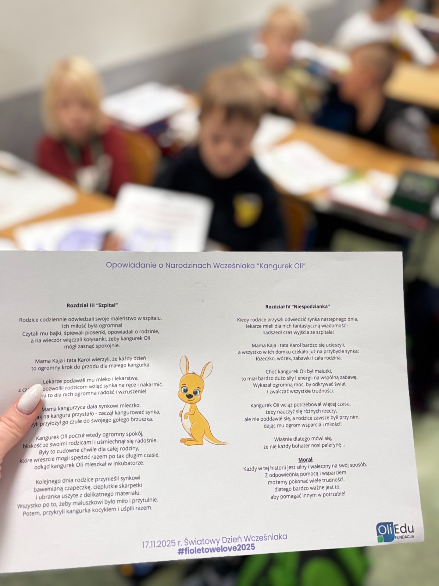 Hej, hej! ✨ Słyszeliście ten huk? To eksplozja fioletowej miłości, która przetoczyła się przez naszą szkołę z okazji Światowego Dnia Wcześniaka! Nasi uczniowie zamienili się w prawdziwe maszyny do czynienia dobra i udowodnili, że mają ogromne serca, mieszczące się w malutkich fioletowych skarpetkach!