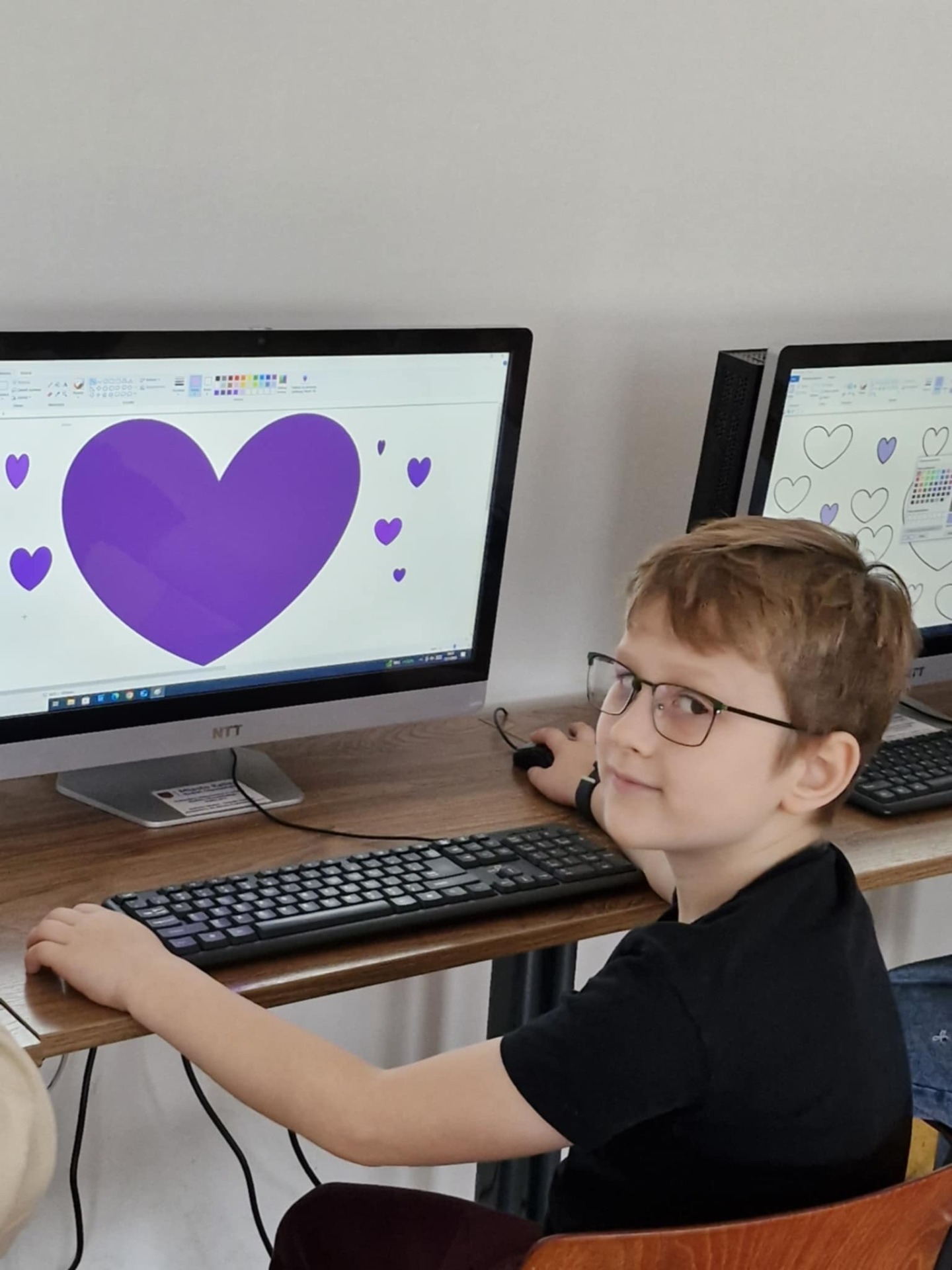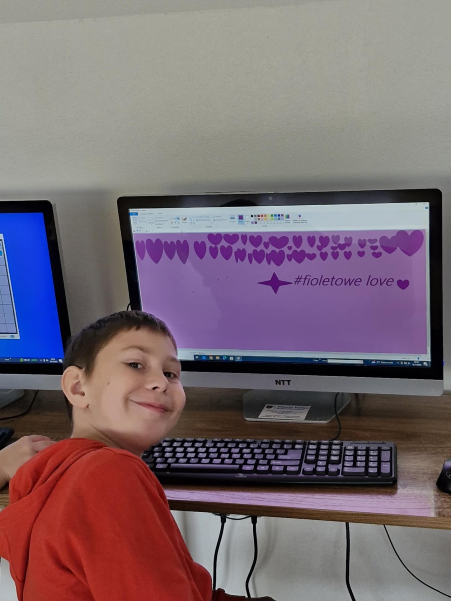 Fioletowy Pixel Art: Uczniowie klas drugich zrobili z informatyki prawdziwe arcydzieło! Monitory zaświeciły fioletowymi sercami i gwiazdami, udowadniając, że w kwestii wspierania, nasza młodzież jest cyfrowo zaangażowana!