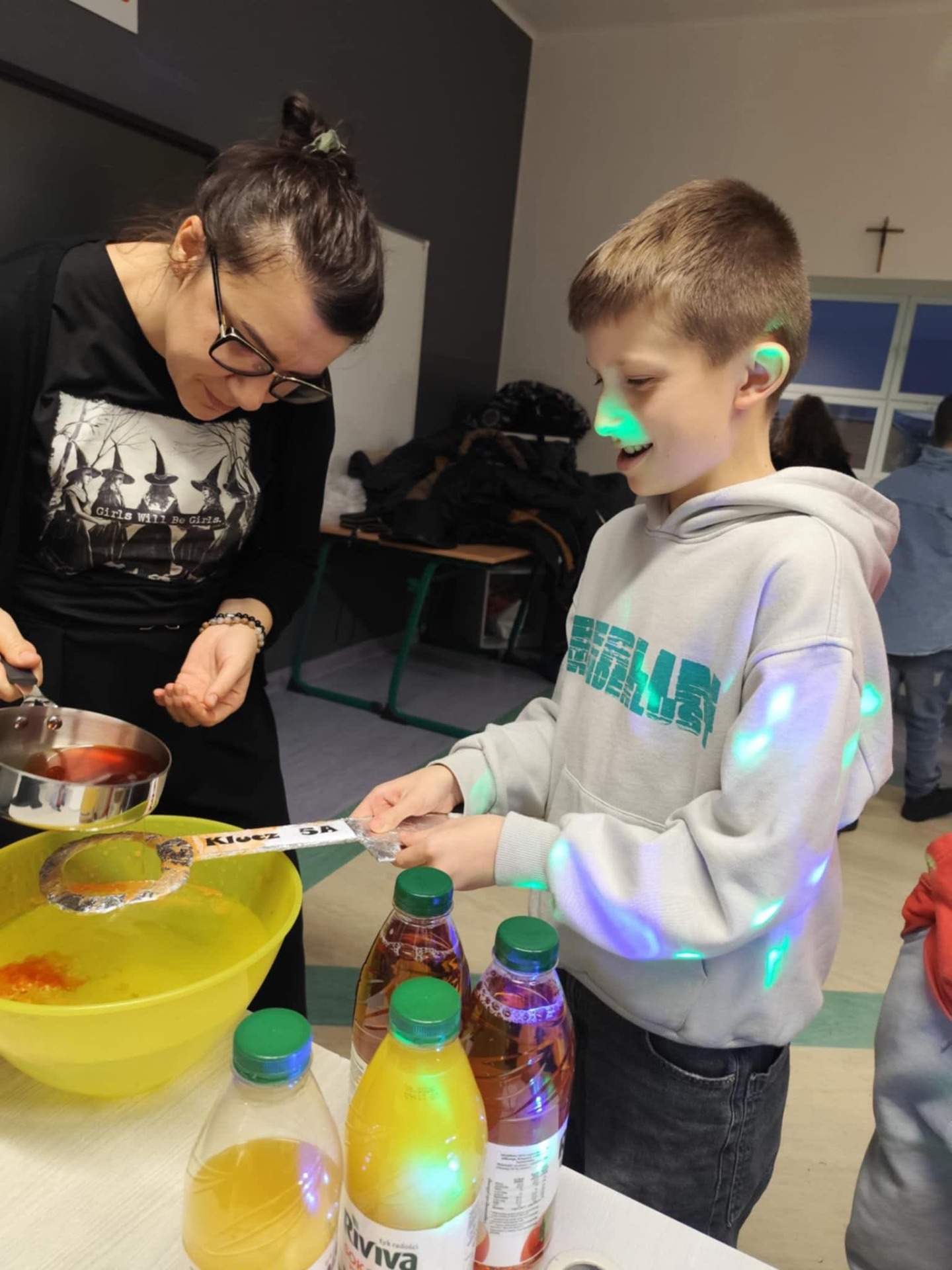Duże emocje wzbudzało szczególnie lanie wosku oraz pyszne ciasteczka z wróżbą. Nie zabrakło również dobrej muzyki i radosnych, wspólnych tańców, które dopełniły przyjemną atmosferę wieczoru.