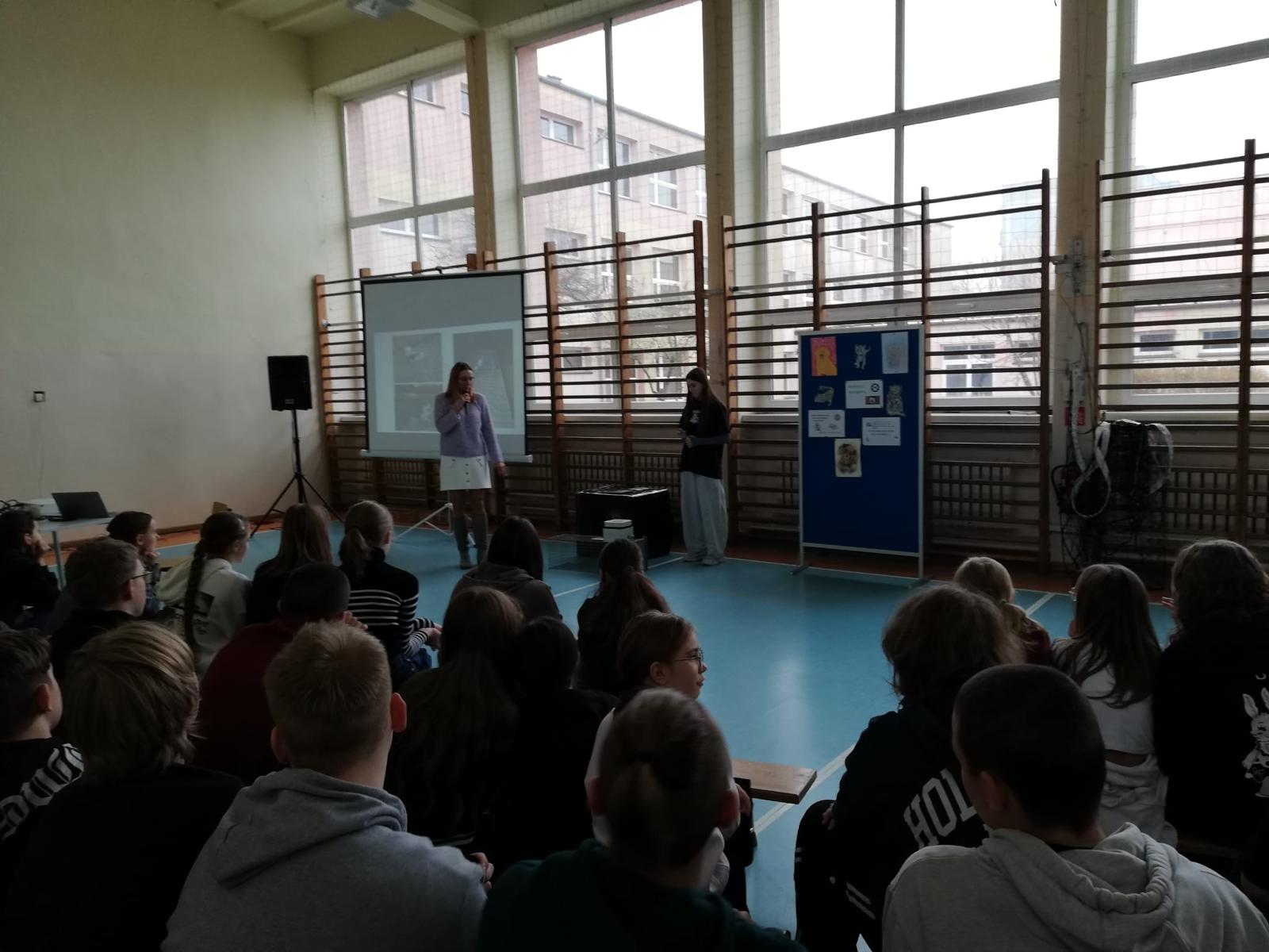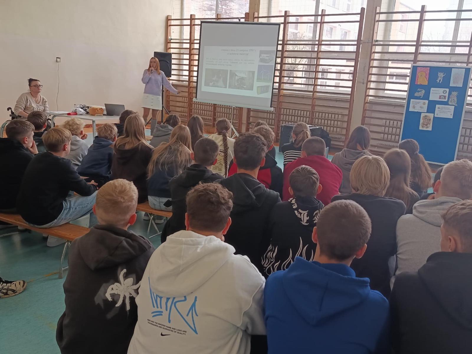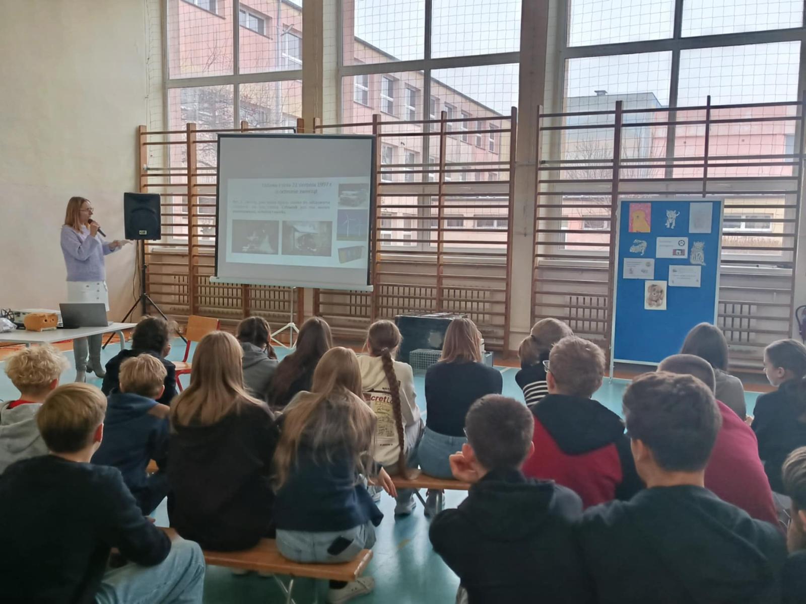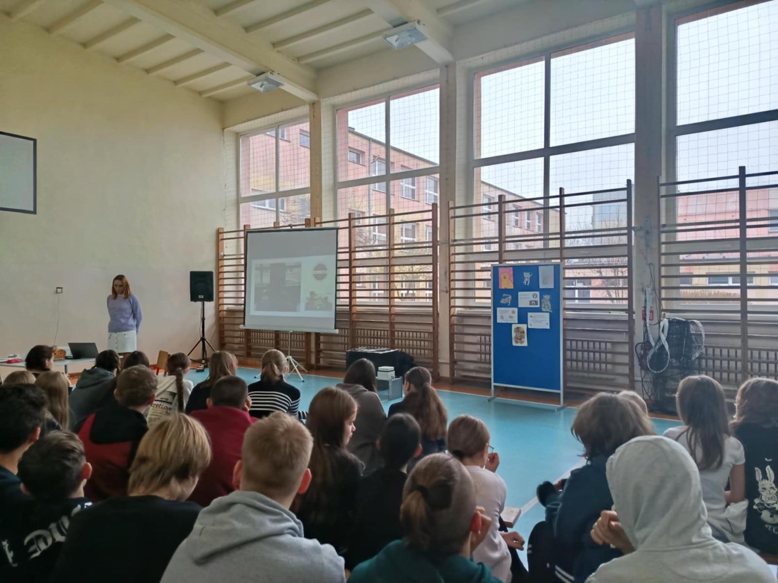 Ale prawdziwą iskrą radości w naszym spotkaniu była Mama naszej uczennicy, pani Magdalena Kupczyk, i zarazem jak się dowiedzieliśmy Pani Wolontariuszka, niezwykła osoba, która z wielką serdecznością i ogromnym zaangażowaniem poświęciła swój czas, by opowiedzieć uczniom o kotkach. Osoba o sercu tak wielkim, że mogłaby nim ogrzać całe miasta kotków i jeszcze zostałoby trochę na dokładkę!