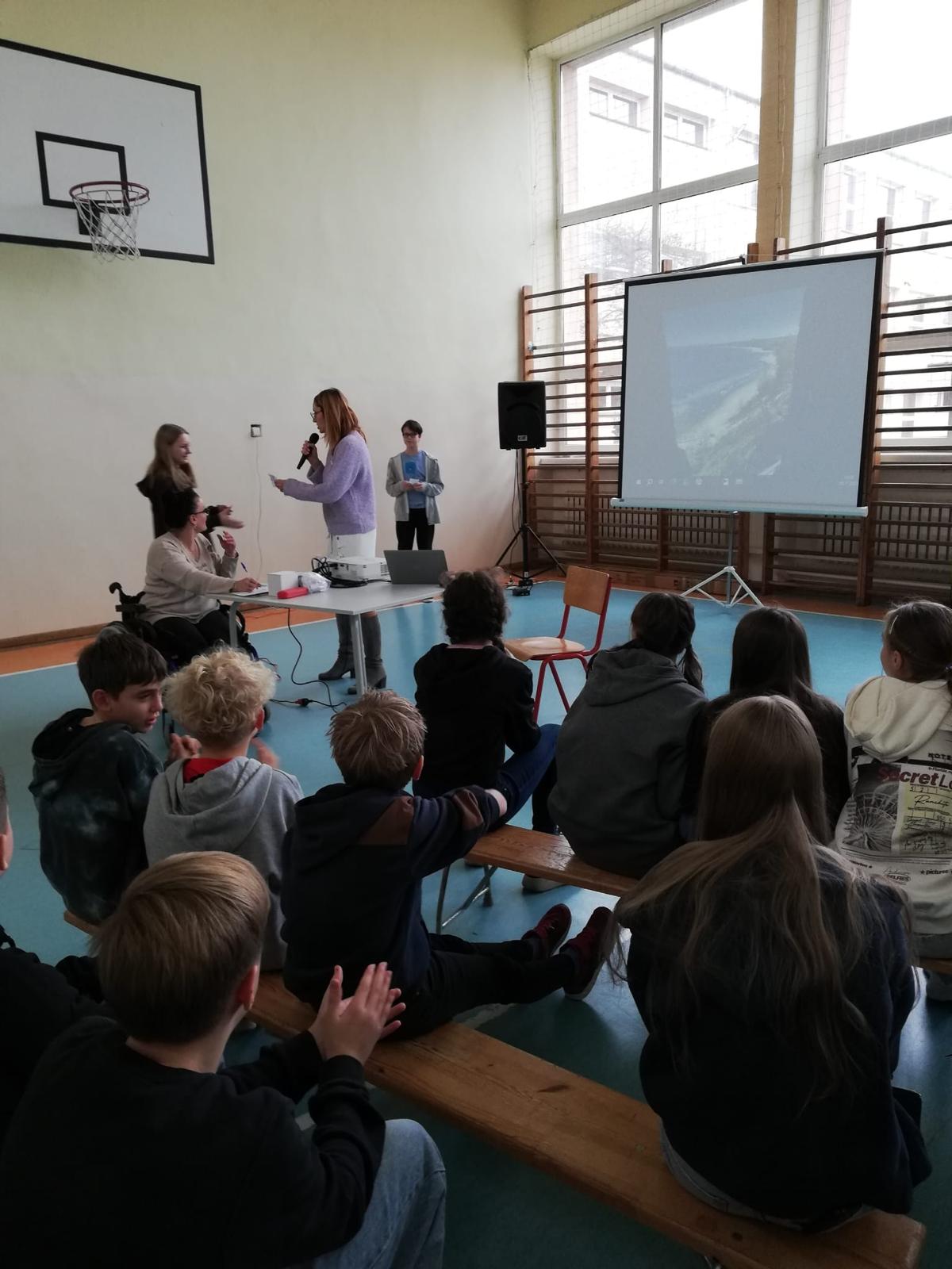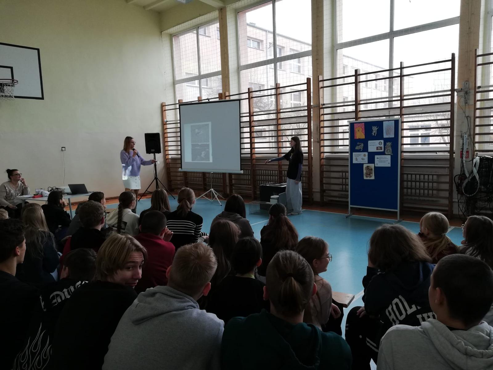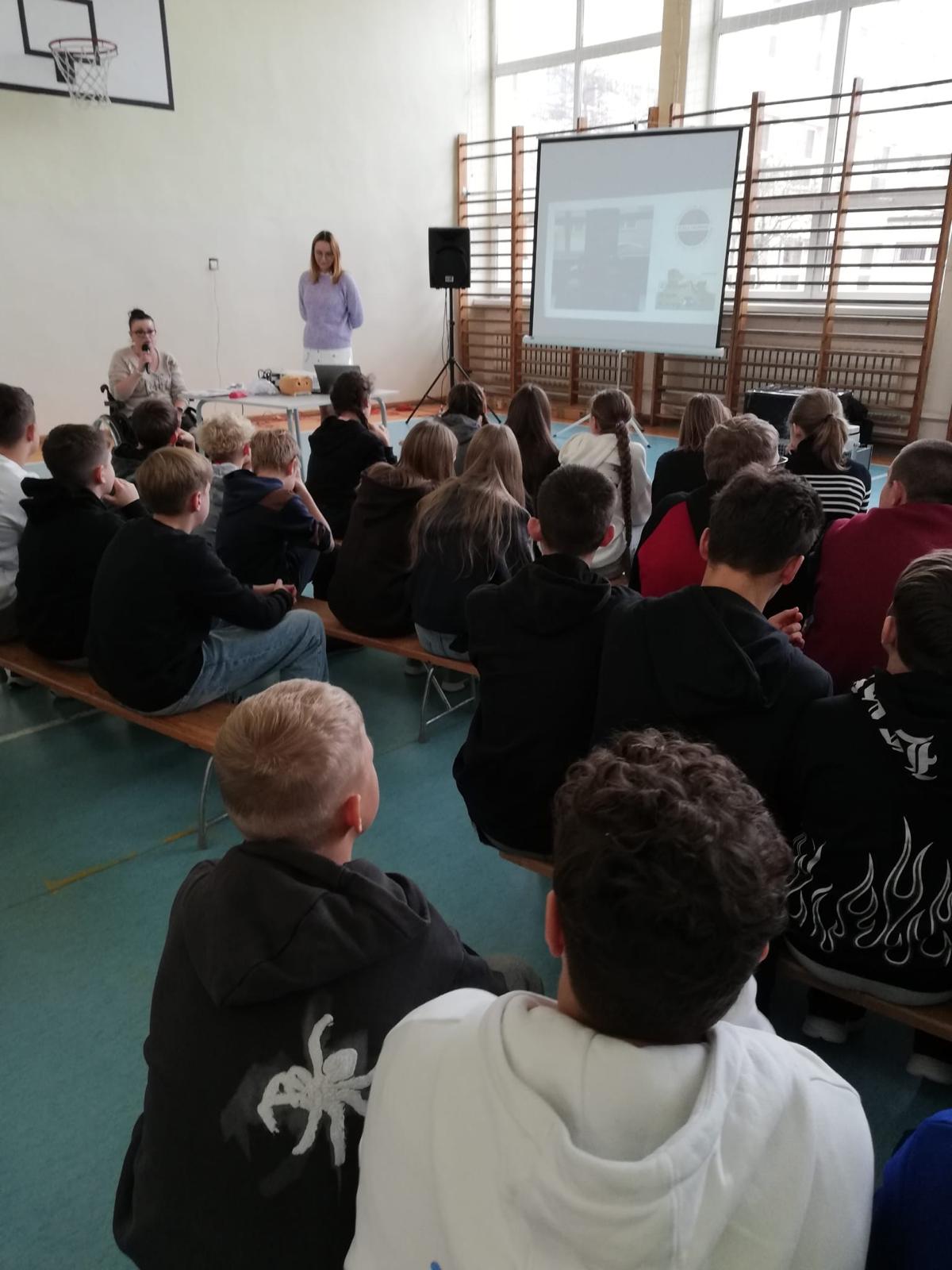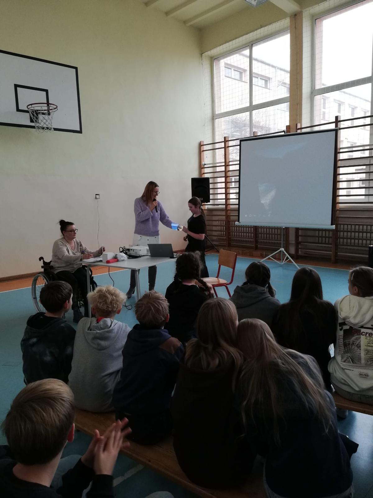 Ale prawdziwą iskrą radości w naszym spotkaniu była Mama naszej uczennicy, pani Magdalena Kupczyk, i zarazem jak się dowiedzieliśmy Pani Wolontariuszka, niezwykła osoba, która z wielką serdecznością i ogromnym zaangażowaniem poświęciła swój czas, by opowiedzieć uczniom o kotkach. Osoba o sercu tak wielkim, że mogłaby nim ogrzać całe miasta kotków i jeszcze zostałoby trochę na dokładkę!
